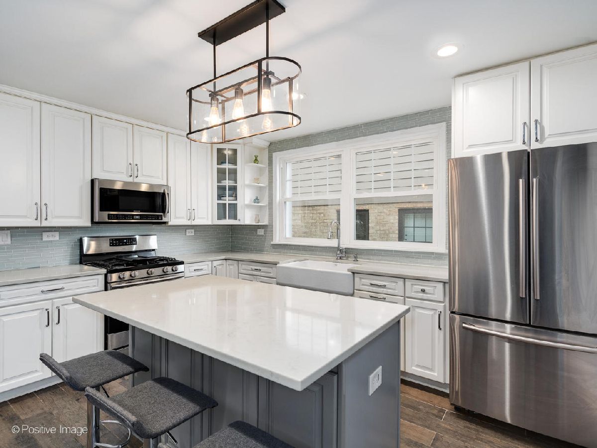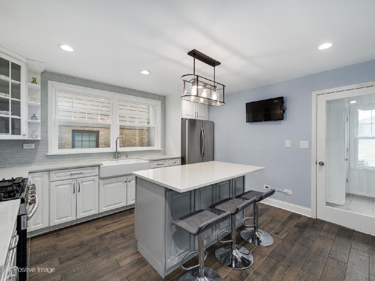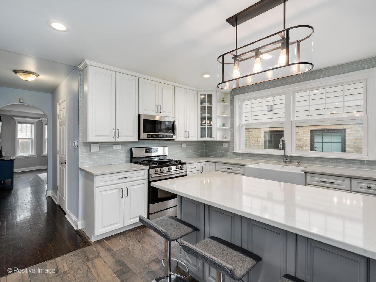 Check out this Jefferson Park bungalow featuring 4 bedrooms & 3 full bathrooms! Living room offers natural light w/ hardwood flooring. Remodeled kitchen includes 42-inch white cabinets w/ quartz countertops, ample counter space, farmhouse sink & kitchen island. Kitchen island offers additional storage. Stainless steel Samsung kitchen appliances. Partially finished walk-in pantry. Den located off kitchen can be used for a breakfast nook. Remodeled first floor bathroom includes a floating vanity, frameless glass shower & freestanding soaking tub. Two generously sized bedrooms located on the first floor. Primary bedroom has dual closets. Second floor has a large bedroom w/ a flex space option to be used as a family/recreational room, sitting room, office or kids play room. 4th bedroom located in basement. Newly renovated basement includes a spacious family/recreational room featuring a custom cigar lounge, wet bar, mini fridge, custom shelving, a cozy fireplace, full bathroom & laundry room. New washer/dryer. 4th bedroom was converted to a gym. Large backyard has a concrete patio perfect for grilling or a fire pit! Yard also has cherry tree! Spacious 2.5 car garage. Tons of storage throughout the home! Easy access to I-90/I-94 & Metra station!
