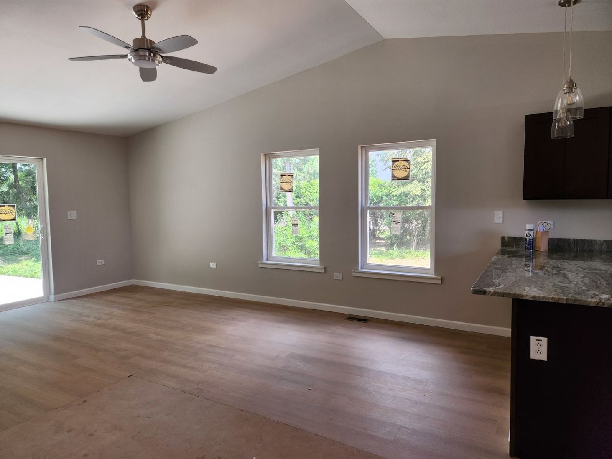 Brand new construction ready occupancy end of June'ish. 1260 square feet. Still time to pick out your flooring and paint colors. 3 Bedrooms, 2 full baths, open floor plan. Utility room with mechanicals and washer/dryer. Concrete patio opens to farm field. Super, super over sized garage for plenty of storage. Home features: 2x6 construction, vaulted ceilings in open LR/KT, extra tall garage door. Please note the room sizes are approx, floor plan is not to scale or exact.