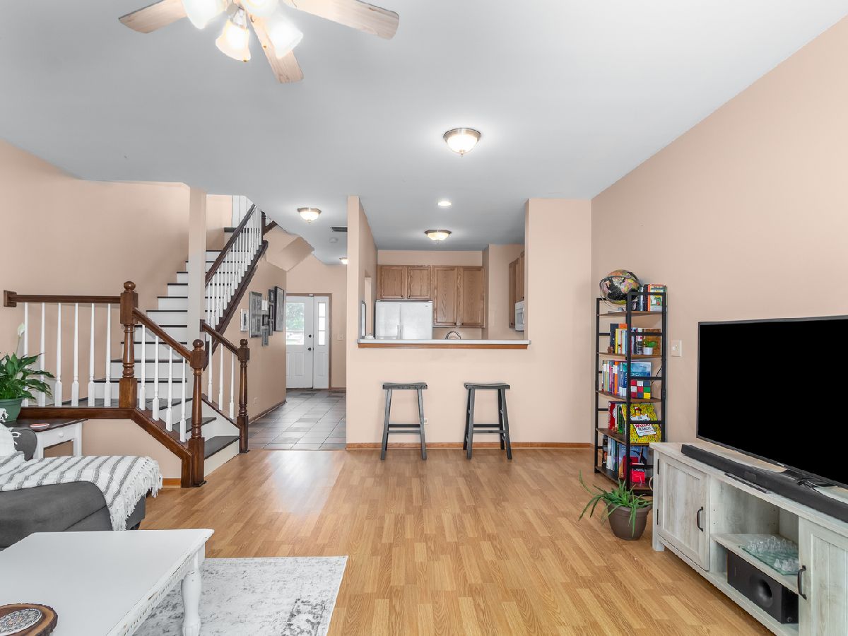 Get ready to fall in love with this super cute townhome in Kingsbrook Crossing! This home has been lovingly maintained and features neutral paint throughout, updated lighting and flooring (NO CARPET ANYWHERE) and on trend remodeled staircase - Gorgeous espresso with white spindles! NEW FURNACE & NEW A/C in 2020! You will appreciate the open floor plan, spacious master suite with high volume ceilings, private bath and dual closets! Bright sunny kitchen with 42" uppers has bar seating and opens to the family room. Enjoy summer nights on the large private patio overlooking a scenic common area. District 308 schools and close to shopping, dining and parks! This home is truly move in ready and a must see!
