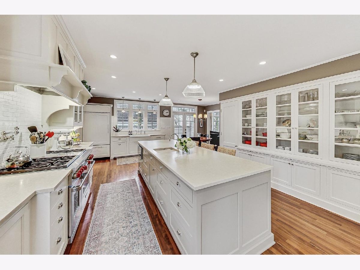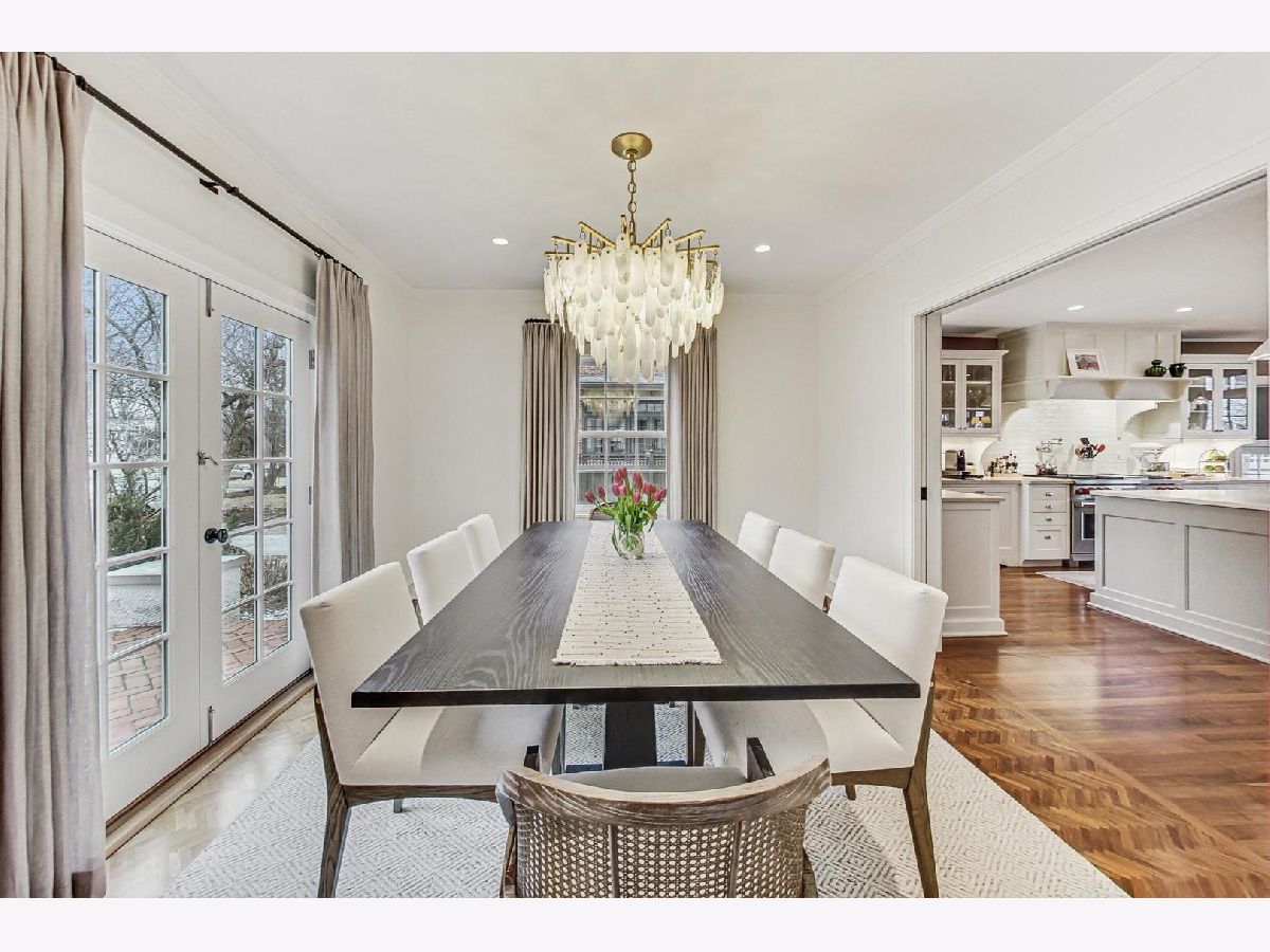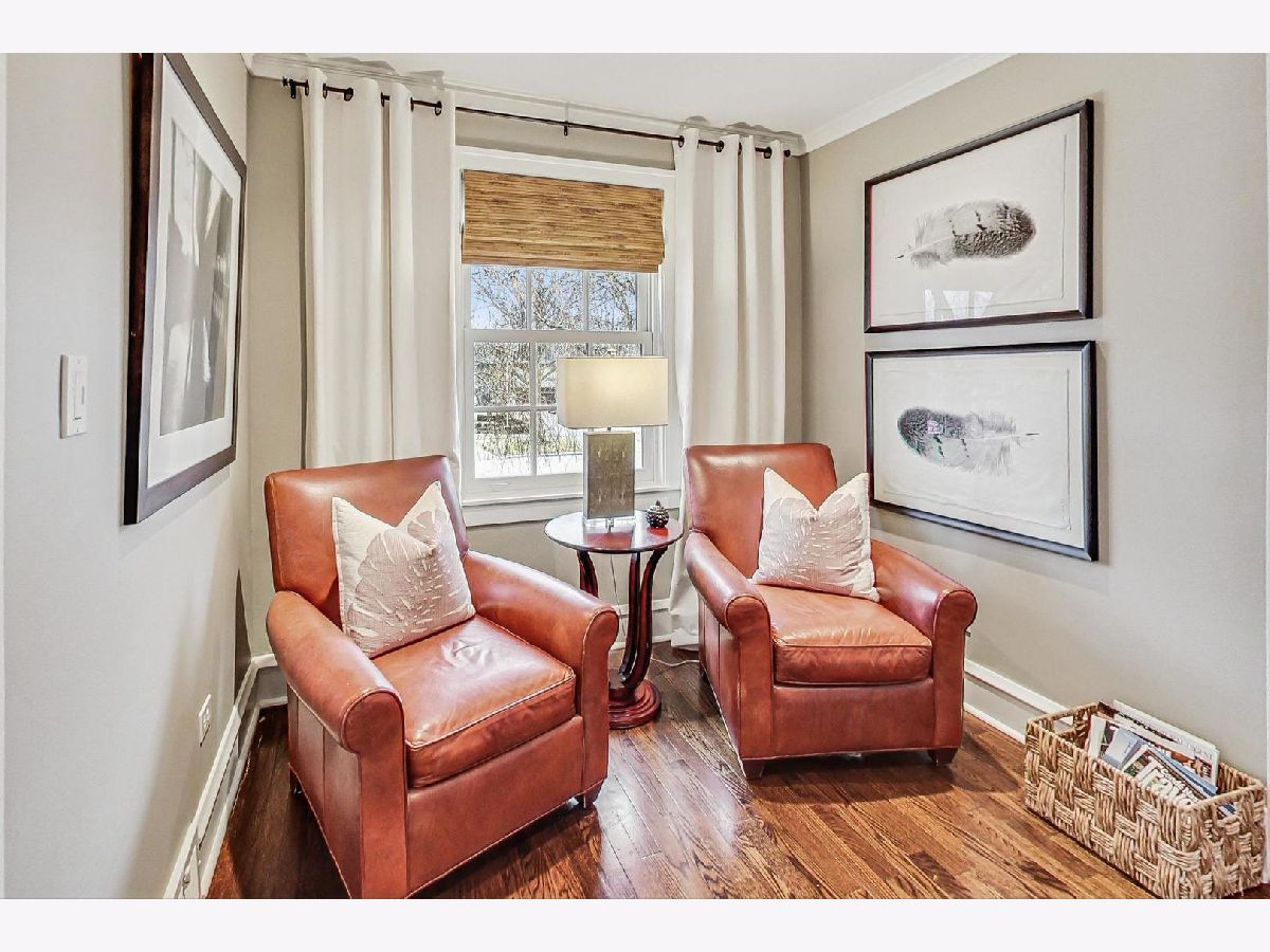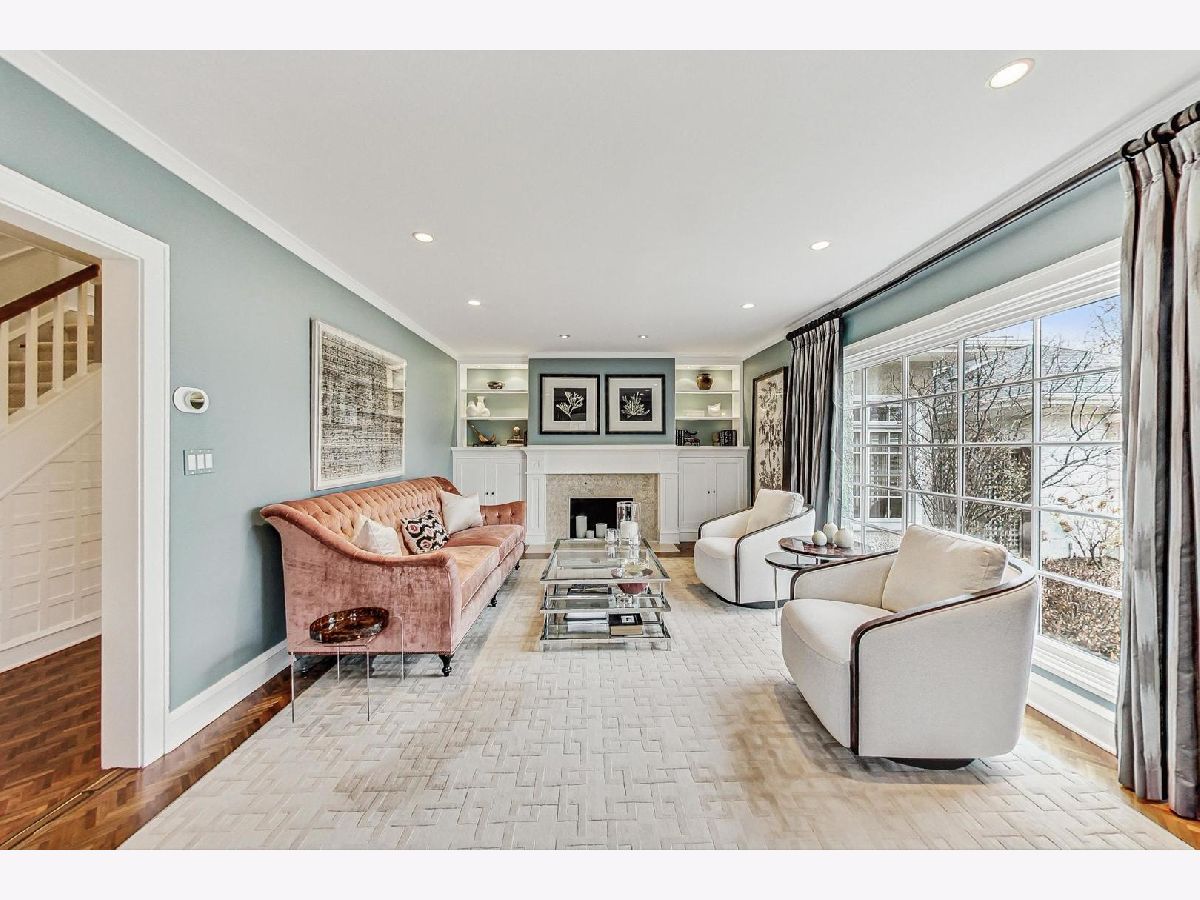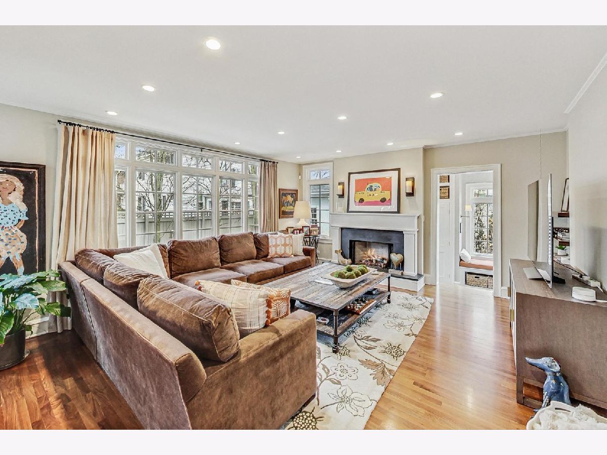 This extraordinary home offers a fine blend of classic charm, luxurious amenities and impeccable attention to detail, making it a true standout. Professionally landscaped, extra wide corner lot, included rebuilding the front terrace, which welcomes you to the home. Inside, you are immediately treated to walnut herringbone floors in the foyer, living room, and dining room adding an air of timeless elegance. Mark Menna created the custom wall of built-ins surrounding the LR Fireplace, highlighting the Ann Sacks tile surround. This sets a warm and sophisticated tone. Both the LR & DR have french doors that open to the front terrace, a wonderful feature for summertime entertaining. The custom kitchen, designed by Jean Stoffer, is a chef's dream with high-end appliances, including a 48" Wolf with double ovens, Subzero refrigerator and honed quartz countertops. The extra large island is great for prep with it's 2nd sink and seating allowing your guests and family alike to enjoy a casual meal. The kitchen and breakfast area have serene views of the backyard. French doors in the breakfast room provide access to the impressive outdoor space, featuring a Trex deck entry porch and access to this impressive outdoor space with multiple areas for seating and outdoor cooking. The mature landscaping and lighting that surrounds this area gives off an enchanting vibe. Back inside the family room, enjoy a gas fireplace and custom built-in bookshelves. Through a glass pocket door you enter the mudroom, which is conveniently located just steps from the garage. An updated 1/2 bath and 4th bedroom, with hip sputnik light fixtures, is currently used as an office. Upstairs, the unusual bookcase wall wrapping the stairs invites you to sit and enjoy a book in the reading nook. The primary bedroom is a zen retreat with beautiful views and a luxurious bath with Calcutta marble countertop and tile. Two additional bedrooms with ample closet space share the updated hall bath. During their tenure the sellers finished the basement which now features a large TV room with built-in cabinets and shelves, a game room complete with Uline wine refrigerator and Uline beverage refrigerator. Cute laundry room also has ample storage and there is a utility room with additional storage. The list of improvements is extensive and includes, a full roof replacement and insulation (2015) flat roof and gutters (2022) new chimney (2020) New central air (2024) Garage was new in (2004) and has ample storage and 4 skylights too! Located on the street of dreams, this home is a very short walk to the METRA, parks, blue ribbon schools and shopping. Don't miss your chance to own this one-of-a-kind property! *Please exclude the DR light fixture* *sellers have never used the LR FP*