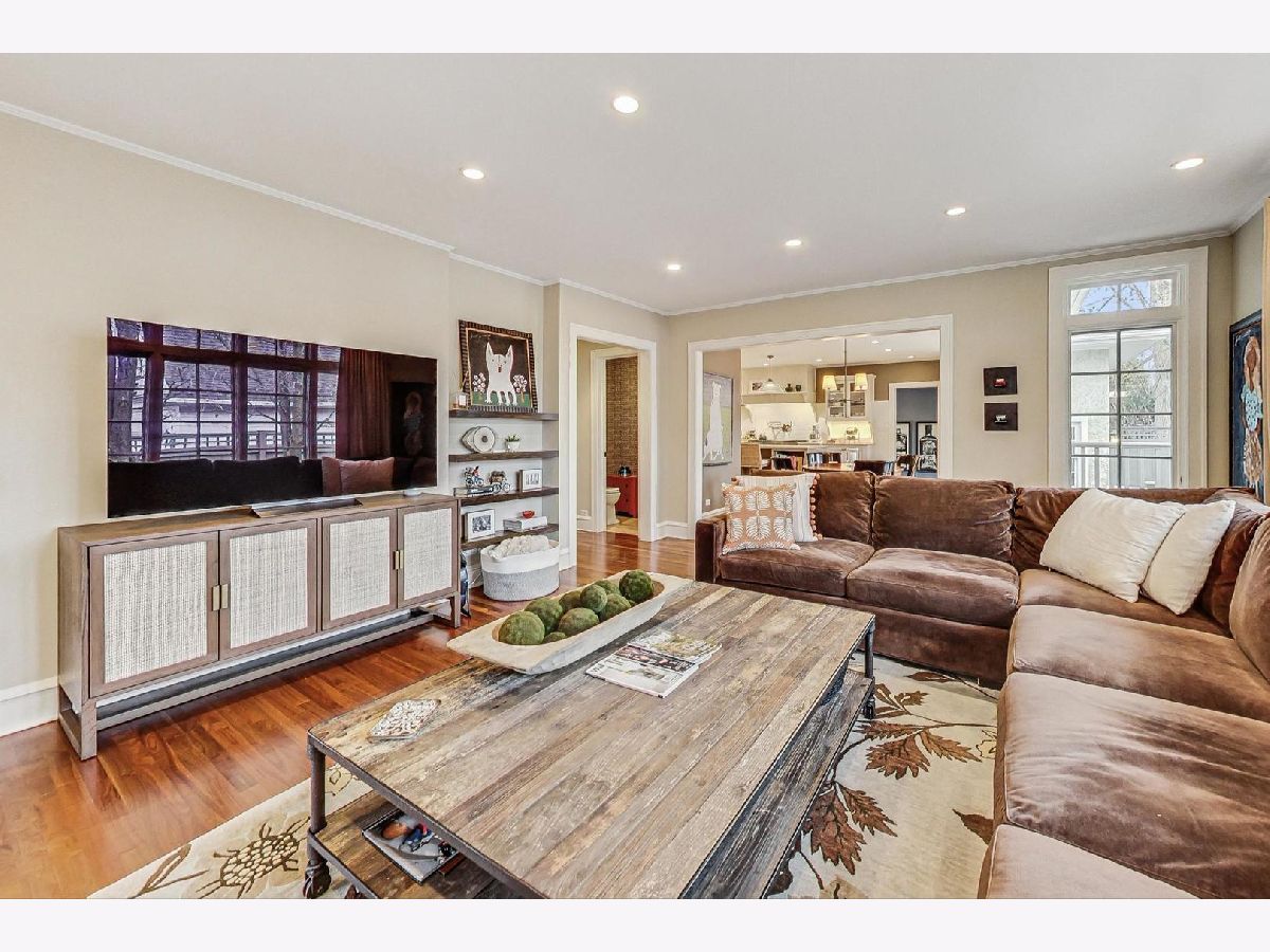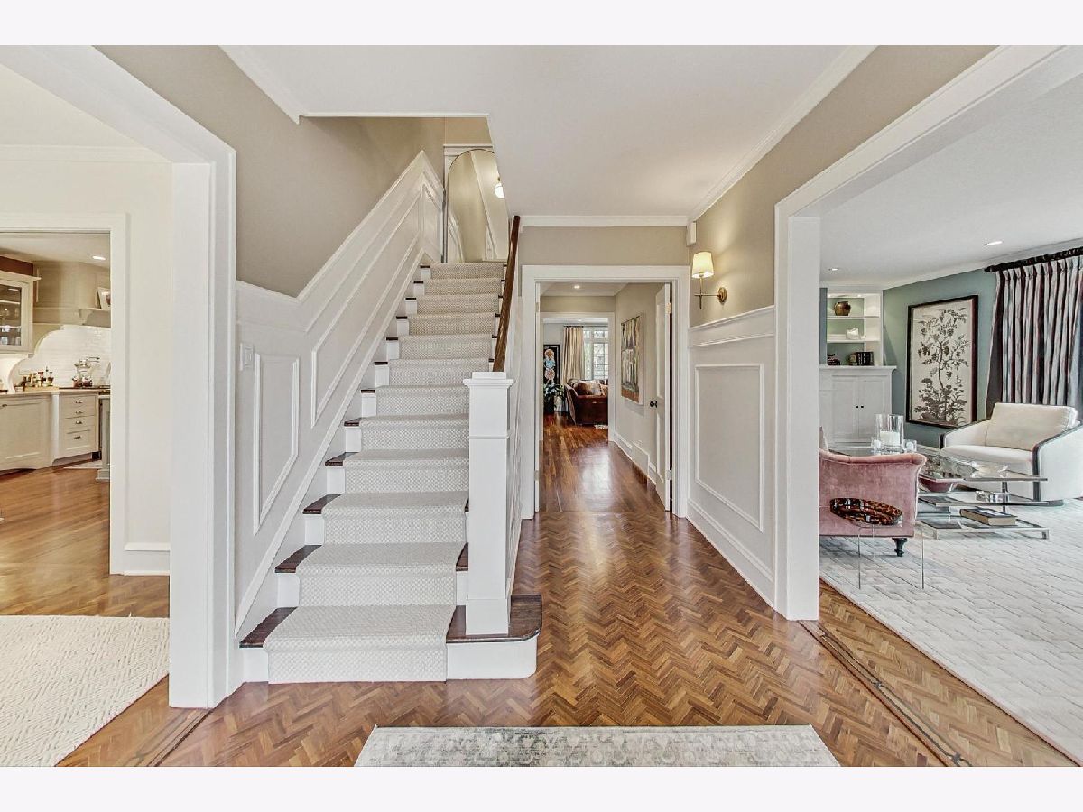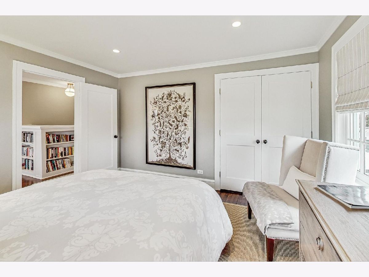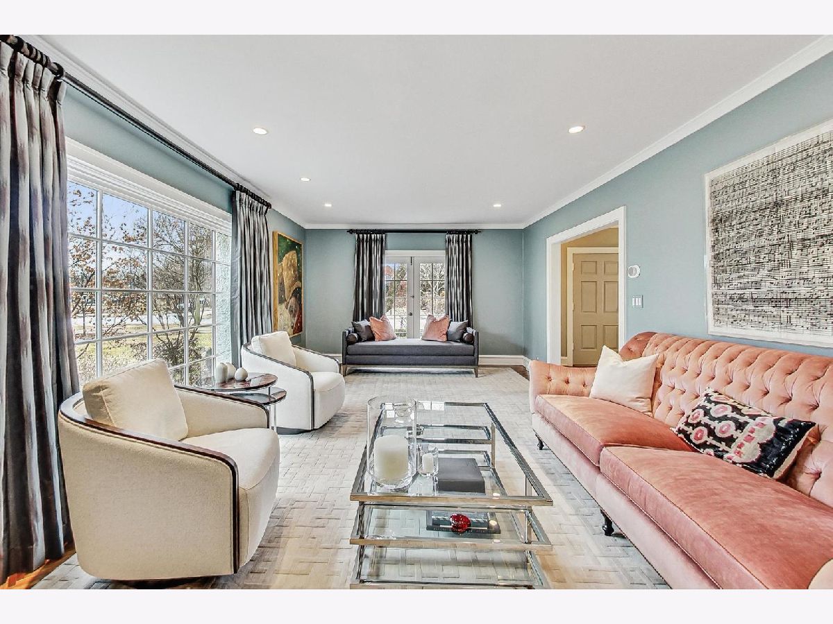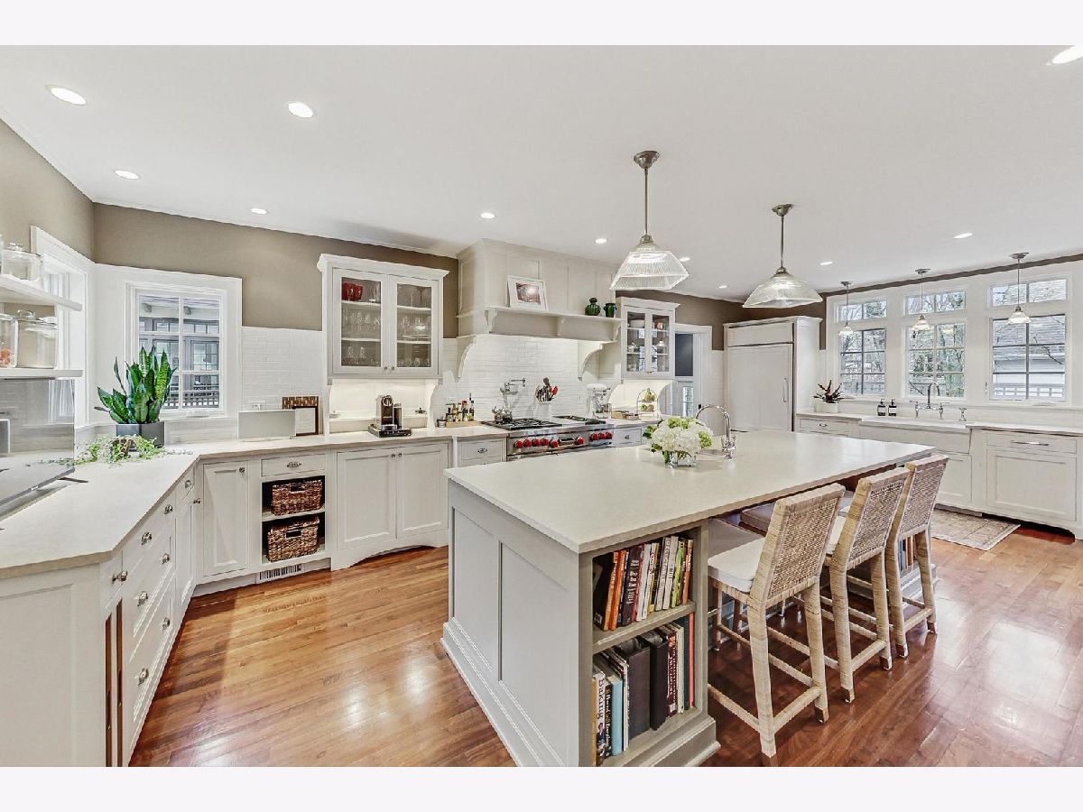 This extraordinary home offers a fine blend of classic charm, luxurious amenities and impeccable attention to detail, making it a true standout. Professionally landscaped, extra wide corner lot, included rebuilding the front terrace, which welcomes you to the home. Inside, you are immediately treated to walnut herringbone floors in the foyer, living room, and dining room adding an air of timeless elegance. Mark Menna created the custom wall of built-ins surrounding the LR Fireplace, highlighting the Ann Sacks tile surround. This sets a warm and sophisticated tone. Both the LR & DR have french doors that open to the front terrace, a wonderful feature for summertime entertaining. The custom kitchen, designed by Jean Stoffer, is a chef's dream with high-end appliances, including a 48" Wolf with double ovens, Subzero refrigerator and honed quartz countertops. The extra large island is great for prep with it's 2nd sink and seating allowing your guests and family alike to enjoy a casual meal. The kitchen and breakfast area have serene views of the backyard. French doors in the breakfast room provide access to the impressive outdoor space, featuring a Trex deck entry porch and access to this impressive outdoor space with multiple areas for seating and outdoor cooking. The mature landscaping and lighting that surrounds this area gives off an enchanting vibe. Back inside the family room, enjoy a gas fireplace and custom built-in bookshelves. Through a glass pocket door you enter the mudroom, which is conveniently located just steps from the garage. An updated 1/2 bath and 4th bedroom, with hip sputnik light fixtures, is currently used as an office. Upstairs, the unusual bookcase wall wrapping the stairs invites you to sit and enjoy a book in the reading nook. The primary bedroom is a zen retreat with beautiful views and a luxurious bath with Calcutta marble countertop and tile. Two additional bedrooms with ample closet space share the updated hall bath. During their tenure the sellers finished the basement which now features a large TV room with built-in cabinets and shelves, a game room complete with Uline wine refrigerator and Uline beverage refrigerator. Cute laundry room also has ample storage and there is a utility room with additional storage. The list of improvements is extensive and includes, a full roof replacement and insulation (2015) flat roof and gutters (2022) new chimney (2020) New central air (2024) Garage was new in (2004) and has ample storage and 4 skylights too! Located on the street of dreams, this home is a very short walk to the METRA, parks, blue ribbon schools and shopping. Don't miss your chance to own this one-of-a-kind property! *Please exclude the DR light fixture* *sellers have never used the LR FP*