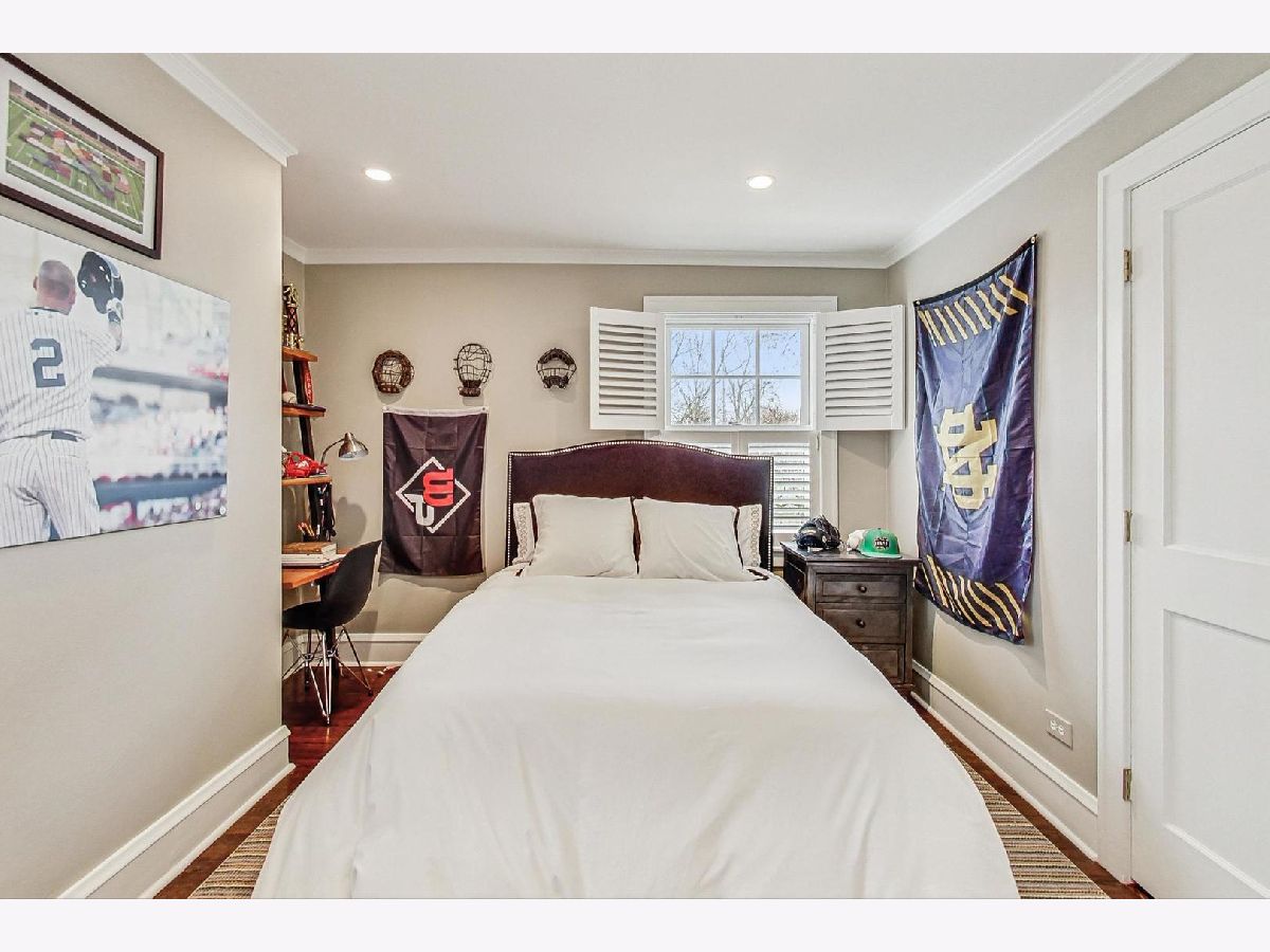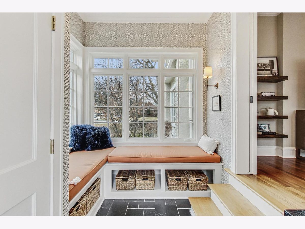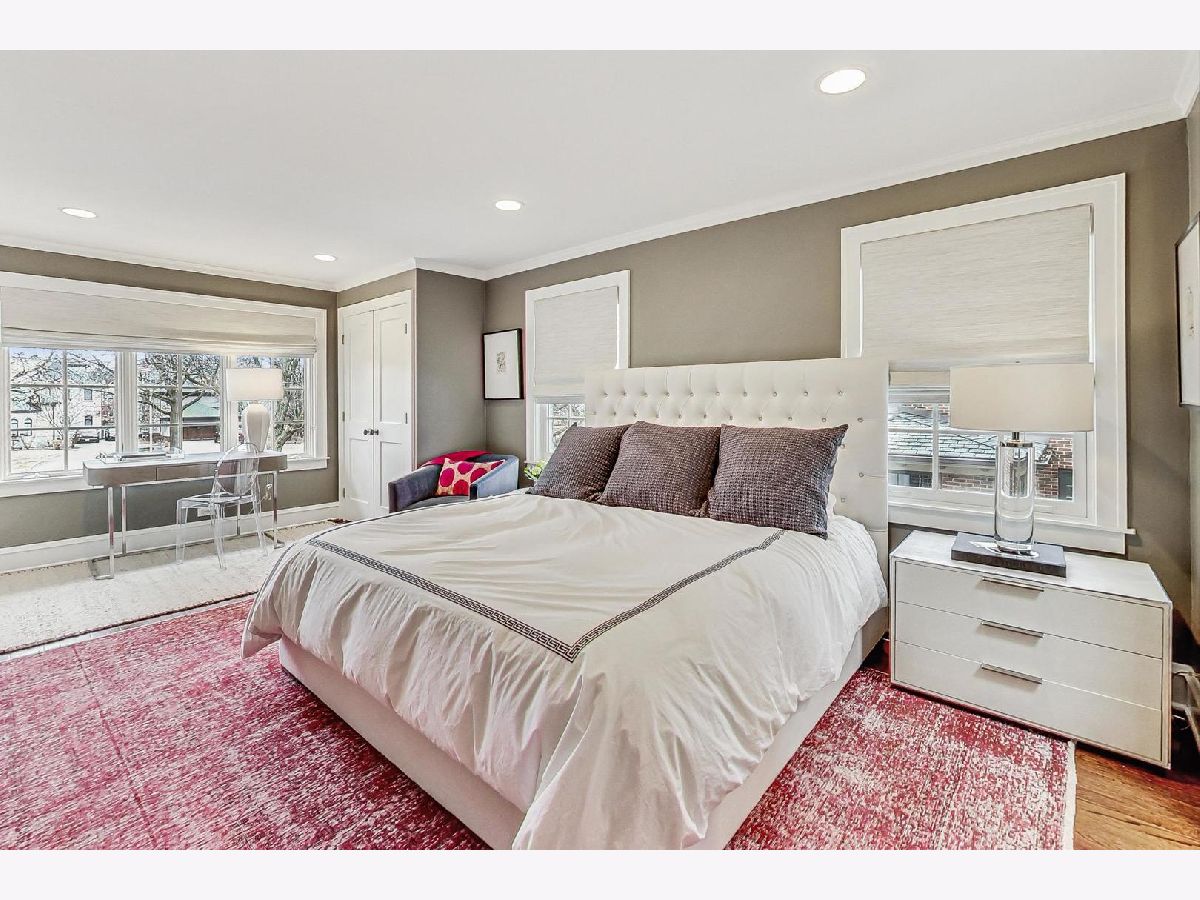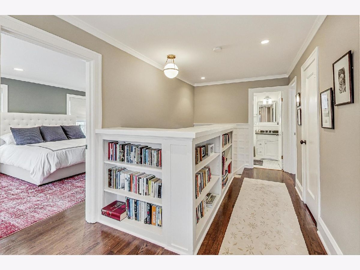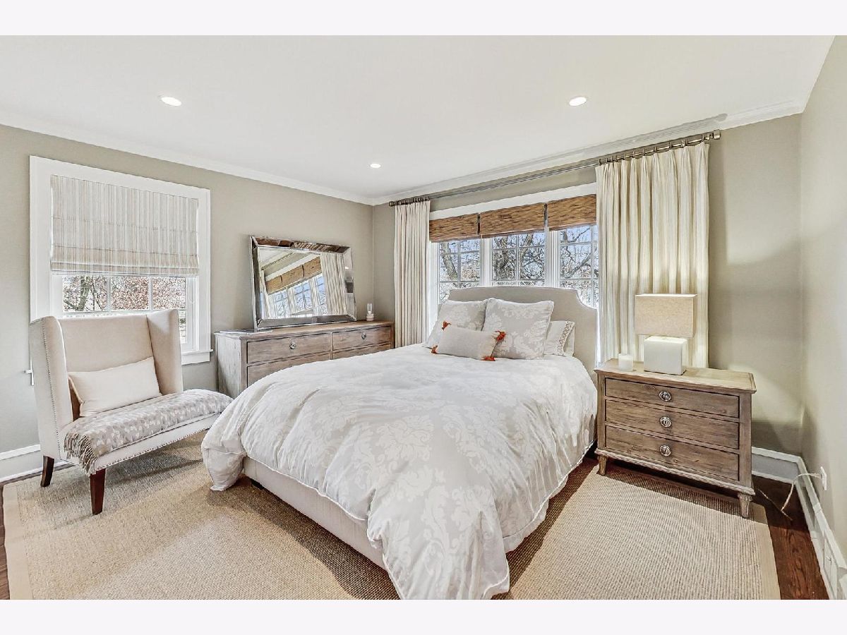 This extraordinary home offers a fine blend of classic charm, luxurious amenities and impeccable attention to detail, making it a true standout. Professionally landscaped, extra wide corner lot, included rebuilding the front terrace, which welcomes you to the home. Inside, you are immediately treated to walnut herringbone floors in the foyer, living room, and dining room adding an air of timeless elegance. Mark Menna created the custom wall of built-ins surrounding the LR Fireplace, highlighting the Ann Sacks tile surround. This sets a warm and sophisticated tone. Both the LR & DR have french doors that open to the front terrace, a wonderful feature for summertime entertaining. The custom kitchen, designed by Jean Stoffer, is a chef's dream with high-end appliances, including a 48" Wolf with double ovens, Subzero refrigerator and honed quartz countertops. The extra large island is great for prep with it's 2nd sink and seating allowing your guests and family alike to enjoy a casual meal. The kitchen and breakfast area have serene views of the backyard. French doors in the breakfast room provide access to the impressive outdoor space, featuring a Trex deck entry porch and access to this impressive outdoor space with multiple areas for seating and outdoor cooking. The mature landscaping and lighting that surrounds this area gives off an enchanting vibe. Back inside the family room, enjoy a gas fireplace and custom built-in bookshelves. Through a glass pocket door you enter the mudroom, which is conveniently located just steps from the garage. An updated 1/2 bath and 4th bedroom, with hip sputnik light fixtures, is currently used as an office. Upstairs, the unusual bookcase wall wrapping the stairs invites you to sit and enjoy a book in the reading nook. The primary bedroom is a zen retreat with beautiful views and a luxurious bath with Calcutta marble countertop and tile. Two additional bedrooms with ample closet space share the updated hall bath. During their tenure the sellers finished the basement which now features a large TV room with built-in cabinets and shelves, a game room complete with Uline wine refrigerator and Uline beverage refrigerator. Cute laundry room also has ample storage and there is a utility room with additional storage. The list of improvements is extensive and includes, a full roof replacement and insulation (2015) flat roof and gutters (2022) new chimney (2020) New central air (2024) Garage was new in (2004) and has ample storage and 4 skylights too! Located on the street of dreams, this home is a very short walk to the METRA, parks, blue ribbon schools and shopping. Don't miss your chance to own this one-of-a-kind property! *Please exclude the DR light fixture* *sellers have never used the LR FP*