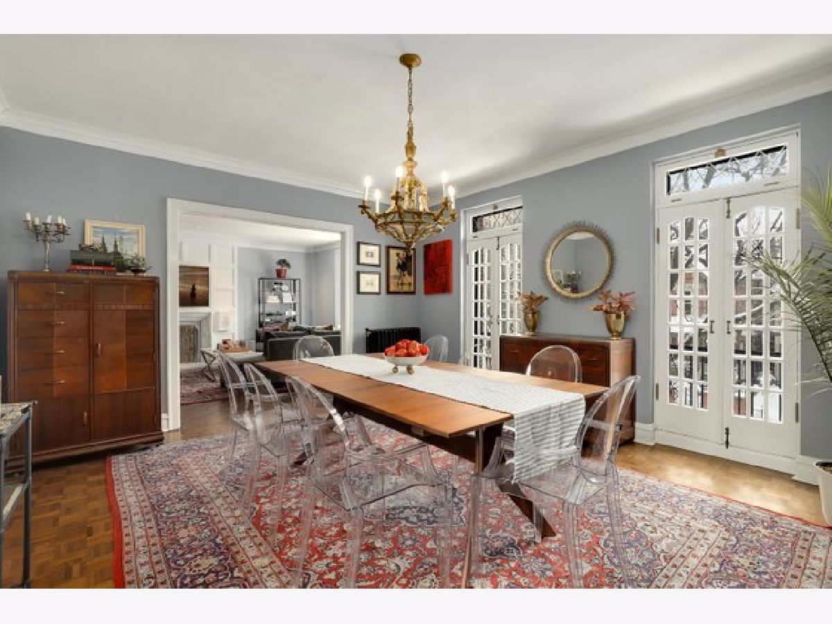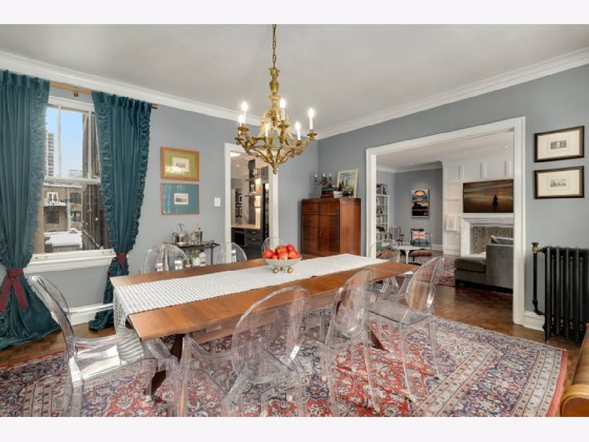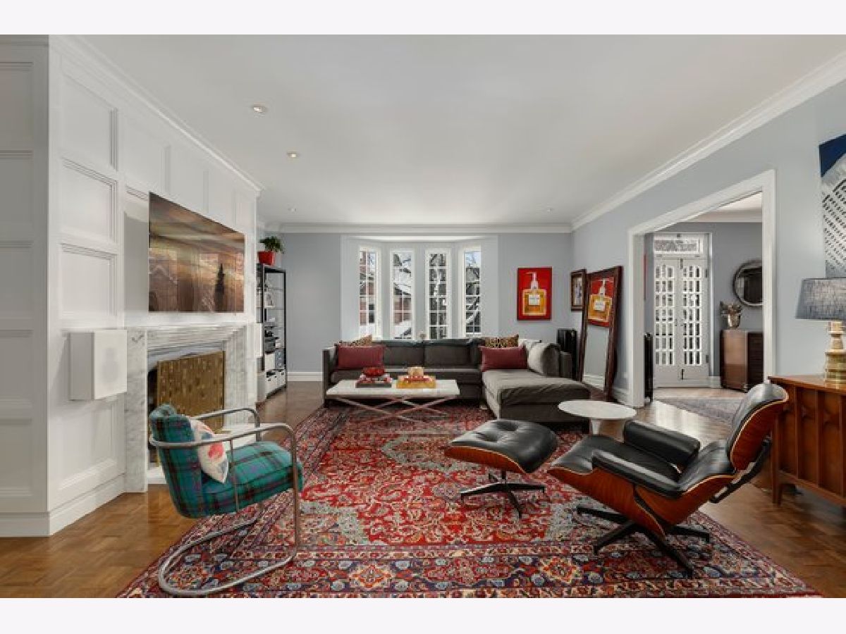 Come home to a perfect blend of elegance and style in this updated 3 bedroom, 3 bathroom home ideally situated in South East Lakeview in a boutique elevator building. Nothing is lacking in this rare Gothic jewel. Gleaming oak parquet floors lovingly restored to their original glory and rich original architectural details provide modern elegance with vintage charm. Cozy up in front of your very own wood-burning fireplace with custom woodwork in the expansive living room. A large, light-filled formal dining room flows into a chef's dream kitchen, professionally remodeled with a Thermador Professional range and hood, 150-bottle Sub-Zero wine fridge, Thermador drawer microwave, Asko dishwasher, quartz countertops, stone floors, and LED lighting. Large primary suite easily fits your king-size bedroom set with a luxuriously renovated en-suite bathroom. Two additional bedrooms, each with updated en-suite bathrooms, perfect for family, guests, or work-from-home office. Side-by-side laundry, Space-Pac A/C and extremely rare large private outdoor terrace with room to entertain and grill. A shared yard with 1 car garage space and tandem guest spot. The location can't be beat, just one block from Mariano's and Broadway's many shops, restaurants, and nightlife options. One block East is Sheridan and CTA Express Buses, and two blocks east to entry to the Lakefront trail and Lincoln Park. Located for the top-rated Nettelhorst Elementary School, this is the perfect Chicago Home. This beautiful building is very well maintained with healthy reserves and no pending assessments. New elevator, new driveway, a remodeled lobby, and recently tuckpointed. Includes large first-floor storage space. Pet friendly.
