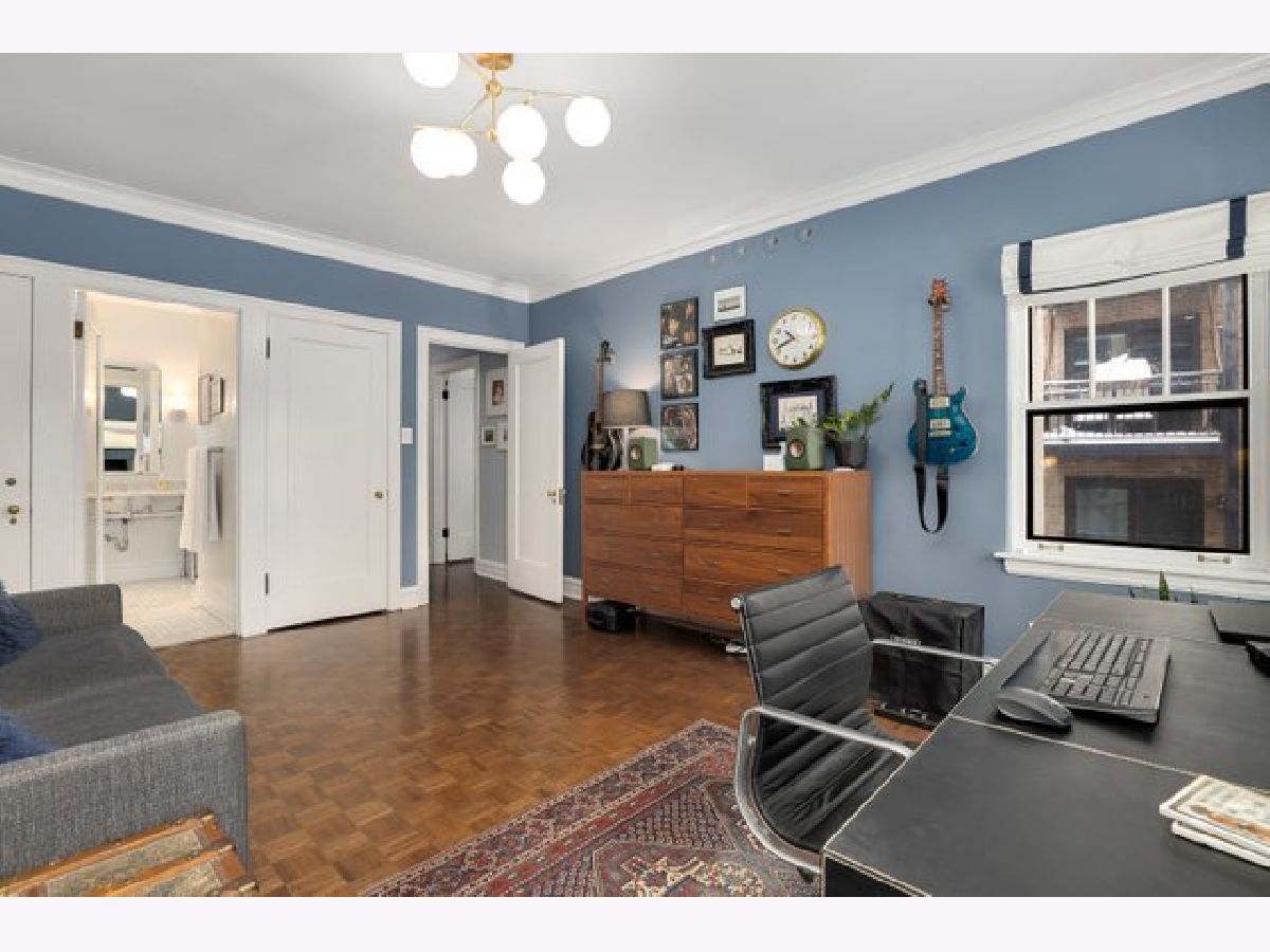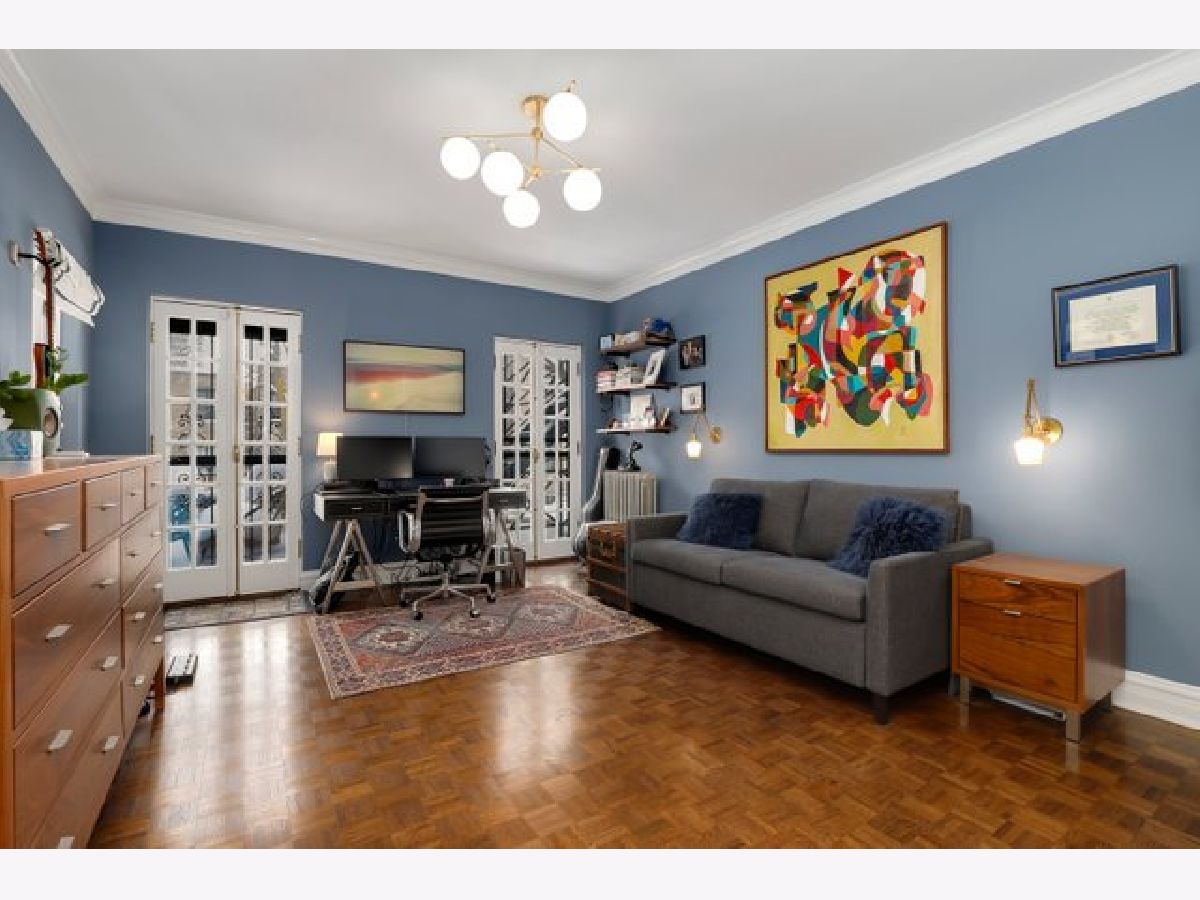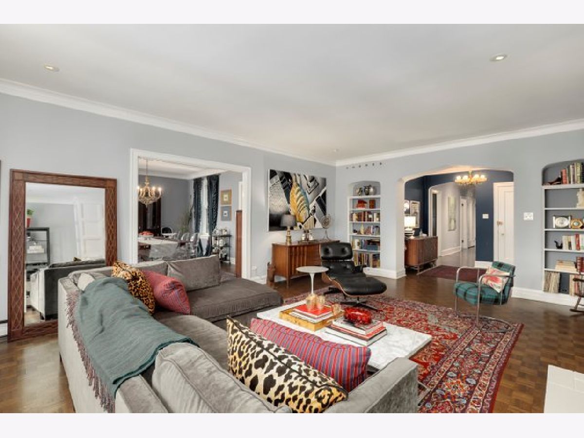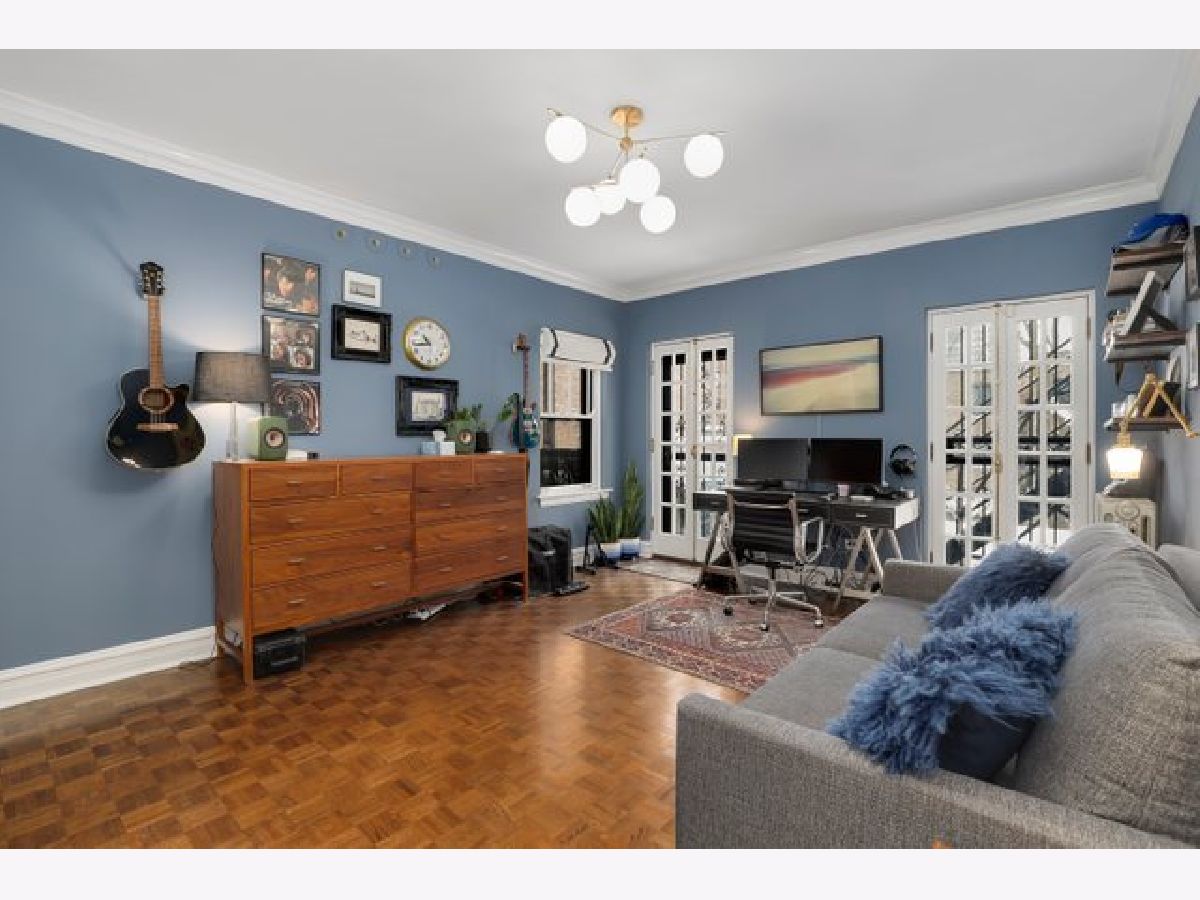 Come home to a perfect blend of elegance and style in this updated 3 bedroom, 3 bathroom home ideally situated in South East Lakeview in a boutique elevator building. Nothing is lacking in this rare Gothic jewel. Gleaming oak parquet floors lovingly restored to their original glory and rich original architectural details provide modern elegance with vintage charm. Cozy up in front of your very own wood-burning fireplace with custom woodwork in the expansive living room. A large, light-filled formal dining room flows into a chef's dream kitchen, professionally remodeled with a Thermador Professional range and hood, 150-bottle Sub-Zero wine fridge, Thermador drawer microwave, Asko dishwasher, quartz countertops, stone floors, and LED lighting. Large primary suite easily fits your king-size bedroom set with a luxuriously renovated en-suite bathroom. Two additional bedrooms, each with updated en-suite bathrooms, perfect for family, guests, or work-from-home office. Side-by-side laundry, Space-Pac A/C and extremely rare large private outdoor terrace with room to entertain and grill. A shared yard with 1 car garage space and tandem guest spot. The location can't be beat, just one block from Mariano's and Broadway's many shops, restaurants, and nightlife options. One block East is Sheridan and CTA Express Buses, and two blocks east to entry to the Lakefront trail and Lincoln Park. Located for the top-rated Nettelhorst Elementary School, this is the perfect Chicago Home. This beautiful building is very well maintained with healthy reserves and no pending assessments. New elevator, new driveway, a remodeled lobby, and recently tuckpointed. Includes large first-floor storage space. Pet friendly.