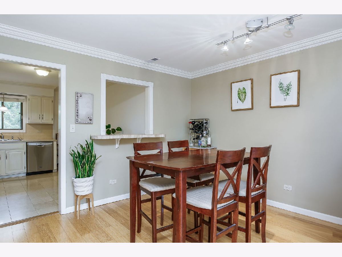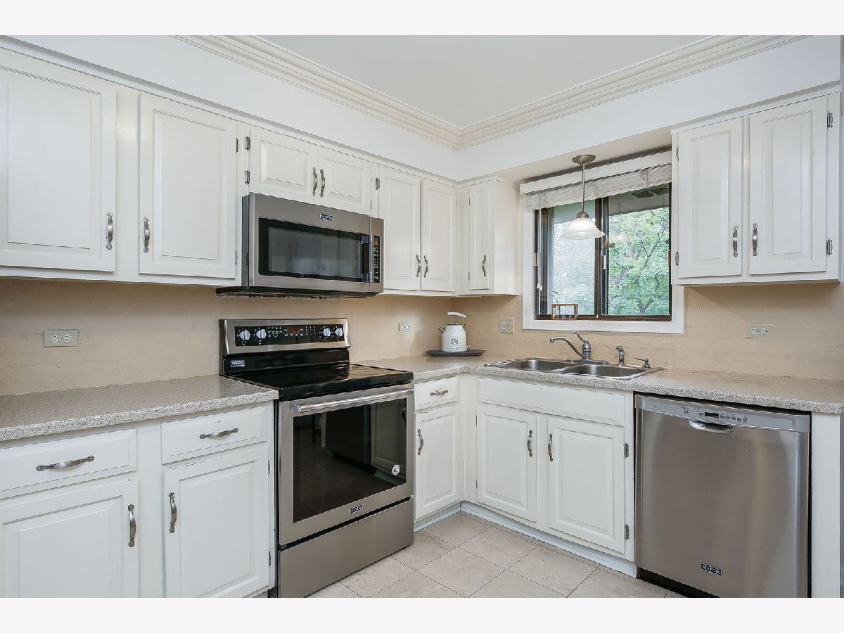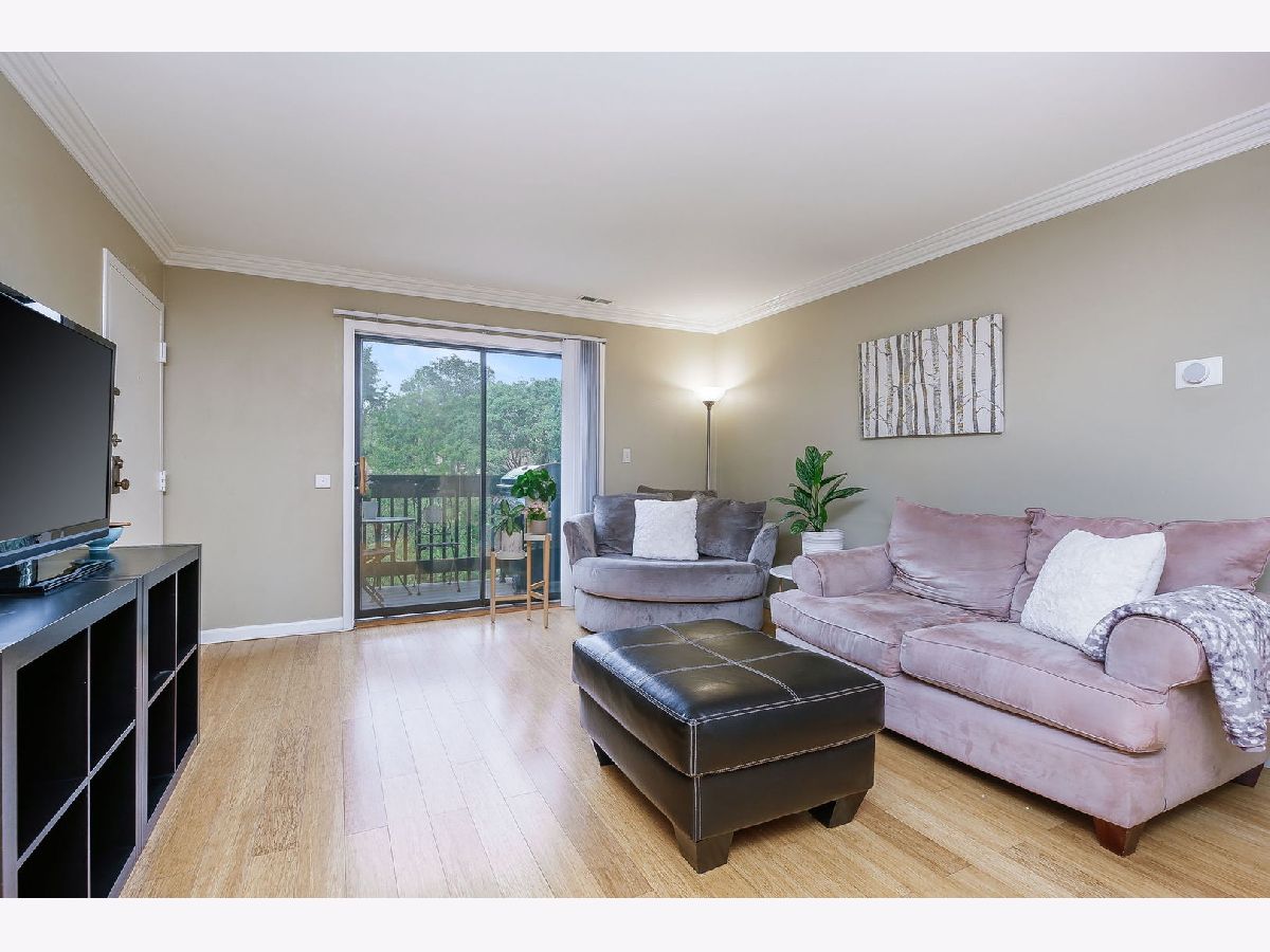 Quick close possible! Rarely available in-town Glen Ellyn at this price point. This newly updated, 2 bedroom, 2 bath end-unit is tucked into a tree-lined neighborhood, a short walk to the Town, Metra station, Lake Ellyn and Glenbard West HS. Both baths were beautifully renovated in 2022 with New vanities, New plumbing and lighting fixtures + New wall and floor tile. New HVAC 2023. The open concept living room to dining room includes bamboo flooring and patio doors to the balcony with room for table and gas grill. Large primary suite includes private bath, wall of closets and sustainable bamboo flooring. The bright, eat-in kitchen features white cabinetry, solid surface counters and newer stainless appliances (2022) with access to the common laundry room, storage locker and bike storage from the back staircase. The service or breakfast bar looks out to the dining room. Great floor plan with South and East West facing windows makes for a bright and cheery unit! Newer, sustainable bamboo flooring throughout. Front and back entry with lower-level space for bikes etc, separate storage locker and laundry room. The wooded & fenced property sides to the Illinois Prairie Path and has plenty of green space and guest parking. Rentals are not allowed.