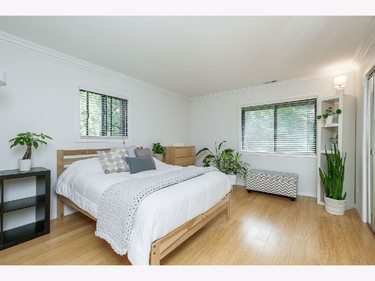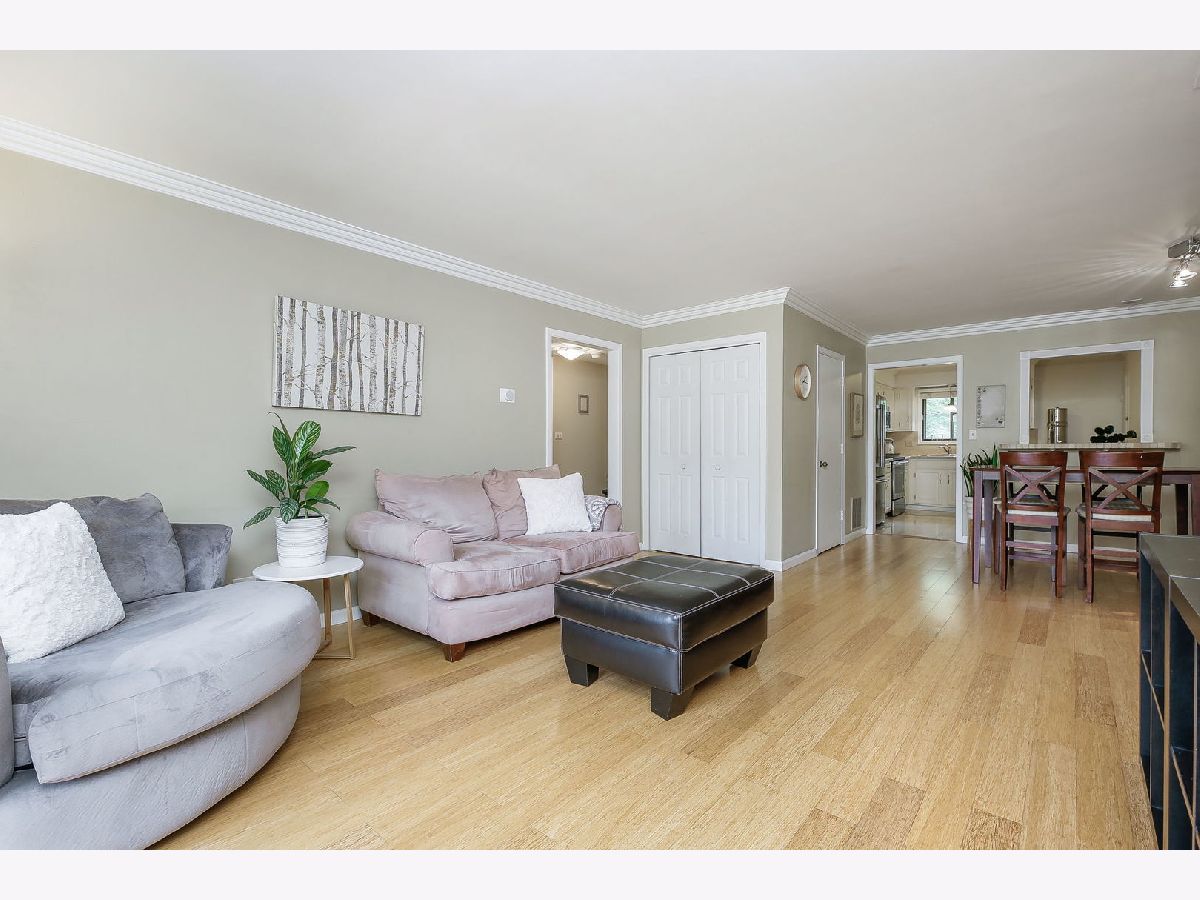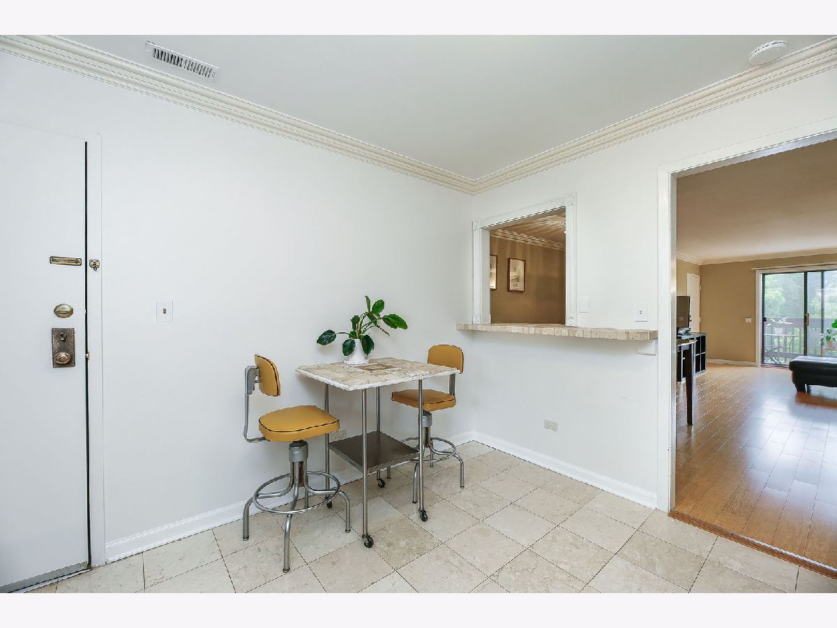 Quick close possible! Rarely available in-town Glen Ellyn at this price point. This newly updated, 2 bedroom, 2 bath end-unit is tucked into a tree-lined neighborhood, a short walk to the Town, Metra station, Lake Ellyn and Glenbard West HS. Both baths were beautifully renovated in 2022 with New vanities, New plumbing and lighting fixtures + New wall and floor tile. New HVAC 2023. The open concept living room to dining room includes bamboo flooring and patio doors to the balcony with room for table and gas grill. Large primary suite includes private bath, wall of closets and sustainable bamboo flooring. The bright, eat-in kitchen features white cabinetry, solid surface counters and newer stainless appliances (2022) with access to the common laundry room, storage locker and bike storage from the back staircase. The service or breakfast bar looks out to the dining room. Great floor plan with South and East West facing windows makes for a bright and cheery unit! Newer, sustainable bamboo flooring throughout. Front and back entry with lower-level space for bikes etc, separate storage locker and laundry room. The wooded & fenced property sides to the Illinois Prairie Path and has plenty of green space and guest parking. Rentals are not allowed.