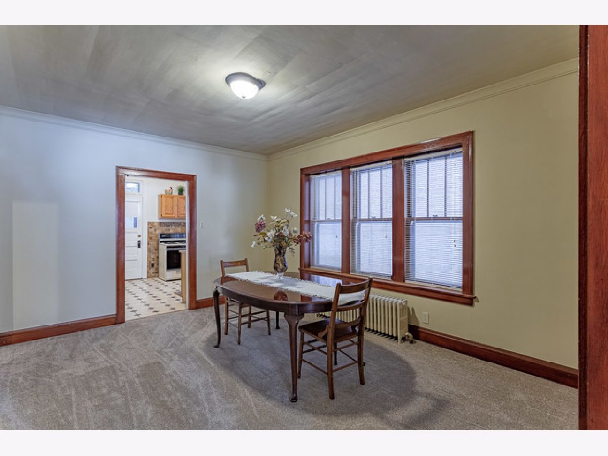 Very well maintained long time family owned brick two flat in Jefferson Park. Beautiful vintage appeal with original woodwork throughout. Very spacious, total 2512 square feet, with two bedrooms and one bath in each unit. First floor has newer neutral carpeting and decorative fireplace. Second floor has beautifully refinished hardwood floors. Charming kitchens in both units with plenty of cabinet and pantry space. Neutral paint throughout and main hallway has newer wallpaper and carpeting. 2nd floor has newer back door and screen door. All new electrical wiring in building 5 years ago. Chimney rebuilt from roof up and tuck pointed downward last summer. Roof approximately 2 years old. Huge, dry unfinished basement with Storm Pro system 2011. Enclosed back porches and two car garage with garage door opener and transmitters. Move-in Ready. Property being sold As-Is.