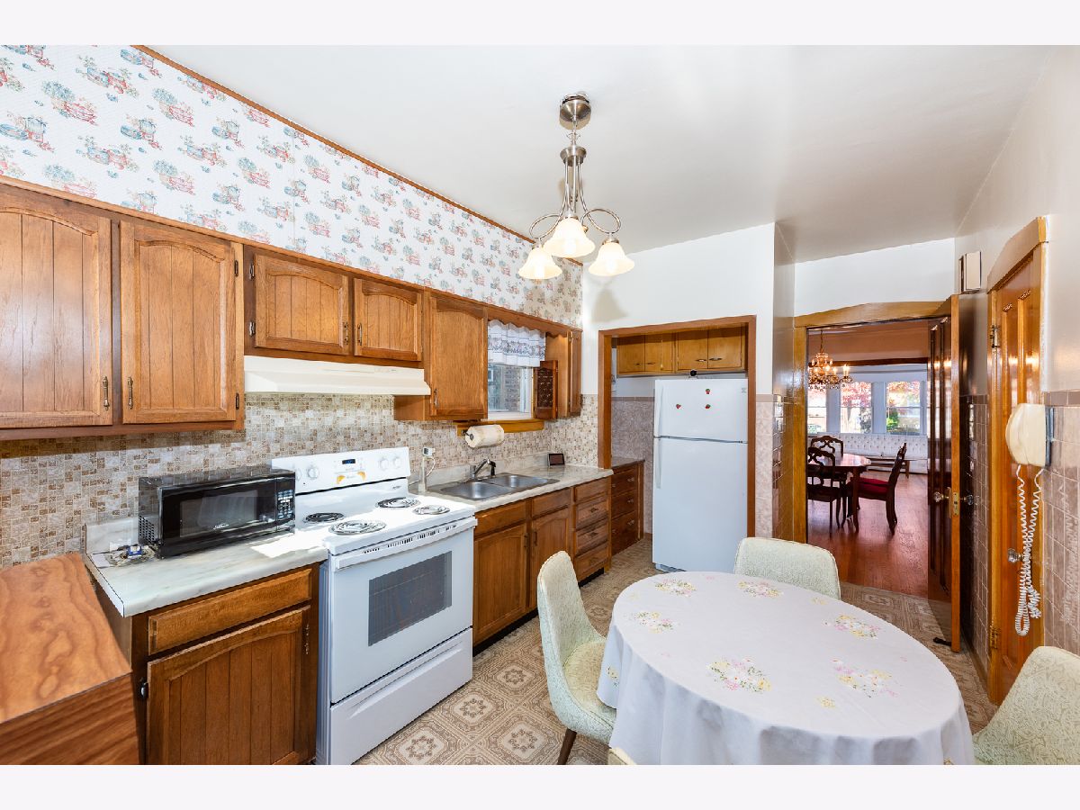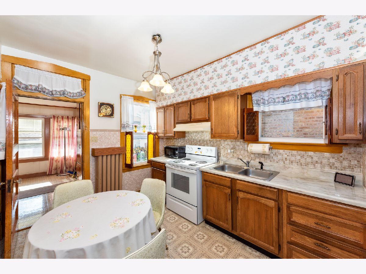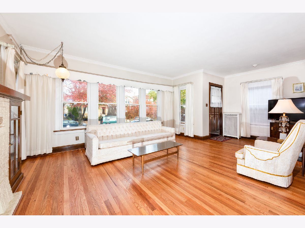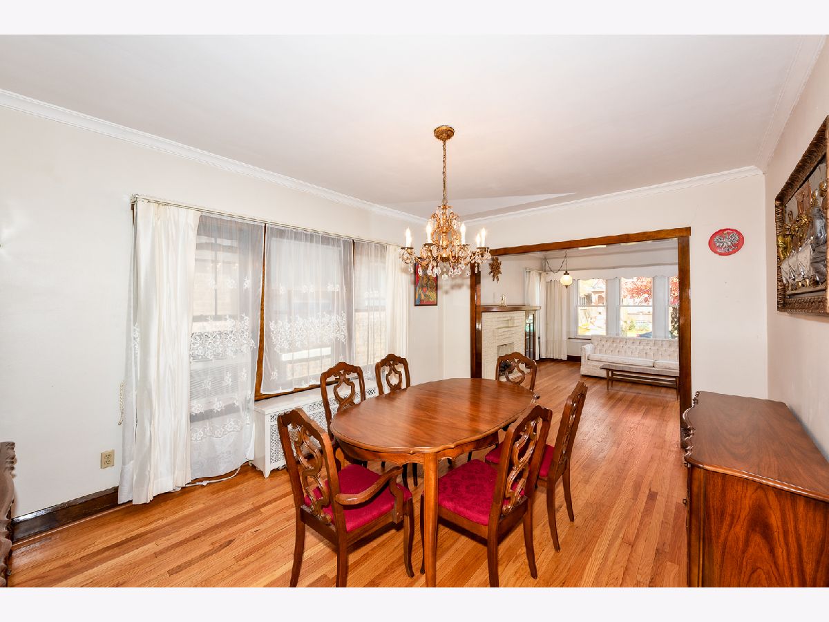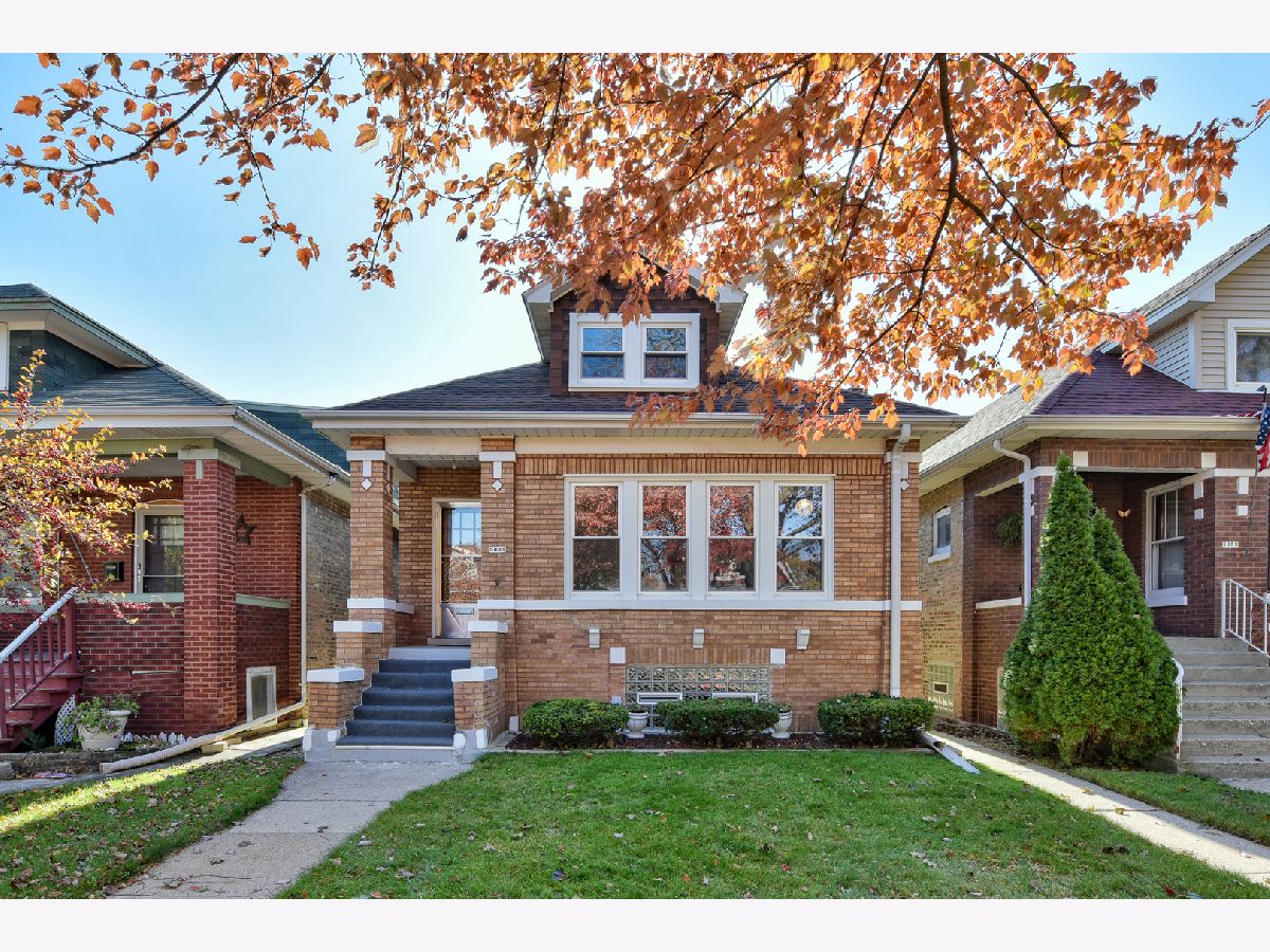 Beautiful, classic, brick bungalow in Belmont-Cragin! This solid home features huge living and dining rooms with splendid, just refinished hardwood floors, extending over to the foyer leading to 2 bedrooms and the bathroom. You will also appreciate a large and bright eat-in kitchen, as well as the enormous heated enclosed porch. An immense full basement is waiting for your ideas to turn it into more living space, entertainment center, etc. A spacious attic with wooden floor can be easily converted to a loft or to additional bedrooms. New roof in 2015. 2-car garage with new door and new opener. Upgraded 220V electrical service. Newer windows and water tank. Endless storage. A simply charming and spotless home! Easy to show. Estate sale.
