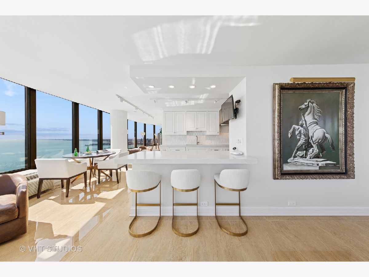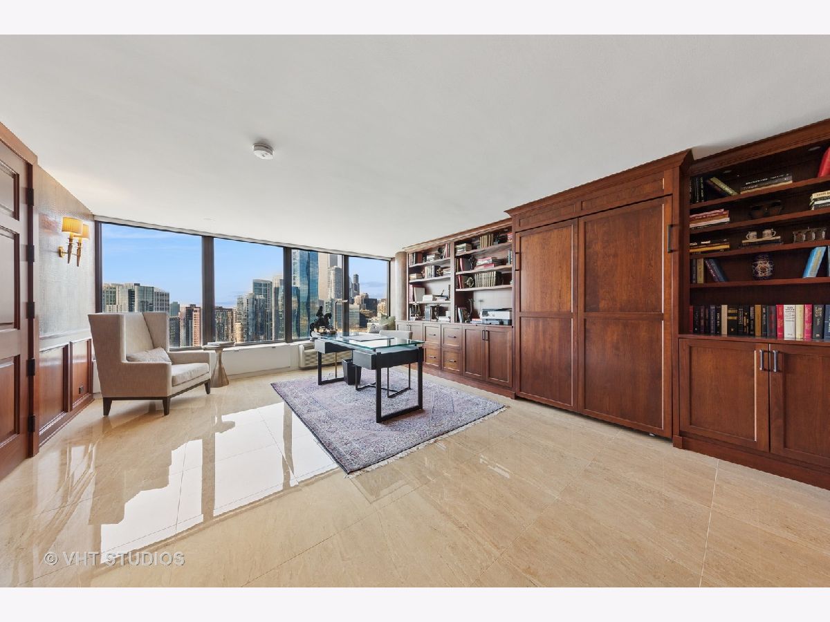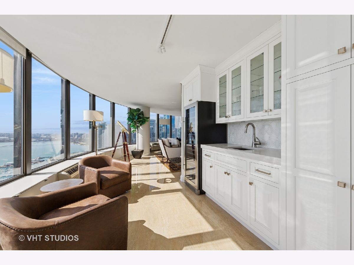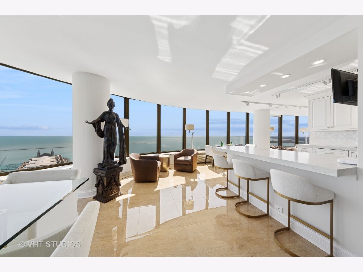 This exquisitely renovated 3,000 sq ft, 2 Bedroom with combined office / 3.1 Bath residence in the East Tower of Lake Point Tower offers show-stopping, panoramic views and sophisticated elegance throughout. From the moment you step inside, you're greeted by a sweeping curve of floor-to-ceiling windows that frame breathtaking, unobstructed vistas of Lake Michigan, Ohio Street Beach, Navy Pier, the Chicago River, and the dazzling city skyline. Whether it's sunrises over the lake or the nightly sparkle of city lights, the views are simply unmatched. Originally two units combined into one masterful layout completed in 2019, this residence is a showcase of thoughtful design and flawless execution. Porcelain tile flooring flows seamlessly throughout, while bespoke finishes and meticulous craftsmanship elevate every room. The chef's kitchen is a true centerpiece-designed for both everyday living and grand entertaining. Outfitted with top-tier Sub-Zero and Wolf appliances, custom cabinetry, a statement backsplash, thick quartz countertops, and breakfast bar for additional seating. An adjacent built-in wet bar with wine fridge, additional storage and pantry completes the entertainer's dream setup. The expansive open-concept living and dining areas set the stage for unforgettable moments-whether it's dining under the glow of fireworks, watching the Air & Water Show from your front-row seat, or simply soaking in the ever-changing lake views. The primary suite is a serene retreat, featuring custom woodwork, grand solid wood doors, and wall of custom closets that blend elegance with exceptional organization. The secondary bedroom doubles as a home office, complete with handcrafted built-ins and a Murphy bed for added versatility. Additional highlights include: Large walk-in laundry room with utility sink and built-in storage, Full Lutron lighting system and motorized shades throughout the home, Brand new heating and cooling units, Exceptional closet space throughout. Lake Point Tower is one of Streeterville's most coveted addresses, boasting extensive building amenities and the rare luxury of a private 2.5-acre park and lagoon - truly a city oasis. Homes of this caliber rarely come to market. Don't miss your opportunity to own a piece of Chicago's skyline in a residence that redefines luxury living.