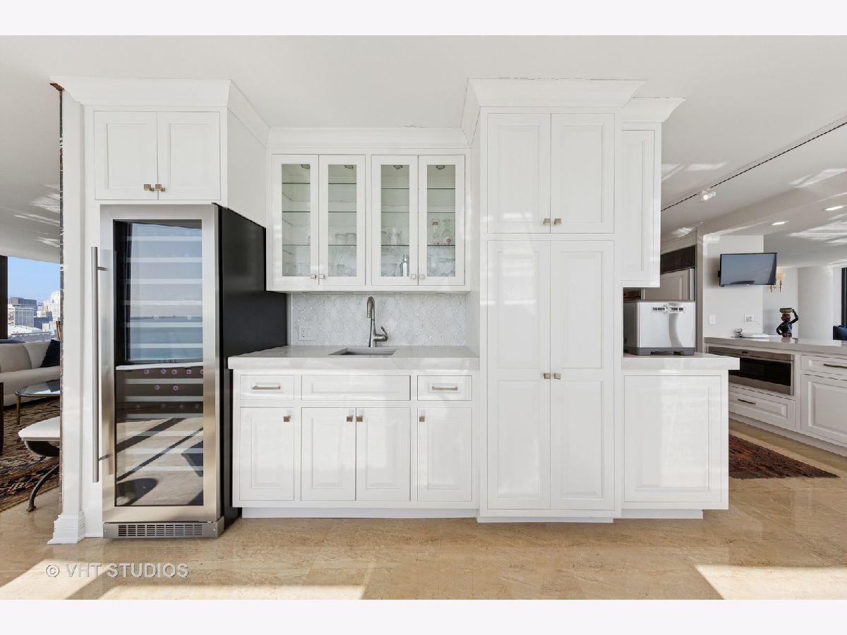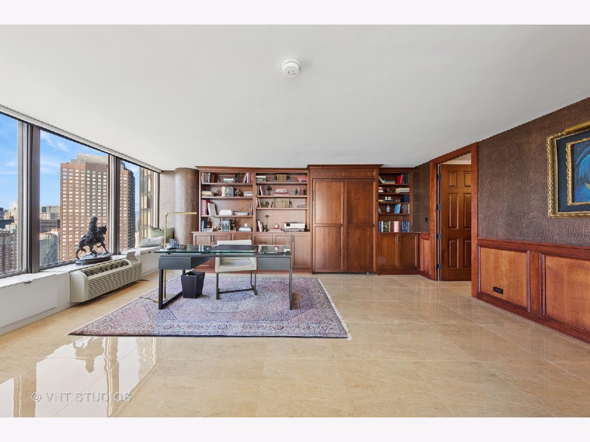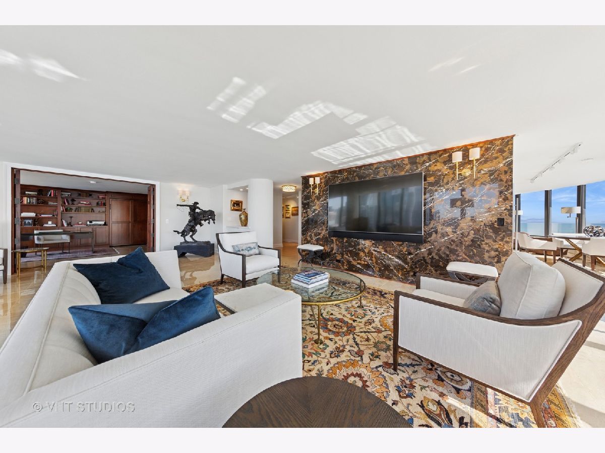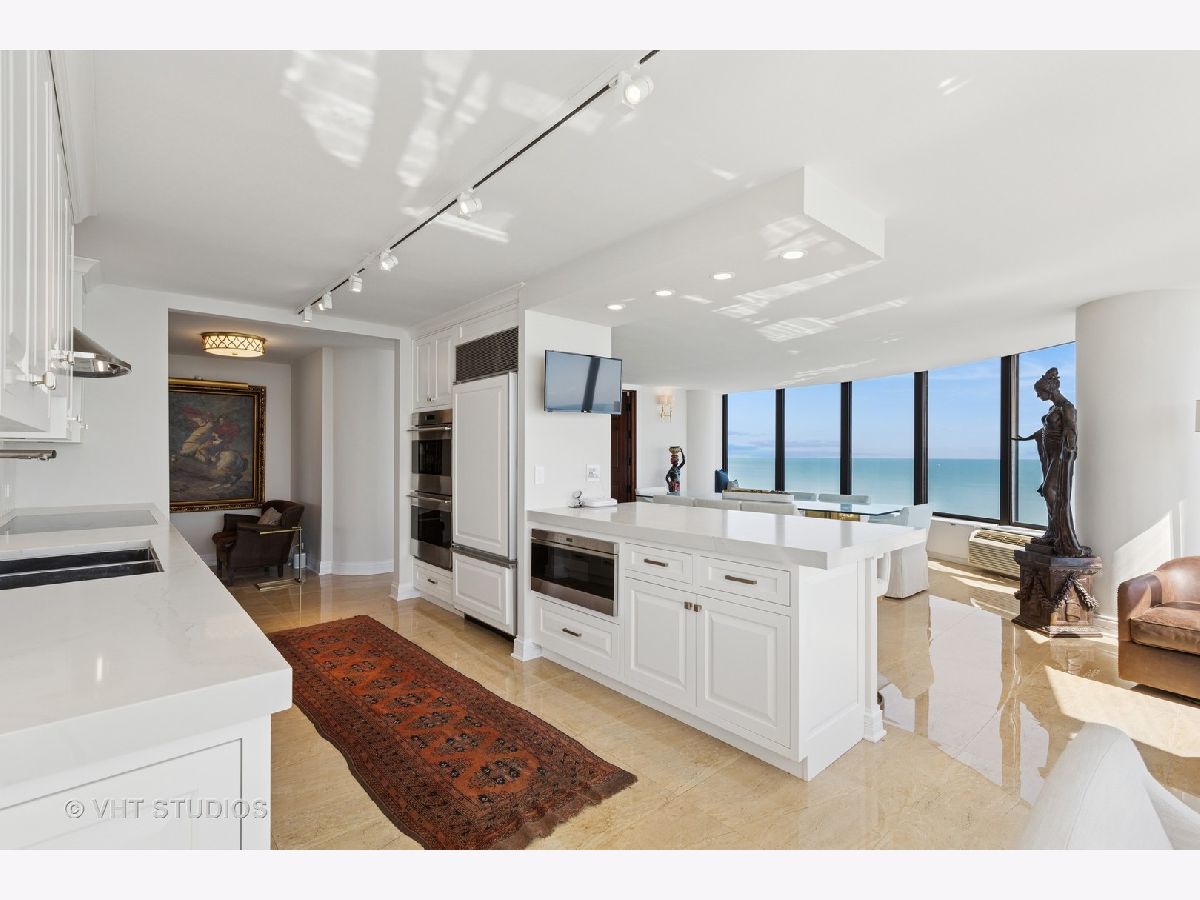 This exquisitely renovated 3,000 sq ft, 2 Bedroom with combined office / 3.1 Bath residence in the East Tower of Lake Point Tower offers show-stopping, panoramic views and sophisticated elegance throughout. From the moment you step inside, you're greeted by a sweeping curve of floor-to-ceiling windows that frame breathtaking, unobstructed vistas of Lake Michigan, Ohio Street Beach, Navy Pier, the Chicago River, and the dazzling city skyline. Whether it's sunrises over the lake or the nightly sparkle of city lights, the views are simply unmatched. Originally two units combined into one masterful layout completed in 2019, this residence is a showcase of thoughtful design and flawless execution. Porcelain tile flooring flows seamlessly throughout, while bespoke finishes and meticulous craftsmanship elevate every room. The chef's kitchen is a true centerpiece-designed for both everyday living and grand entertaining. Outfitted with top-tier Sub-Zero and Wolf appliances, custom cabinetry, a statement backsplash, thick quartz countertops, and breakfast bar for additional seating. An adjacent built-in wet bar with wine fridge, additional storage and pantry completes the entertainer's dream setup. The expansive open-concept living and dining areas set the stage for unforgettable moments-whether it's dining under the glow of fireworks, watching the Air & Water Show from your front-row seat, or simply soaking in the ever-changing lake views. The primary suite is a serene retreat, featuring custom woodwork, grand solid wood doors, and wall of custom closets that blend elegance with exceptional organization. The secondary bedroom doubles as a home office, complete with handcrafted built-ins and a Murphy bed for added versatility. Additional highlights include: Large walk-in laundry room with utility sink and built-in storage, Full Lutron lighting system and motorized shades throughout the home, Brand new heating and cooling units, Exceptional closet space throughout. Lake Point Tower is one of Streeterville's most coveted addresses, boasting extensive building amenities and the rare luxury of a private 2.5-acre park and lagoon - truly a city oasis. Homes of this caliber rarely come to market. Don't miss your opportunity to own a piece of Chicago's skyline in a residence that redefines luxury living.