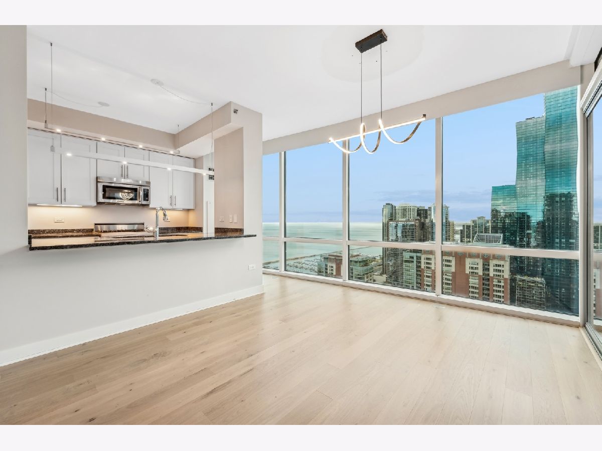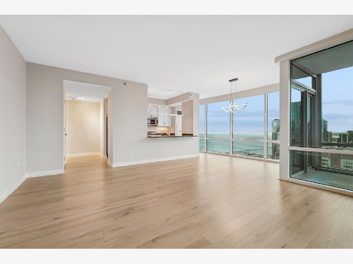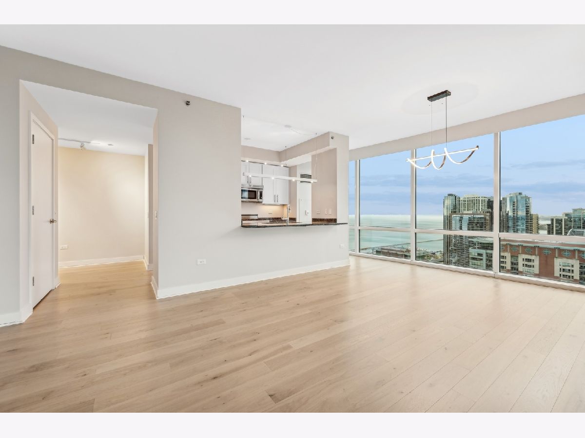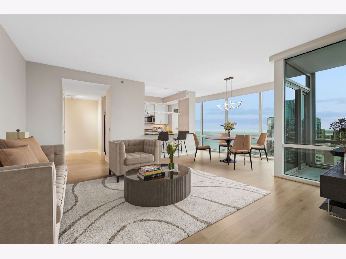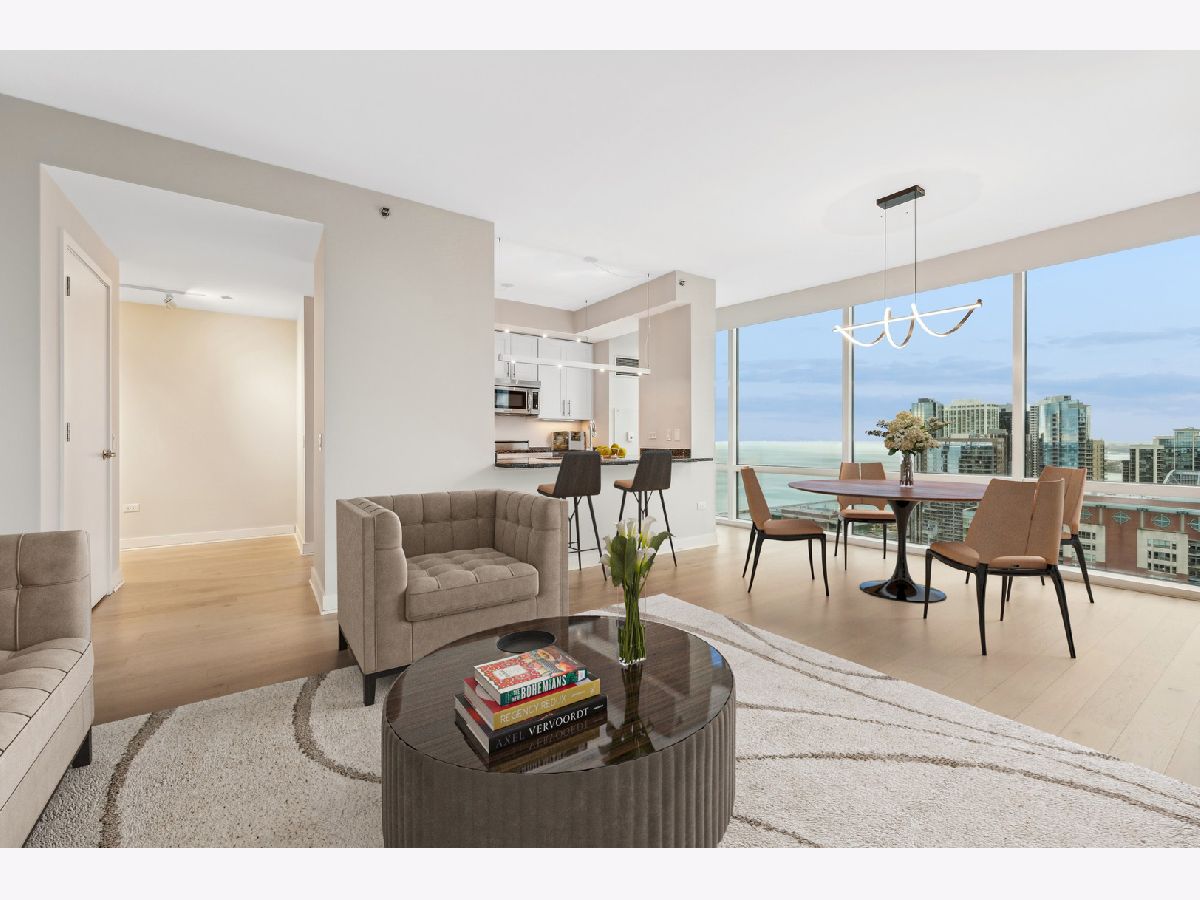 Stunning High-Floor Two-Bedroom Condo at 505 N McClurg Ct, Streeterville Experience breathtaking views of Lake Michigan and the Chicago skyline from this updated two-bedroom condo. With exposures to the east, south, and west, natural light floods the large living and dining area through floor-to-ceiling windows. The striking open kitchen features a modern white design, a Viking range, KitchenAid stainless steel appliances, a pantry, and a convenient breakfast bar-perfect for entertaining. Wide plank flooring enhances the entry, hallway, and main living spaces, adding a sleek and contemporary touch. The spacious primary suite boasts a wall of windows, ample room for a king-size bed, and a built-out Alpha System walk-in closet. The luxurious ensuite bathroom includes double vanities, a walk-in shower, a jetted tub, and a window for natural light. The second bedroom is versatile, ideal as a guest room or a home office. This pristine home is move-in ready, with neutral decor that complements any style. Located in a full-service, professionally managed building, you'll enjoy 24-hour door staff, a fitness center, a pool with a sundeck, a hospitality room, a conference room, and an adjacent dog park for your furry friends. Don't miss this opportunity to live in one of Streeterville's most desirable locations. Deeded parking available for $40K