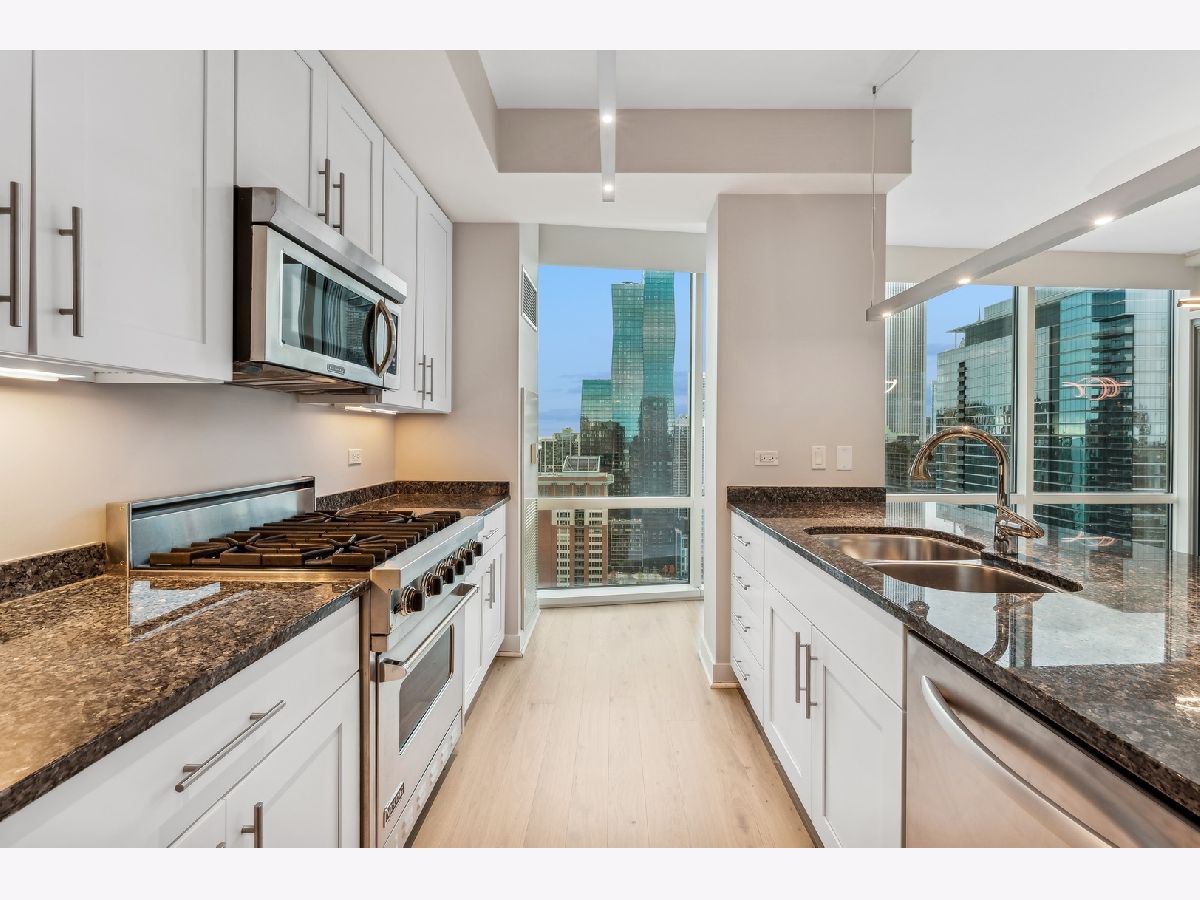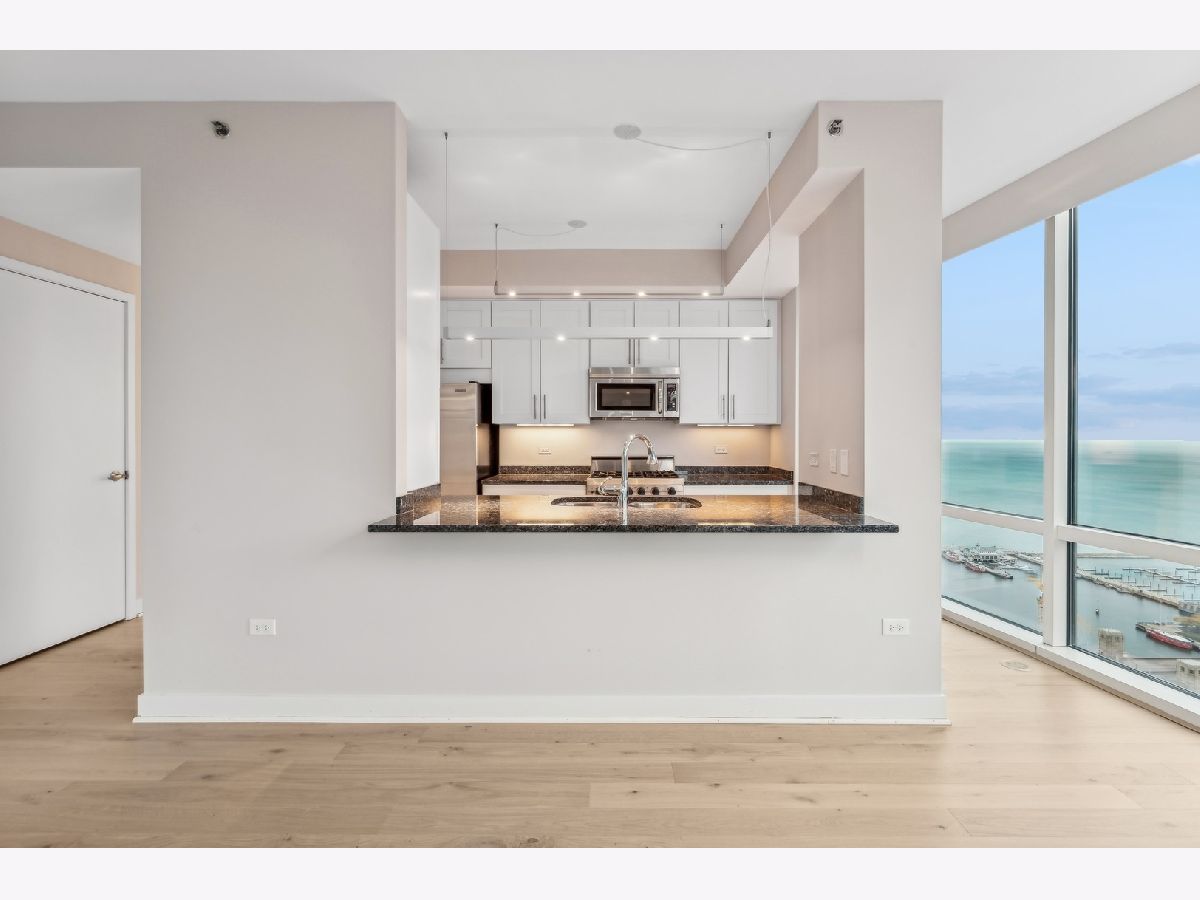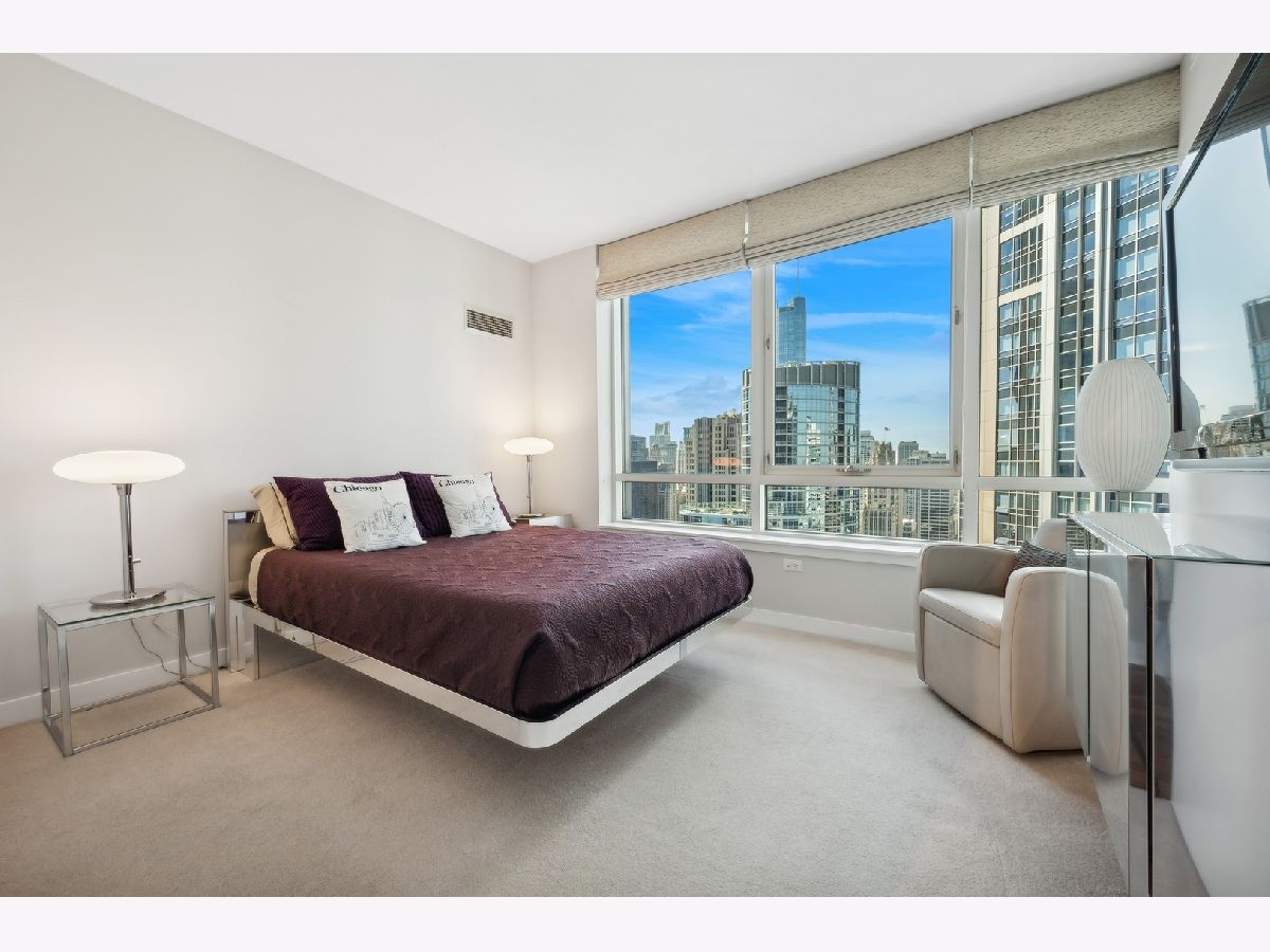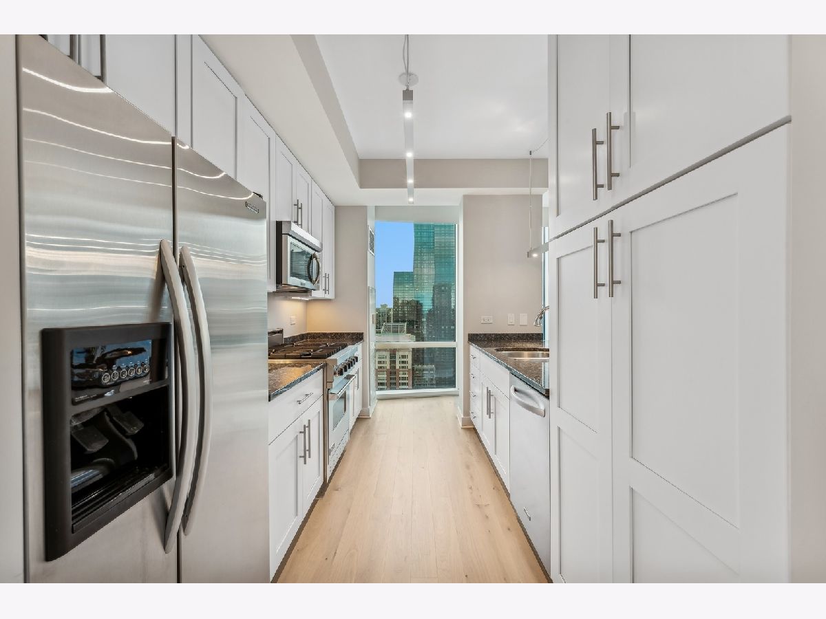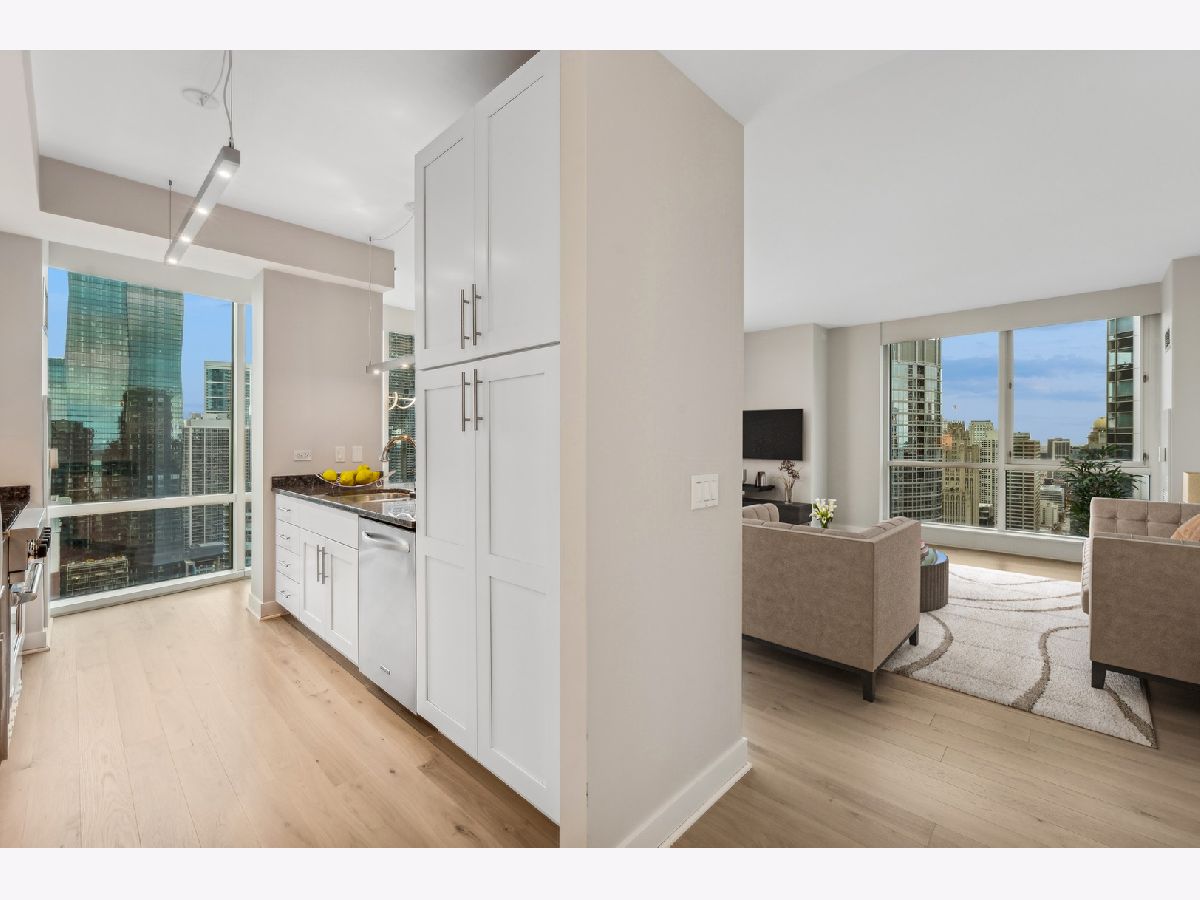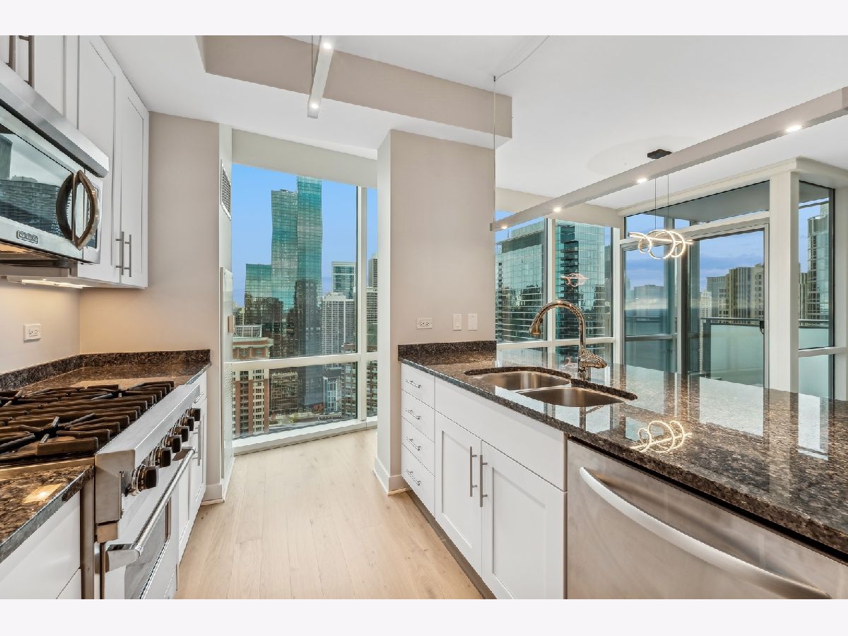 Stunning High-Floor Two-Bedroom Condo at 505 N McClurg Ct, Streeterville Experience breathtaking views of Lake Michigan and the Chicago skyline from this updated two-bedroom condo. With exposures to the east, south, and west, natural light floods the large living and dining area through floor-to-ceiling windows. The striking open kitchen features a modern white design, a Viking range, KitchenAid stainless steel appliances, a pantry, and a convenient breakfast bar-perfect for entertaining. Wide plank flooring enhances the entry, hallway, and main living spaces, adding a sleek and contemporary touch. The spacious primary suite boasts a wall of windows, ample room for a king-size bed, and a built-out Alpha System walk-in closet. The luxurious ensuite bathroom includes double vanities, a walk-in shower, a jetted tub, and a window for natural light. The second bedroom is versatile, ideal as a guest room or a home office. This pristine home is move-in ready, with neutral decor that complements any style. Located in a full-service, professionally managed building, you'll enjoy 24-hour door staff, a fitness center, a pool with a sundeck, a hospitality room, a conference room, and an adjacent dog park for your furry friends. Don't miss this opportunity to live in one of Streeterville's most desirable locations. Deeded parking available for $40K