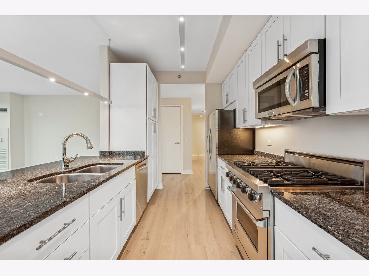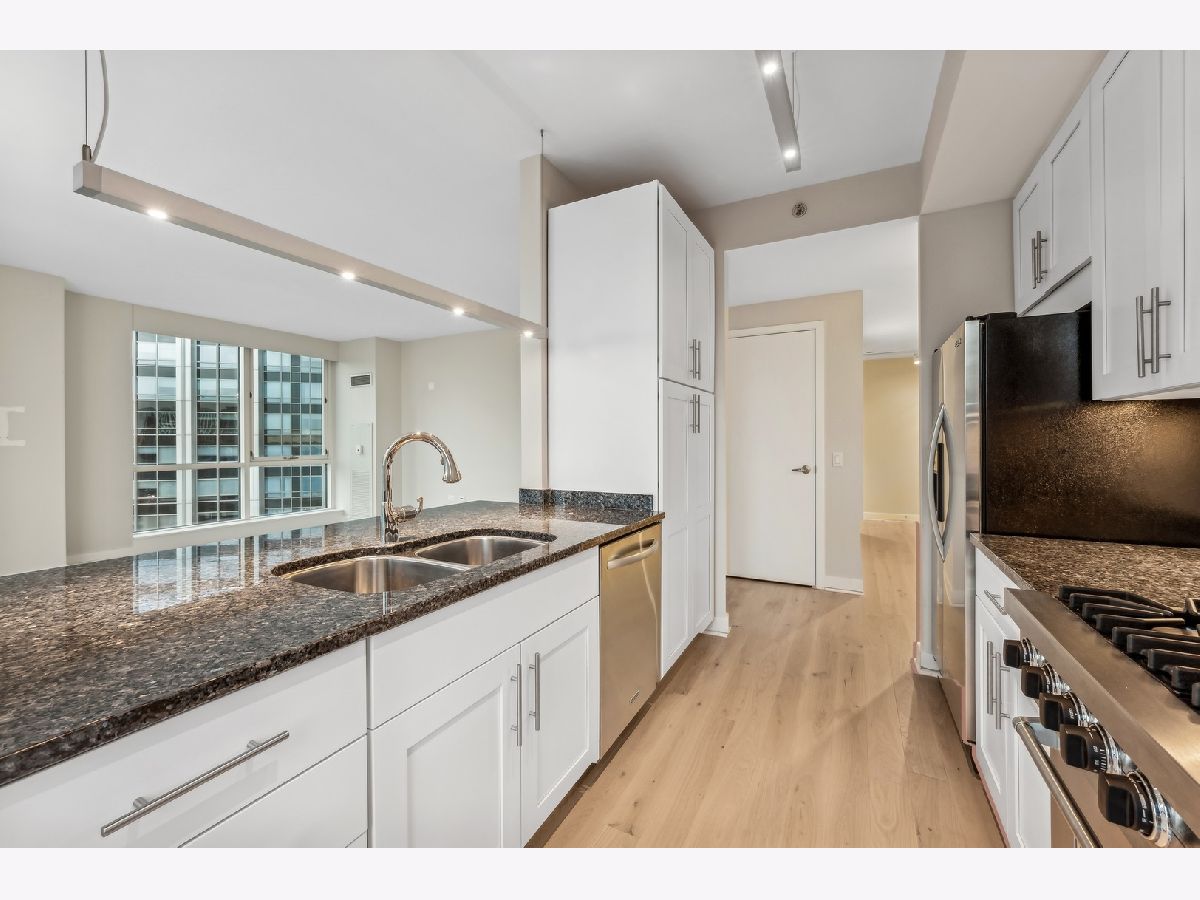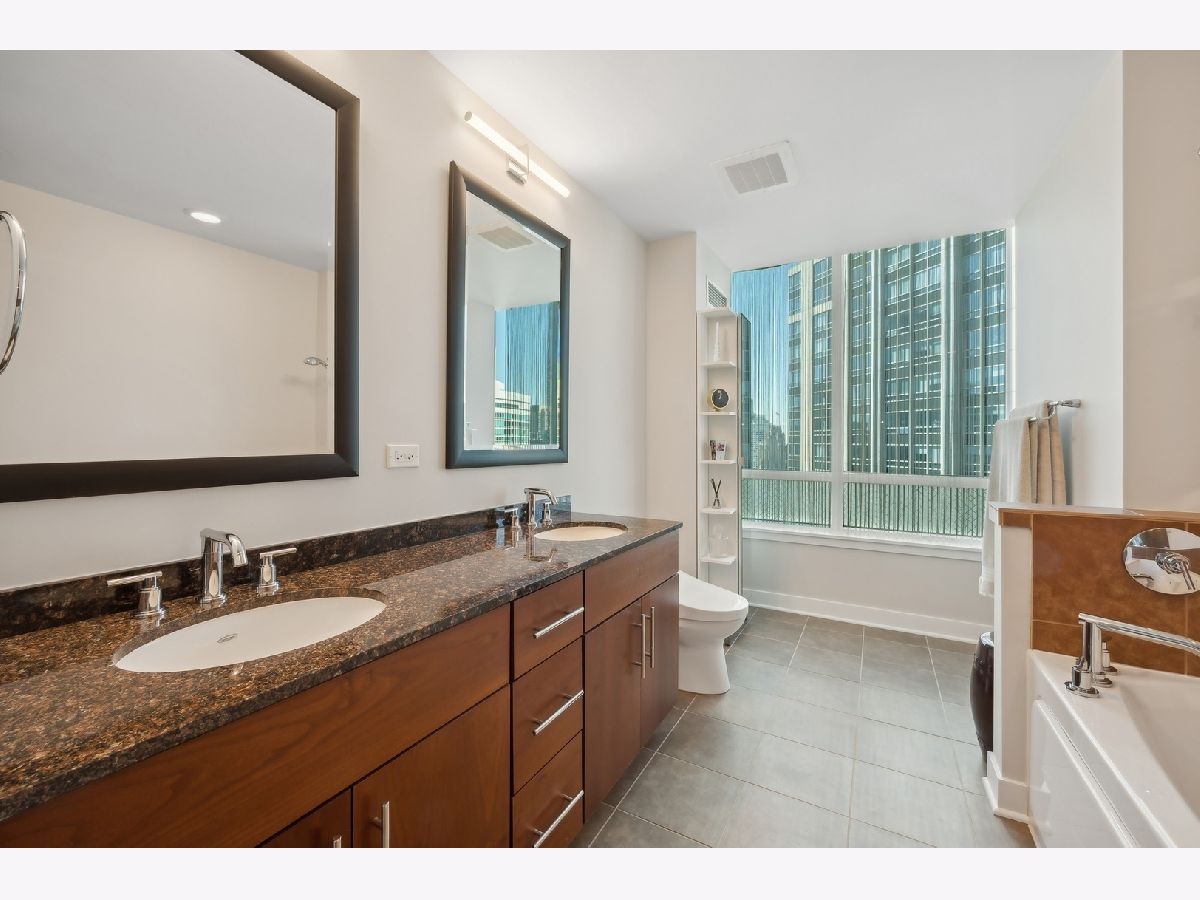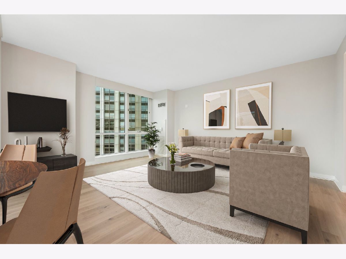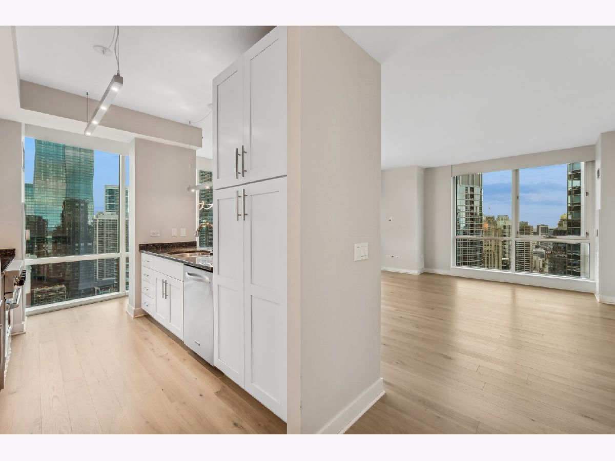 Stunning High-Floor Two-Bedroom Condo at 505 N McClurg Ct, Streeterville Experience breathtaking views of Lake Michigan and the Chicago skyline from this updated two-bedroom condo. With exposures to the east, south, and west, natural light floods the large living and dining area through floor-to-ceiling windows. The striking open kitchen features a modern white design, a Viking range, KitchenAid stainless steel appliances, a pantry, and a convenient breakfast bar-perfect for entertaining. Wide plank flooring enhances the entry, hallway, and main living spaces, adding a sleek and contemporary touch. The spacious primary suite boasts a wall of windows, ample room for a king-size bed, and a built-out Alpha System walk-in closet. The luxurious ensuite bathroom includes double vanities, a walk-in shower, a jetted tub, and a window for natural light. The second bedroom is versatile, ideal as a guest room or a home office. This pristine home is move-in ready, with neutral decor that complements any style. Located in a full-service, professionally managed building, you'll enjoy 24-hour door staff, a fitness center, a pool with a sundeck, a hospitality room, a conference room, and an adjacent dog park for your furry friends. Don't miss this opportunity to live in one of Streeterville's most desirable locations. Deeded parking available for $40K
