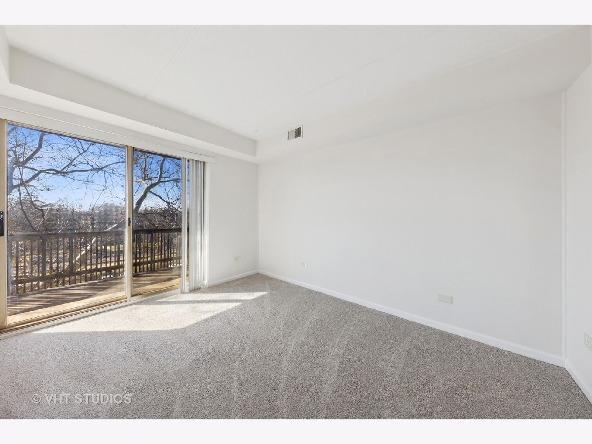Rarely available, tree-top penthouse, end unit with southern exposure. Freshly painted with new carpeting throughout. Squeaky clean. Newer Carrier furnace & HWH. Sliding glass doors in Master bedroom, 2nd bedroom & Living Room all open to oversized balcony with southwest, wooded views. Laundry in unit. In building garage plus generous outside parking. Easy access to major expressways.