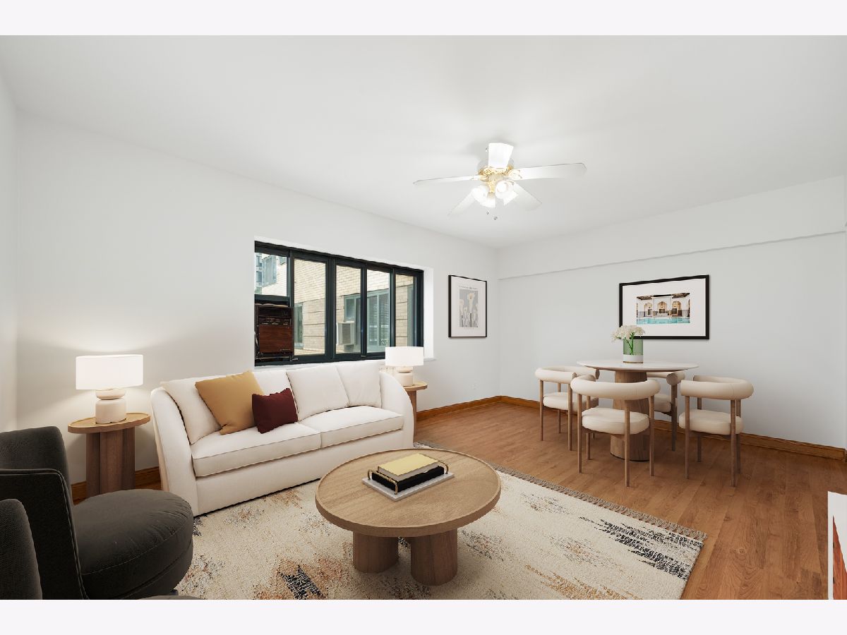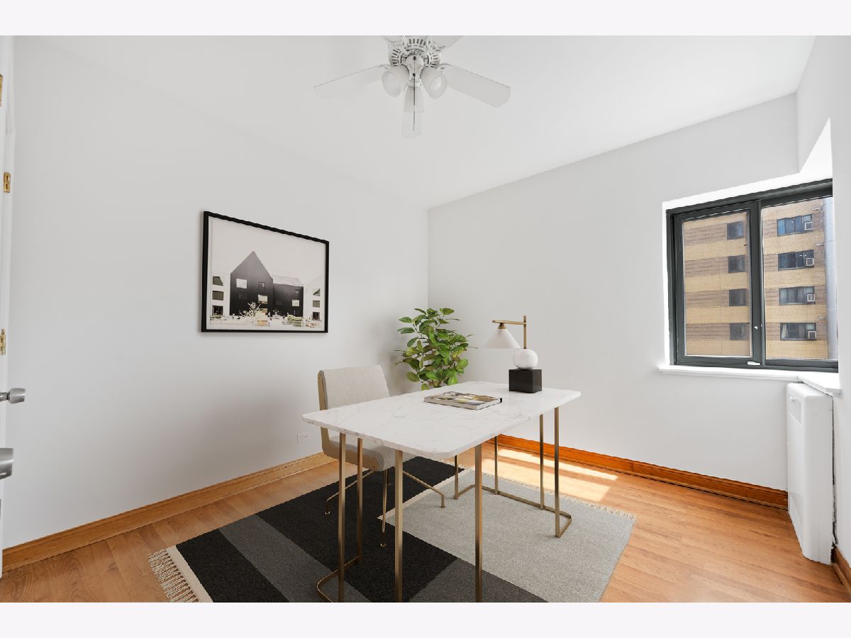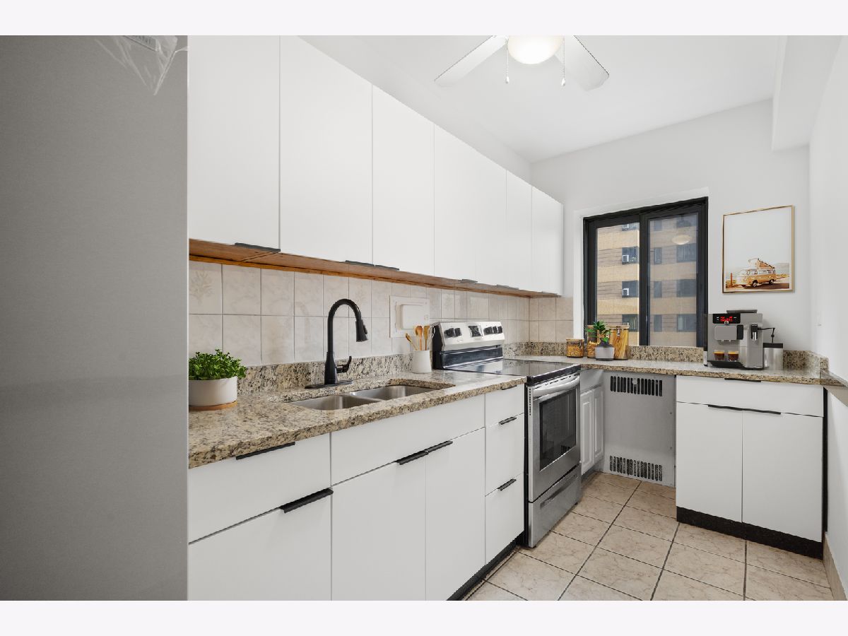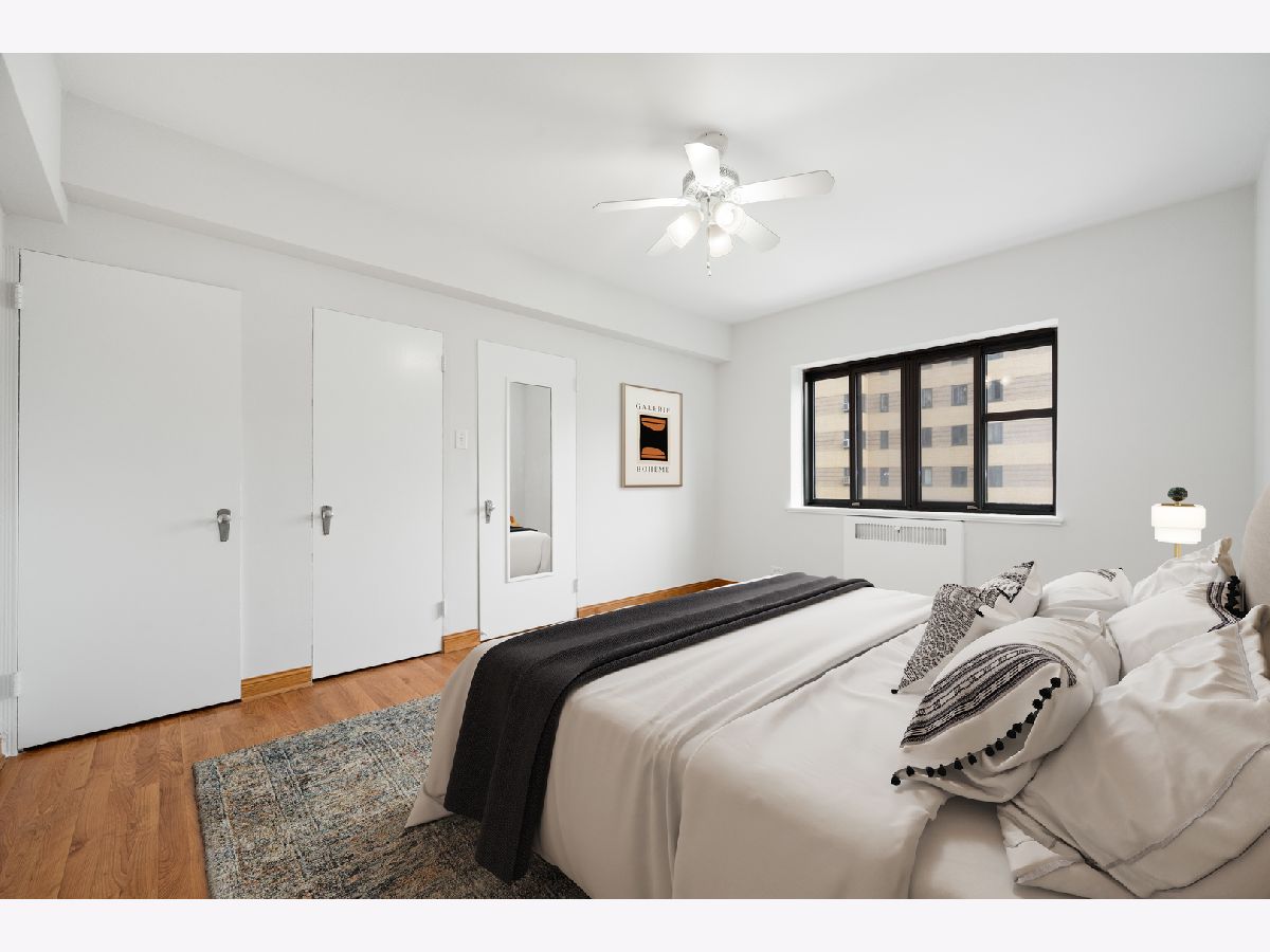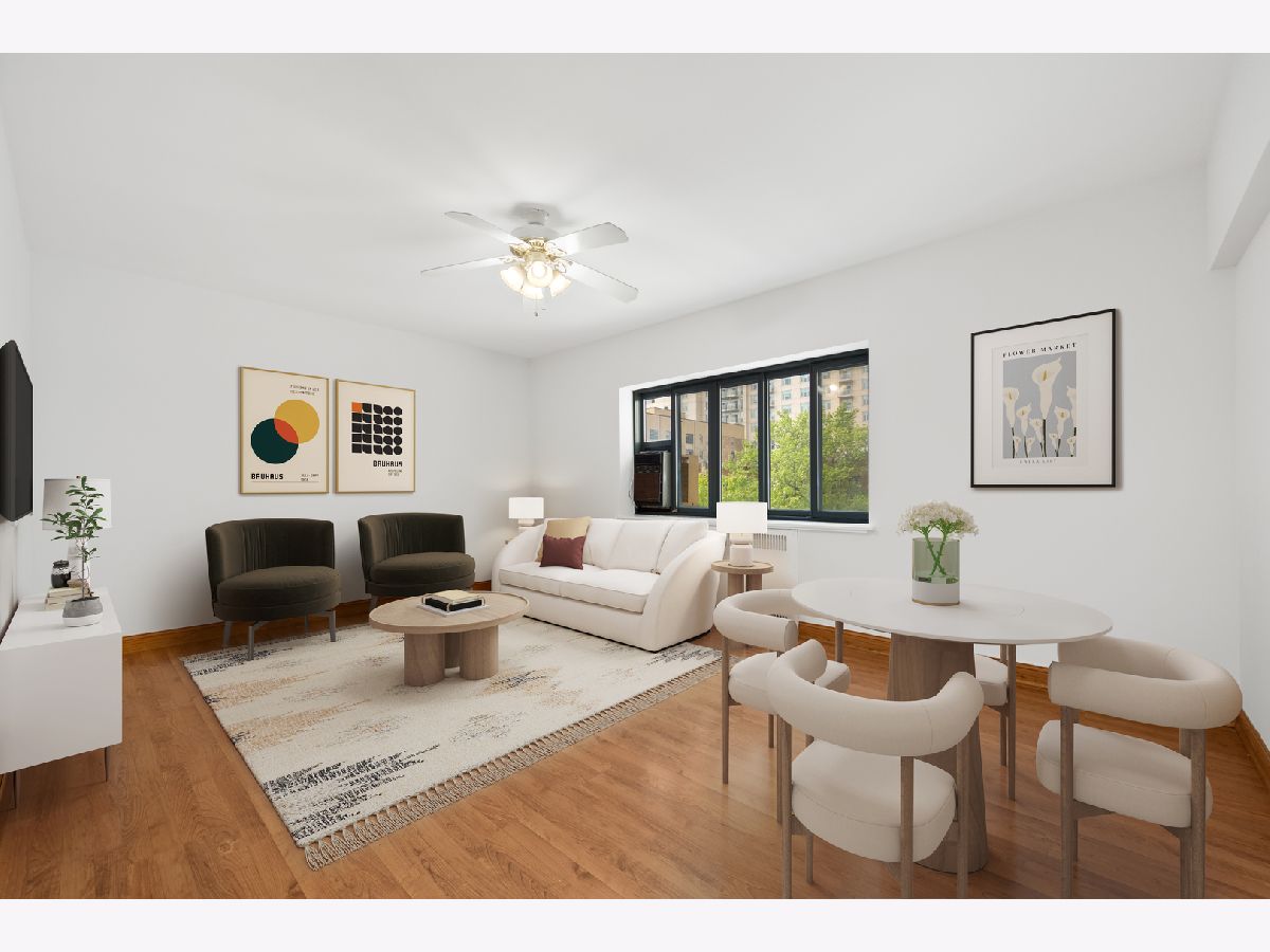 Recently updated 2 bed / 1 bath in 1939 historic Art Moderne building on the park! All rooms with good natural light, freshly painted throughout, new light fixtures. Recently updated kitchen with new cabinet doors, hinges, handles, faucet, fridge - with a view of the building's courtyard and fountain from your window! This secure elevator building includes an exercise room, gorgeous interior courtyard, on-site maintenance, management and evening and weekend security. Nearby Lake Michigan, restaurants, grocery stores, CTA (red line and buses) and more! Storage space included with unit. Move-in ready and ready to be your new home!