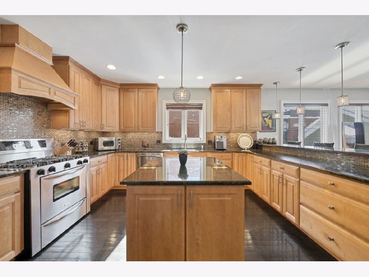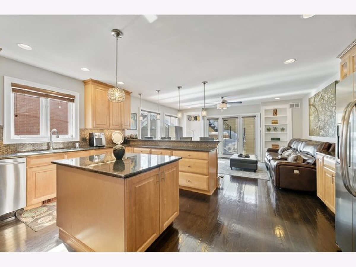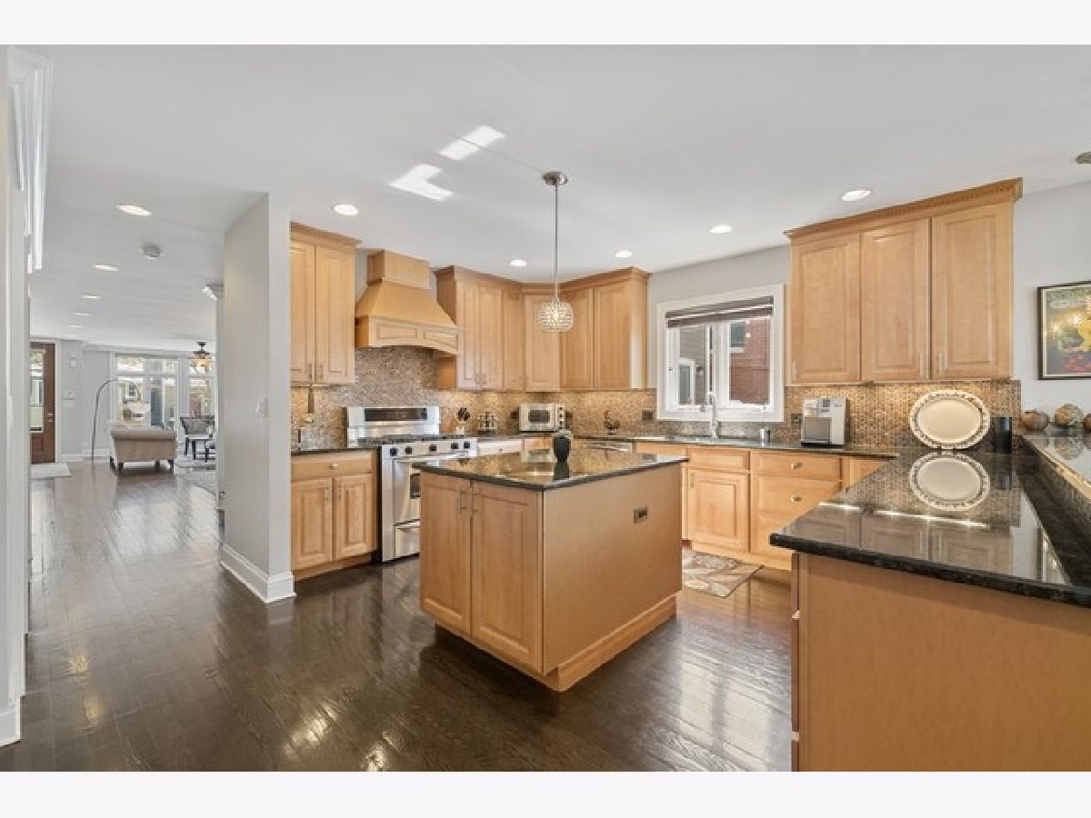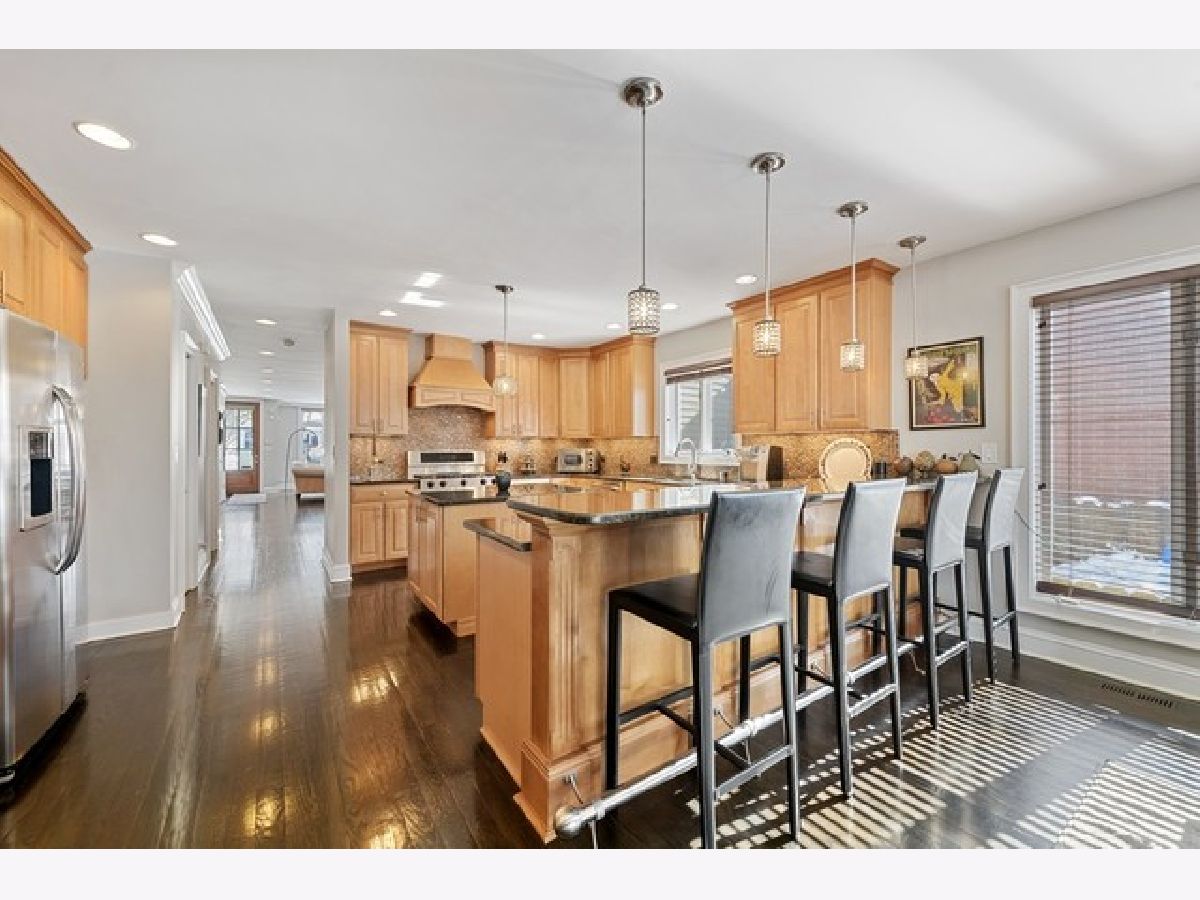 Exceptional single family home with limestone facade in Lincoln Square! This home has been extremely well cared for and pride of ownership is apparent. Excellent floorpan with nice features and beautiful crown molding. Espresso hardwood floors on first and second floors. Nearly floor to ceiling windows throughout most of the home. First Floor - living room with wood burning fireplace and stone mantle opens up to formal dining room. Large open kitchen with breakfast bar, newer stainless steel appliances, Zephyr vented hood above oven, glass tile backsplash, wine fridge and plenty of counter space and cabinetry. Kitchen opens to family room with built-ins. Sliding doors open to back deck and staircase leading to private garage rooftop deck! 2nd Floor - 3 bedrooms up all offering generous space. Primary bedroom includes a sitting area, private balcony and walk-in closet with organizers. Primary bath includes 2 separate vanities, separate shower and whirlpool tub. Conveniently located side by side laundry on this floor. Lower Level - Family room + custom built wet bar, brand new fridge and generous cabinet space. Two guest bedrooms and full bathroom on this level. Dual zoned HVAC system, ejector pump and sump pump with battery backup. 2 car garage, excellent storage and closet space! Close proximity to Winnemac Park, El, Metra, restaurants and all that Lincoln Square has to offer!