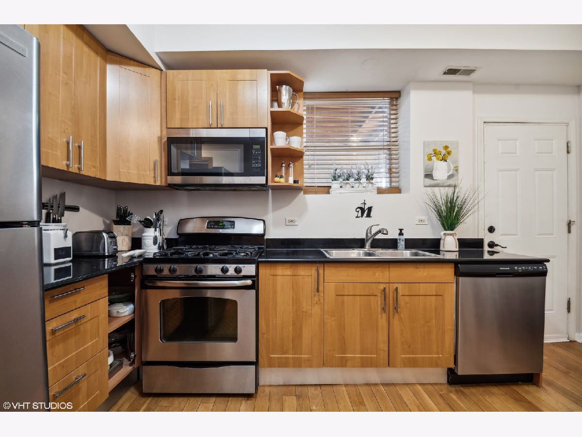 North Park's Carmen Place, where North Park and Albany Park come together! Bright and sunny 3BR/2BTH corner unit w/ great open floor plan, vaulted ceilings and newer hardwood floors. The entire building was rehabbed in 2010. Filled with character and charm, nestled on a quiet residential street. Updated kitchen with granite counters and SS appliances. Master Bedroom with ensuite bath. In unit full sized Washer/Dryer. Back deck with room for table and grill, extra storage. Roof and tuckpointing project completed in 2020, Walk to River Park, schools, restaurants and transportation (Brown Line). This home has so much to offer! Owners currently rent nearby parking for $100 per month.