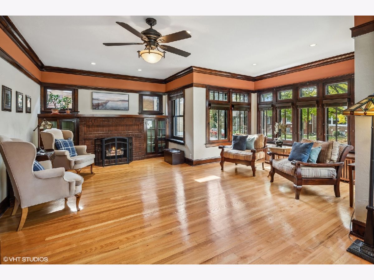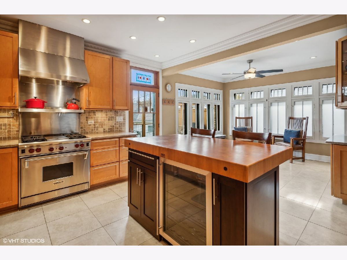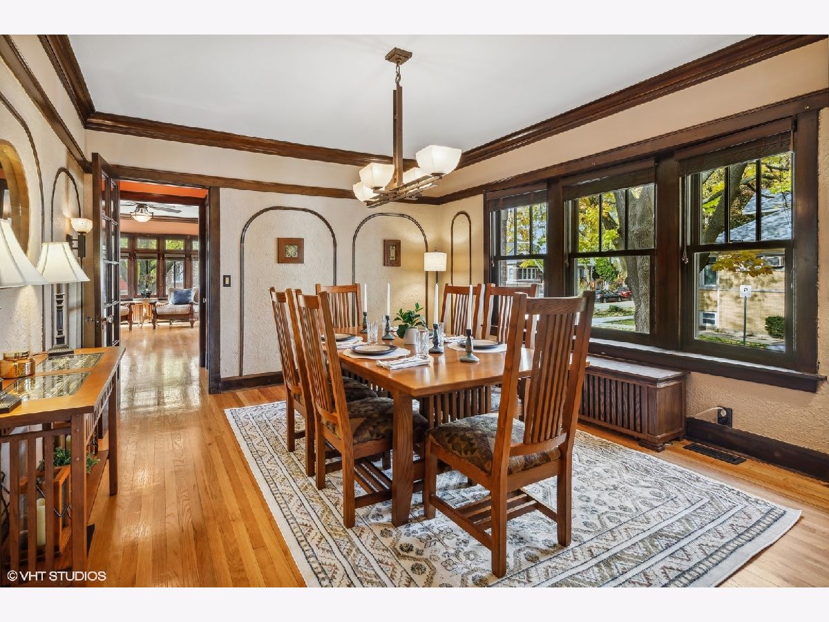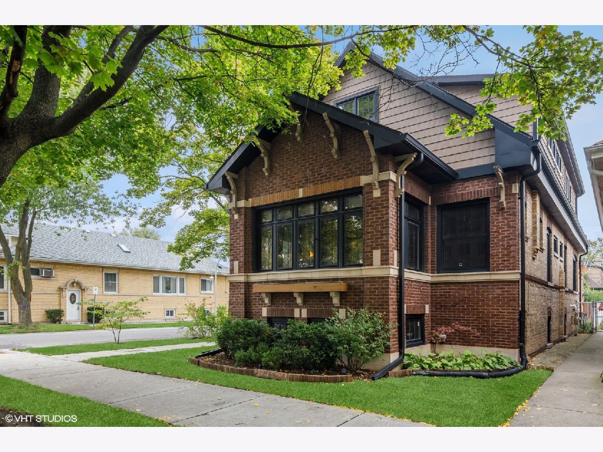 Nestled on a lovely corner lot, this stunning jumbo bungalow offers over 4,000 sq ft of living space, seamlessly combining classic charm with modern luxury, making it a truly unique find. Every inch of this spacious home has been meticulously updated and features 5 generously-sized bedrooms, 4 well-appointed bathrooms, with three full floors of finished living space. Upon entering the side entrance and foyer, you are welcomed into an impressive living room with beautiful original windows, built-ins and a decorative fireplace. Adjacent is the formal dining room and an oversized room which makes for a cozy family room, guest room, or office. The kitchen is a chef's dream, equipped with top-of-the-line Wolf stove and professional exhaust hood, Fisher and Paykel drawer-type dishwasher, GE Monogram refrigerator and an impressive Boos block center island. The large Elfa designed walk-in pantry and a beverage fridge adds a touch of luxury. Throughout the home, the original woodwork and hardwood floors exude character and warmth, creating an inviting ambiance. Upstairs you'll find three bedrooms, including the master suite, a true sanctuary with dual walk-in closets, Elfa storage, and a spacious en-suite bathroom with double vanity and steam shower, filled with natural light thanks to skylights. Enjoy the flexibility of laundry on the second level of the home, as well as a second hook-up in the basement. The lower level is a versatile space, complete with large multi-function space, full bathroom, and a wet bar with a full size fridge. A fifth bedroom, which is currently used as an office, includes built-ins and desk and provides a quiet and private workspace. Newer back deck allows you to grill, relax and entertain in the warmer months. A highlight of this property is the rare and substantial brick 3-car garage, offering ample space for vehicles, storage, and/or a workshop. Other features includes dual-zoned gas forced air, tankless water heater, new sidewalks, and oversized gutters. All of this on a beautiful tree-lined street in desirable North Mayfair, just two block to Gompers Park with tennis courts, pool, and lagoons, and 2 blocks to 1+ rated Palmer Elementary School. Plenty of access to over 30 miles of trails along the North Branch Bike Trail and LaBagh Woods Forest Preserve. Convenient to shopping and grocery including Target, Starbucks, Jewel, Whole Foods and more. Minutes to Edens/Kennedy Expressway. This property seamlessly blends modern amenities with classic architectural features. Don't miss your chance to call this extraordinary property your home.