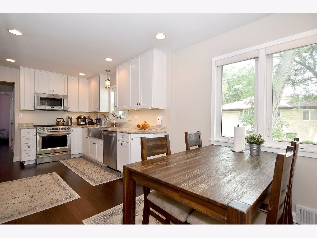 Move in ready clean, well maintained and tastefully updated all brick step ranch in desirable Big Oaks corner location with low taxes and a short walk to the ever popular Garvey Grade School. Approximately 1300sf of usable bright space on the main level that has been updated for the 21st century featuring living room with recessed lighting and large replacement encasement windows and begins the newer wood plank flooring. Total gut rehab of the full bath and kitchen including new fixtures lighting and doors; Newer storage system and corian top vanity; Large kitchen features 42" white cabinets, recessed lighting, large encasement replacement windows stainless steel appliances,quartz counter tops and the same matching newer wood plank flooring. Full finished paneled basement with full bath, oak bar and access to the backyard. Good access to all forms of transportation including O'hare Airport, shopping and schools. Great Opportunity! Don't Miss Out!