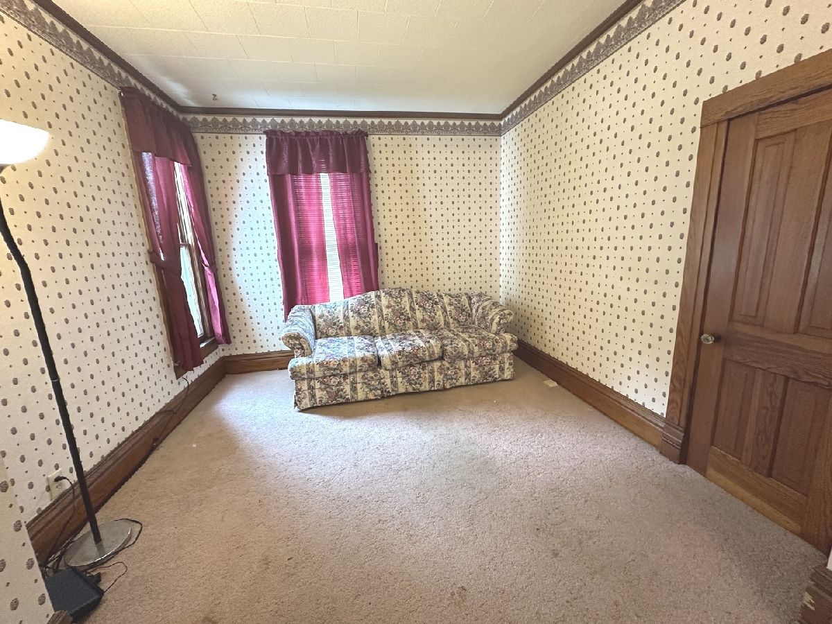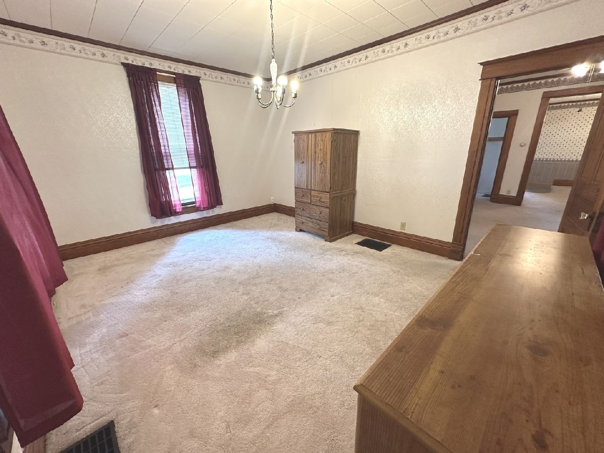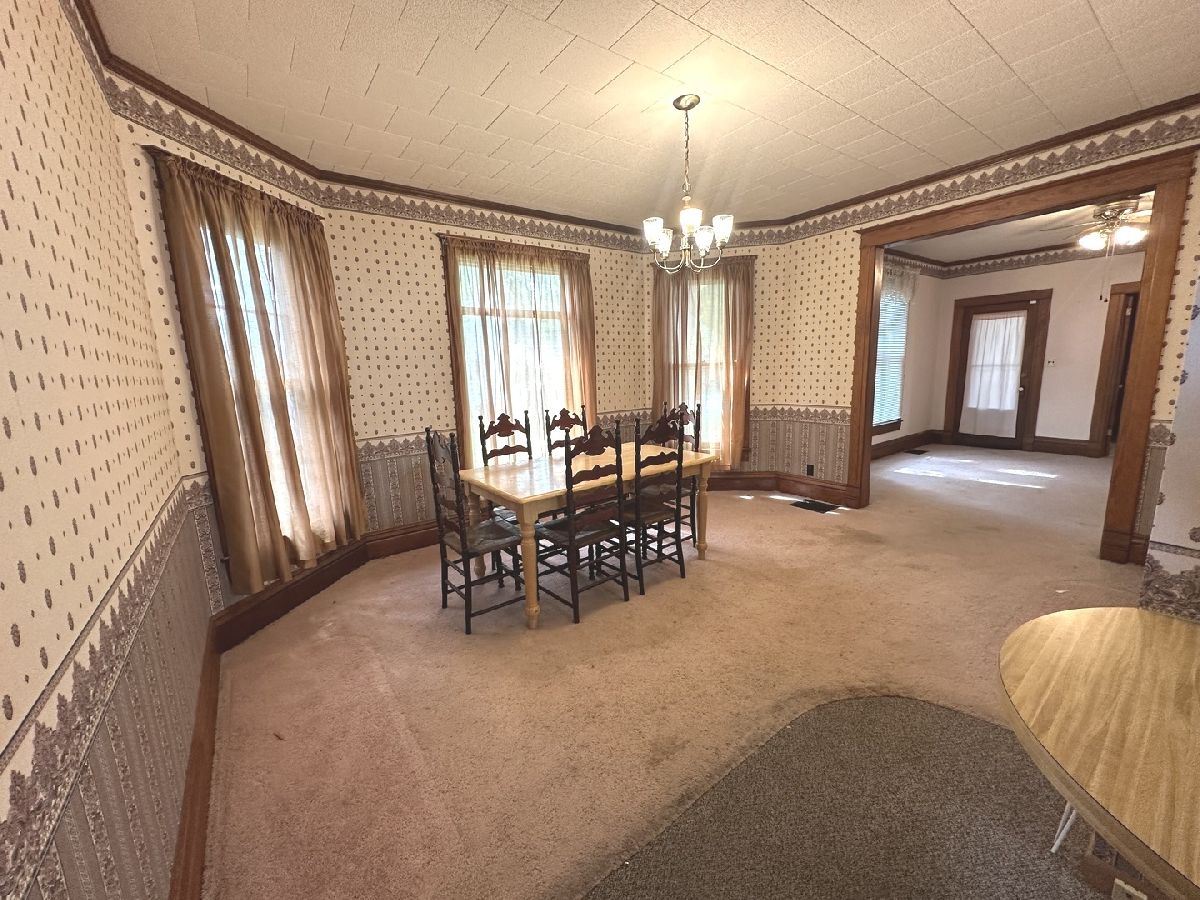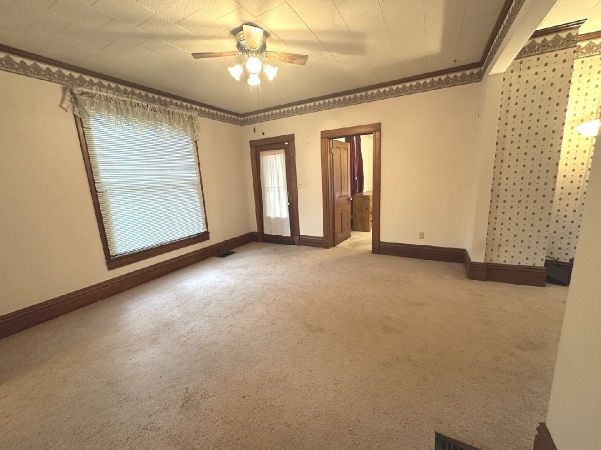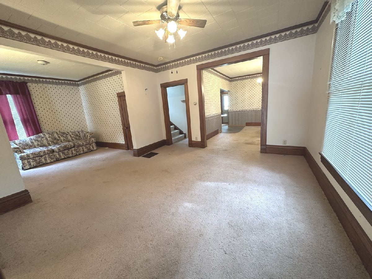 Great opportunity to make this spacious home your own in a quiet small-town setting. Featuring original wood finishes, generous room sizes, and loads of potential throughout. The main floor offers a large living area, first-floor laundry, a bedroom, and a convenient half bath. The kitchen includes a functional layout with a small island extension. Upstairs, you'll find three nicely sized bedrooms and a full bathroom. Many rooms showcase vintage wallpaper and original hardwood trim. Some floors are currently carpeted with hardwood underneath and new ceramic tile in kitchen. A shared solid concrete driveway leads to an oversized two-car garage great for parking, storage, or workshop potential. Key Features: * 4 Bedrooms / 1.5 Bathrooms * First-floor bedroom and laundry * Oversized 2-car garage * Roof (2008 Thirty Year Shingles) * HVAC (2018) * Hot Water Heater (2002) This property is being sold AS IS. With a little TLC, this home offers great potential for equity and customization. Information deemed reliable but not guaranteed.
