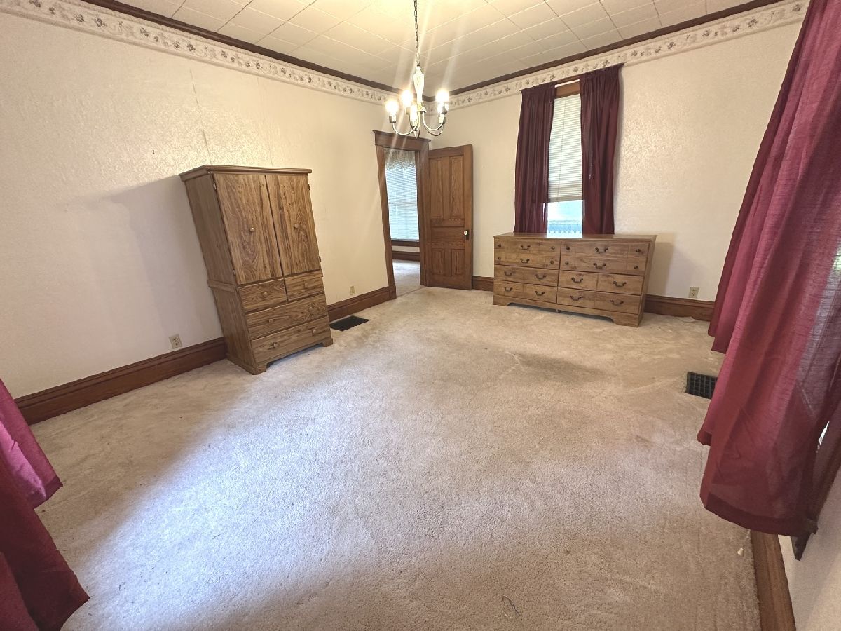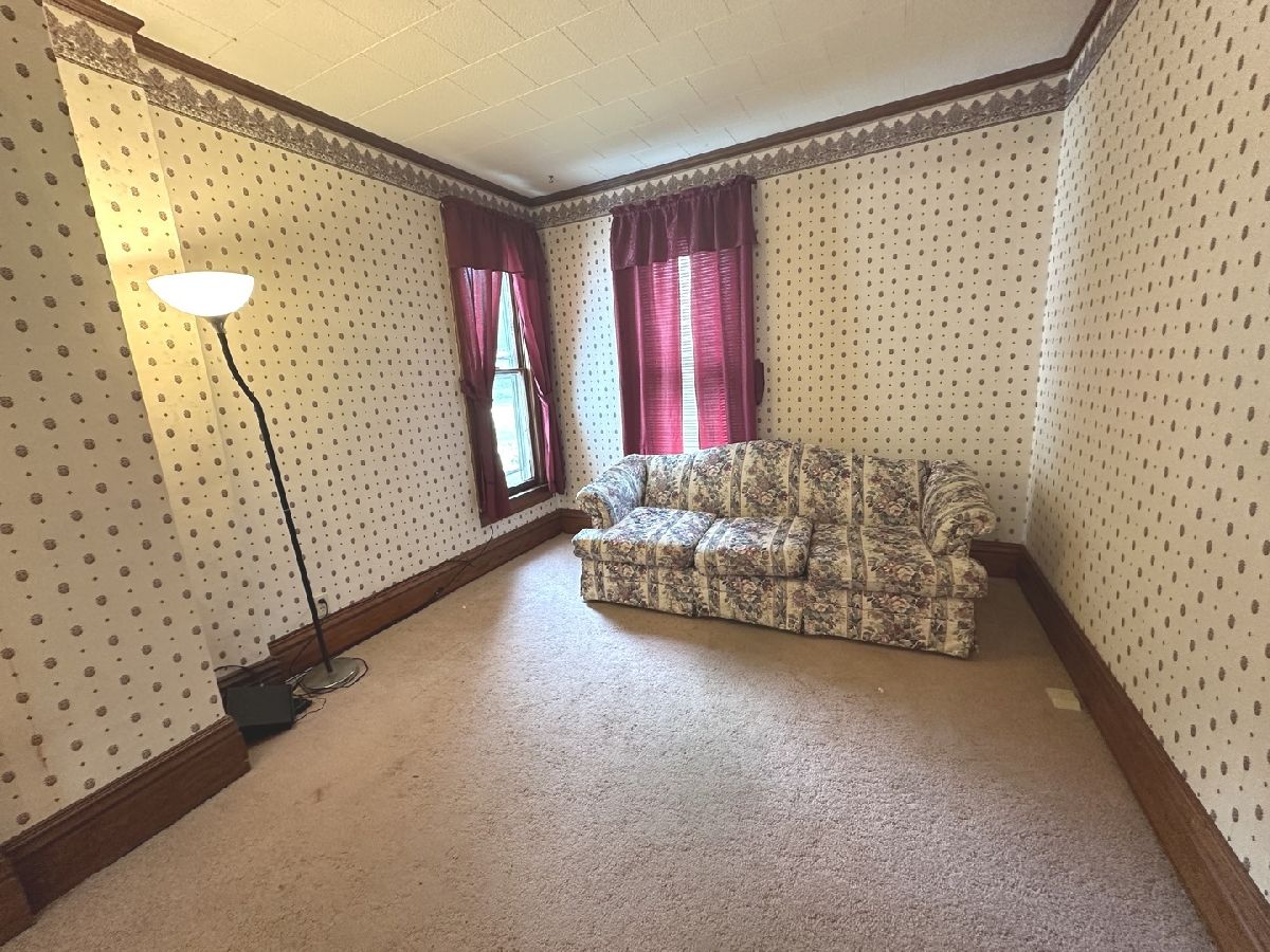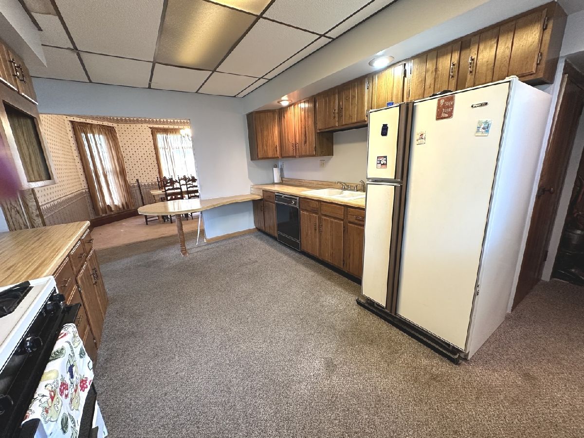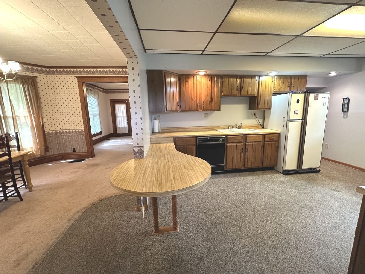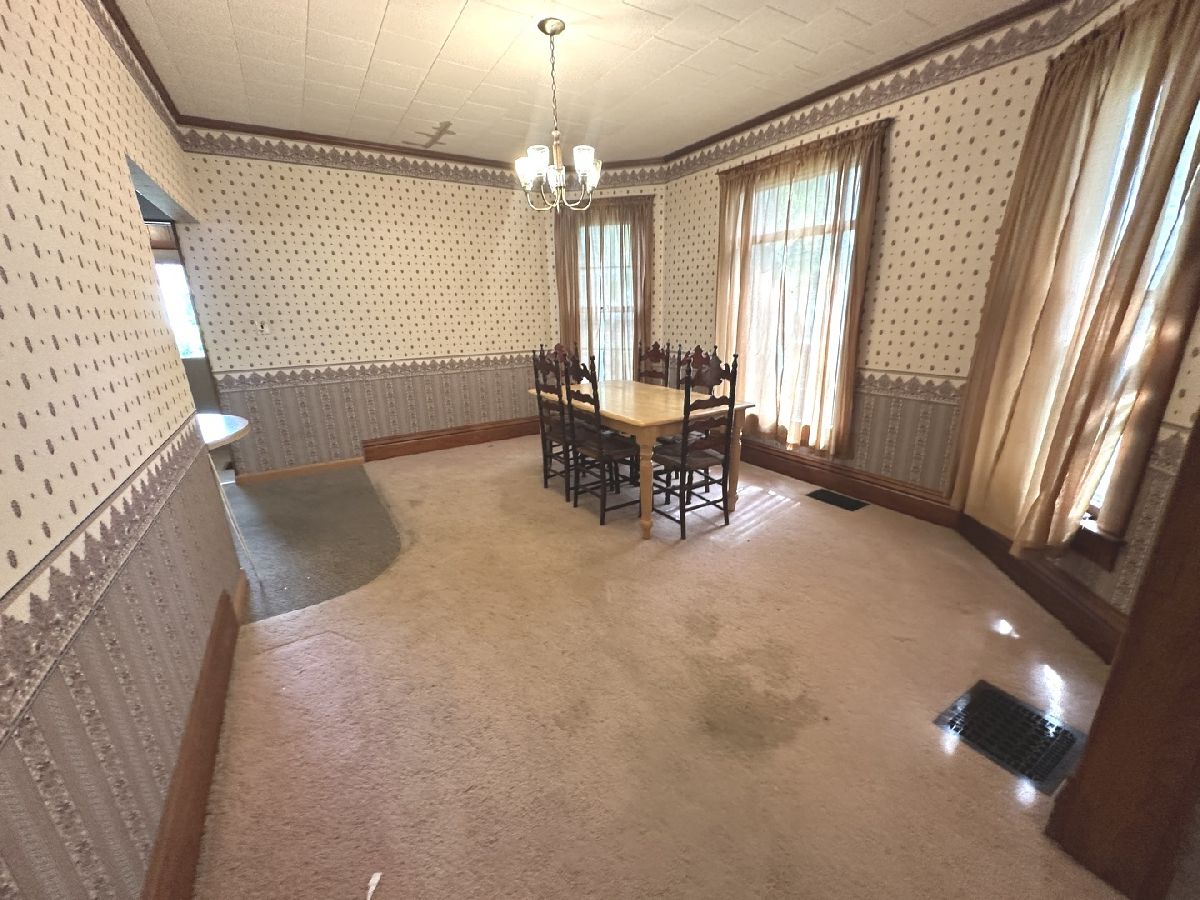 Great opportunity to make this spacious home your own in a quiet small-town setting. Featuring original wood finishes, generous room sizes, and loads of potential throughout. The main floor offers a large living area, first-floor laundry, a bedroom, and a convenient half bath. The kitchen includes a functional layout with a small island extension. Upstairs, you'll find three nicely sized bedrooms and a full bathroom. Many rooms showcase vintage wallpaper and original hardwood trim. Some floors are currently carpeted with hardwood underneath and new ceramic tile in kitchen. A shared solid concrete driveway leads to an oversized two-car garage great for parking, storage, or workshop potential. Key Features: * 4 Bedrooms / 1.5 Bathrooms * First-floor bedroom and laundry * Oversized 2-car garage * Roof (2008 Thirty Year Shingles) * HVAC (2018) * Hot Water Heater (2002) This property is being sold AS IS. With a little TLC, this home offers great potential for equity and customization. Information deemed reliable but not guaranteed.
