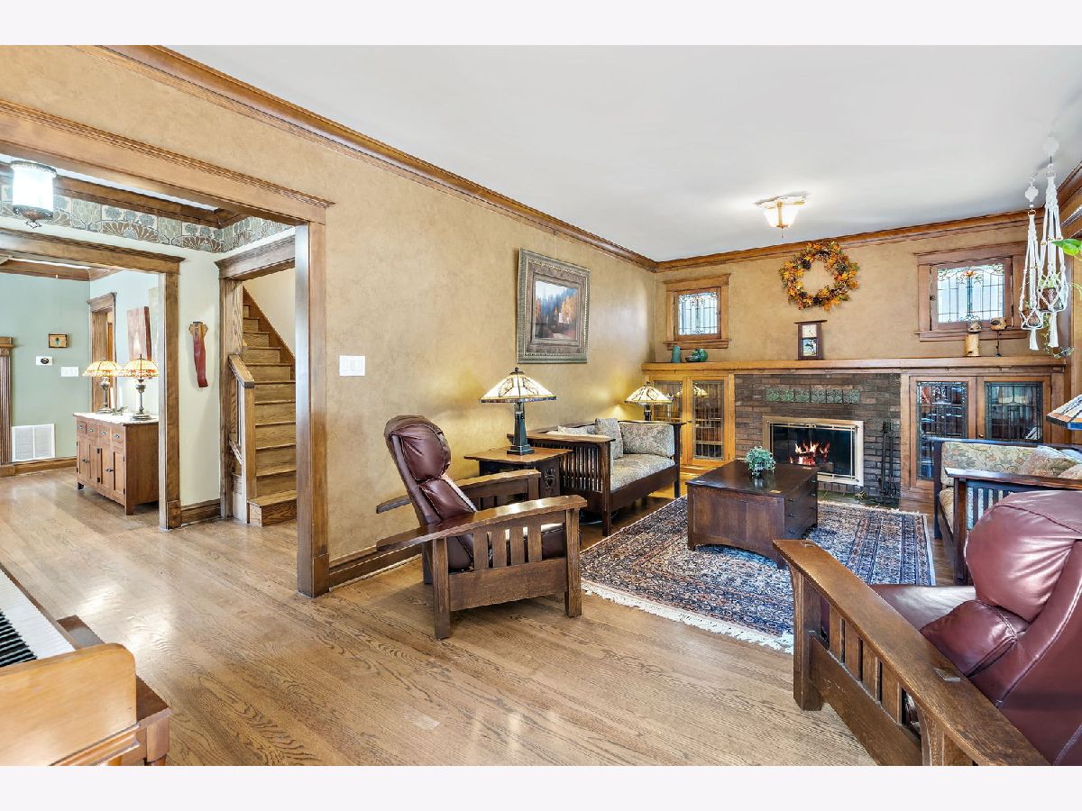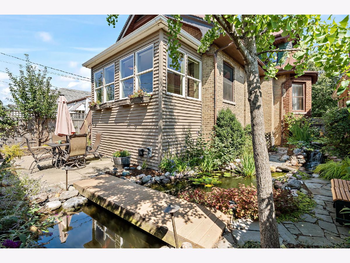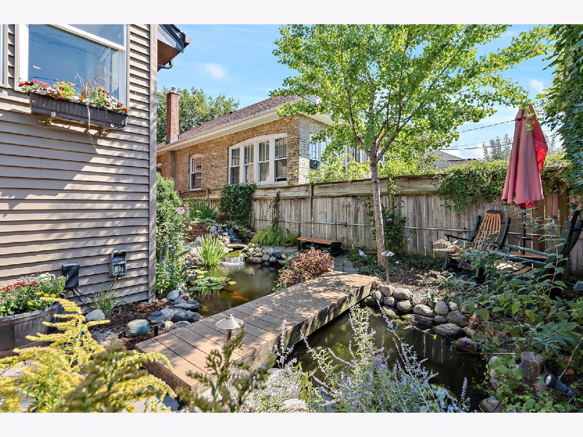Some places are so beautifully built that over 100 years later, the design, materials, and decor are not only worth preserving, they inspire celebration. This 1916 arts-and-crafts style bungalow is just such a remarkable home. Luckily, each of only three owners in its storied history has done well to painstakingly maintain its most important elements, from stamped leather in the foyer, to original millwork and coffered ceilings, imported wallpaper, and distinctive tile and hardware. True to the movement's emphasis on simple forms and authentic materials, additions and updates have been made to synch seamlessly with their original counterparts, such that the integrity of the home's brilliant concept remains. In addition to its architectural significance, the home has local historical relevance. Built on the original Budlong Pickle Farm's greenhouse grounds, the property is comprised of a broad 40' by 125' lot, all-brick 2-story home, 3100+sf of finished living space, 2C garage with Level 2 EV charger, and extraordinary front, side, and rear gardens, replete with mature trees, perennial floral and green gardens, raised beds, bocce court, concrete patio, and a meticulous Koi pond with waterfall, slate stones, bridge, and blooming plants, tucked into a fenced yard. The main floor features sunroom with wraparound windows and east exposures, formal living room with wood-burning fireplace and Motawi tile accents, stained glass windows, and built-ins, elegant dining room with coffered ceiling and original built-in hutch with leaded glass fronts, two generous bedrooms, full bath with claw-foot porcelain tub, high tank toilet, and imported William Morris wallpaper. The chef's kitchen (2006) with stainless Wolf dual fuel range, Sub-Zero refrigerator, and Kitchen-Aid appliances, copper sink with disposal, and custom cabinetry, has multiple workspaces, hood vent, built-in shelving, granite counters, and task lighting.The second story addition (2006) includes two bedrooms with a shared bath, multiple walk-in closets, and in-keeping decor. The primary bedroom suite has cathedral ceiling with raised windows and a dual-sided fireplace, which compliments an impressive en suite bath, featuring double-bowl sinks, extra storage, and raised soaking tub. Downstairs the basement has long been used as maker space, so it's wide open and ready for your design ideas to accompany recreation, utility, and laundry. Zoned HVAC, Dual Tankless Water Heaters, Separate Water Pump, and 200AMP Electrical. For the discerning buyer, a once-in-a-lifetime opportunity, not to be missed.