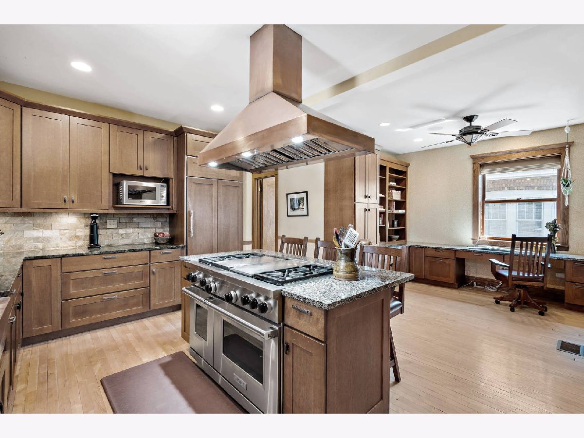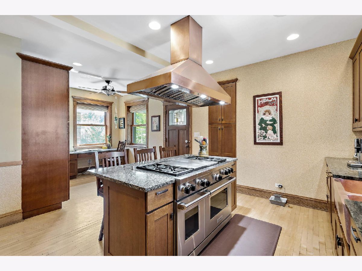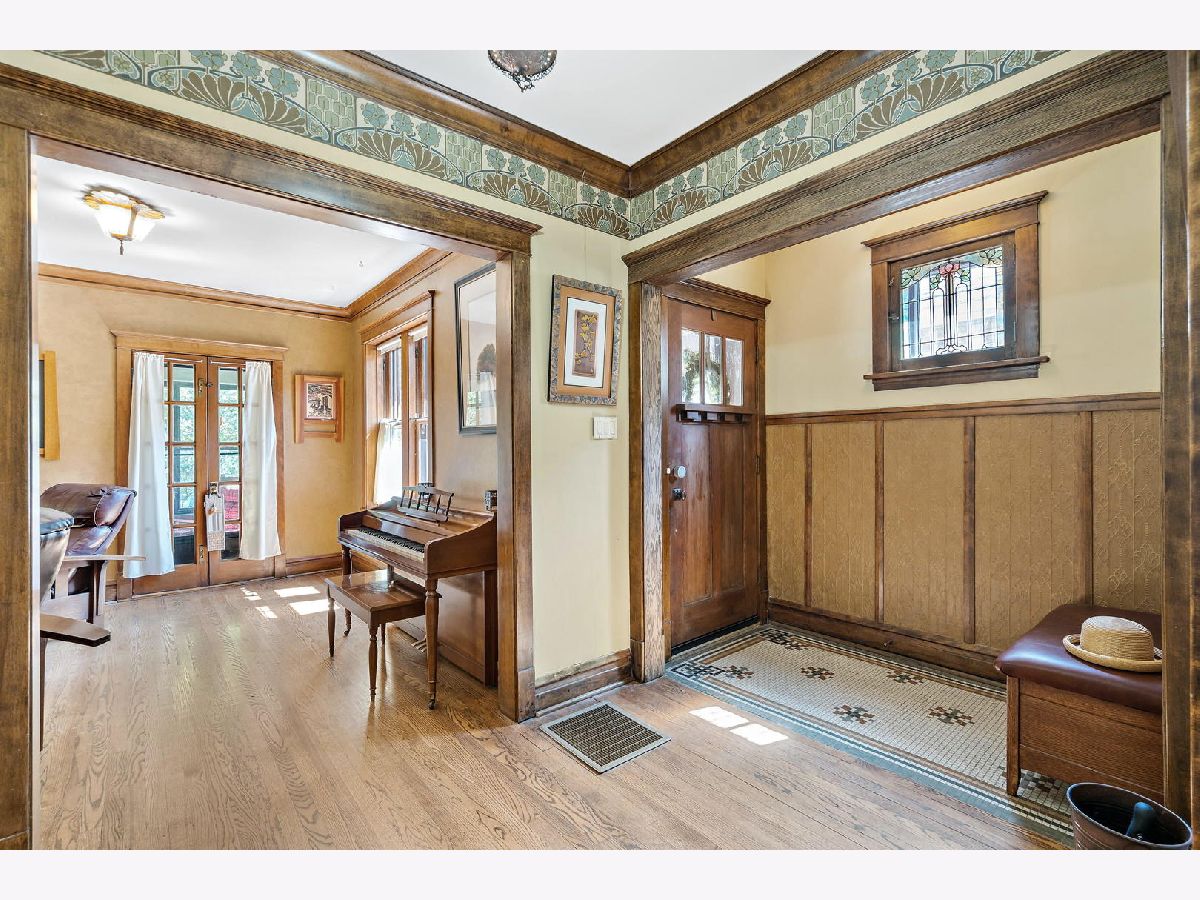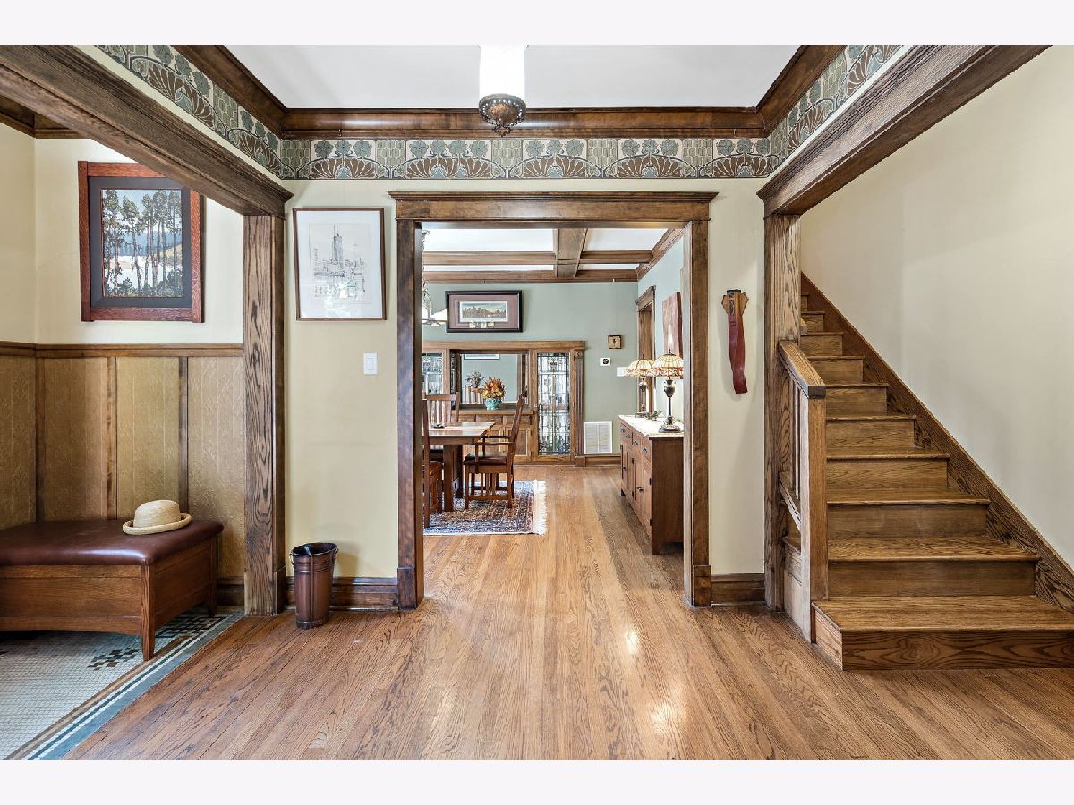 Some places are so beautifully built that over 100 years later, the design, materials, and decor are not only worth preserving, they inspire celebration. This 1916 arts-and-crafts style bungalow is just such a remarkable home. Luckily, each of only three owners in its storied history has done well to painstakingly maintain its most important elements, from stamped leather in the foyer, to original millwork and coffered ceilings, imported wallpaper, and distinctive tile and hardware. True to the movement's emphasis on simple forms and authentic materials, additions and updates have been made to synch seamlessly with their original counterparts, such that the integrity of the home's brilliant concept remains. In addition to its architectural significance, the home has local historical relevance. Built on the original Budlong Pickle Farm's greenhouse grounds, the property is comprised of a broad 40' by 125' lot, all-brick 2-story home, 3100+sf of finished living space, 2C garage with Level 2 EV charger, and extraordinary front, side, and rear gardens, replete with mature trees, perennial floral and green gardens, raised beds, bocce court, concrete patio, and a meticulous Koi pond with waterfall, slate stones, bridge, and blooming plants, tucked into a fenced yard. The main floor features sunroom with wraparound windows and east exposures, formal living room with wood-burning fireplace and Motawi tile accents, stained glass windows, and built-ins, elegant dining room with coffered ceiling and original built-in hutch with leaded glass fronts, two generous bedrooms, full bath with claw-foot porcelain tub, high tank toilet, and imported William Morris wallpaper. The chef's kitchen (2006) with stainless Wolf dual fuel range, Sub-Zero refrigerator, and Kitchen-Aid appliances, copper sink with disposal, and custom cabinetry, has multiple workspaces, hood vent, built-in shelving, granite counters, and task lighting.The second story addition (2006) includes two bedrooms with a shared bath, multiple walk-in closets, and in-keeping decor. The primary bedroom suite has cathedral ceiling with raised windows and a dual-sided fireplace, which compliments an impressive en suite bath, featuring double-bowl sinks, extra storage, and raised soaking tub. Downstairs the basement has long been used as maker space, so it's wide open and ready for your design ideas to accompany recreation, utility, and laundry. Zoned HVAC, Dual Tankless Water Heaters, Separate Water Pump, and 200AMP Electrical. For the discerning buyer, a once-in-a-lifetime opportunity, not to be missed.