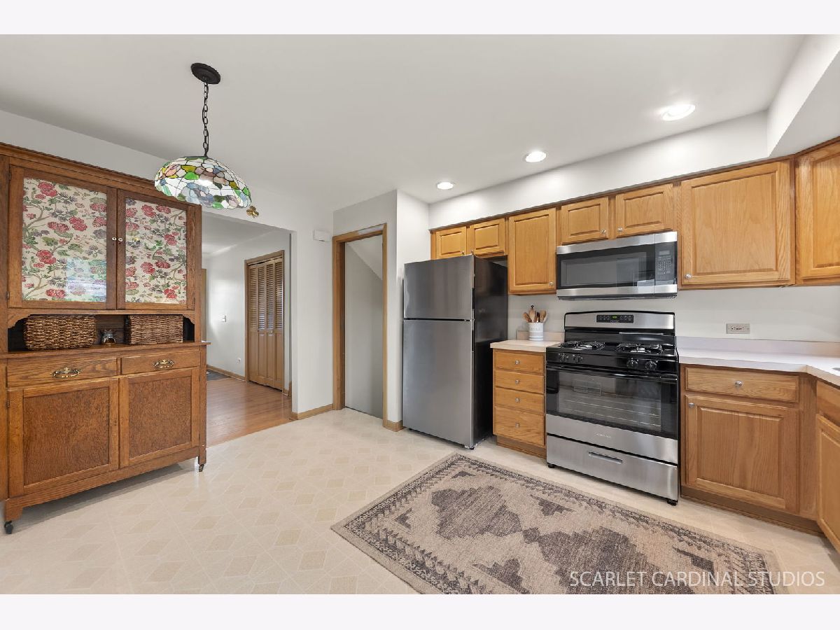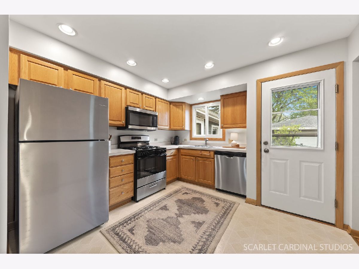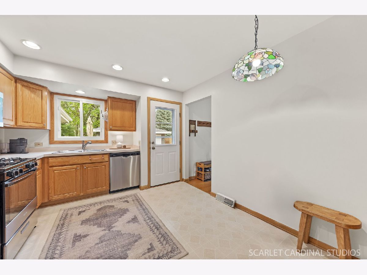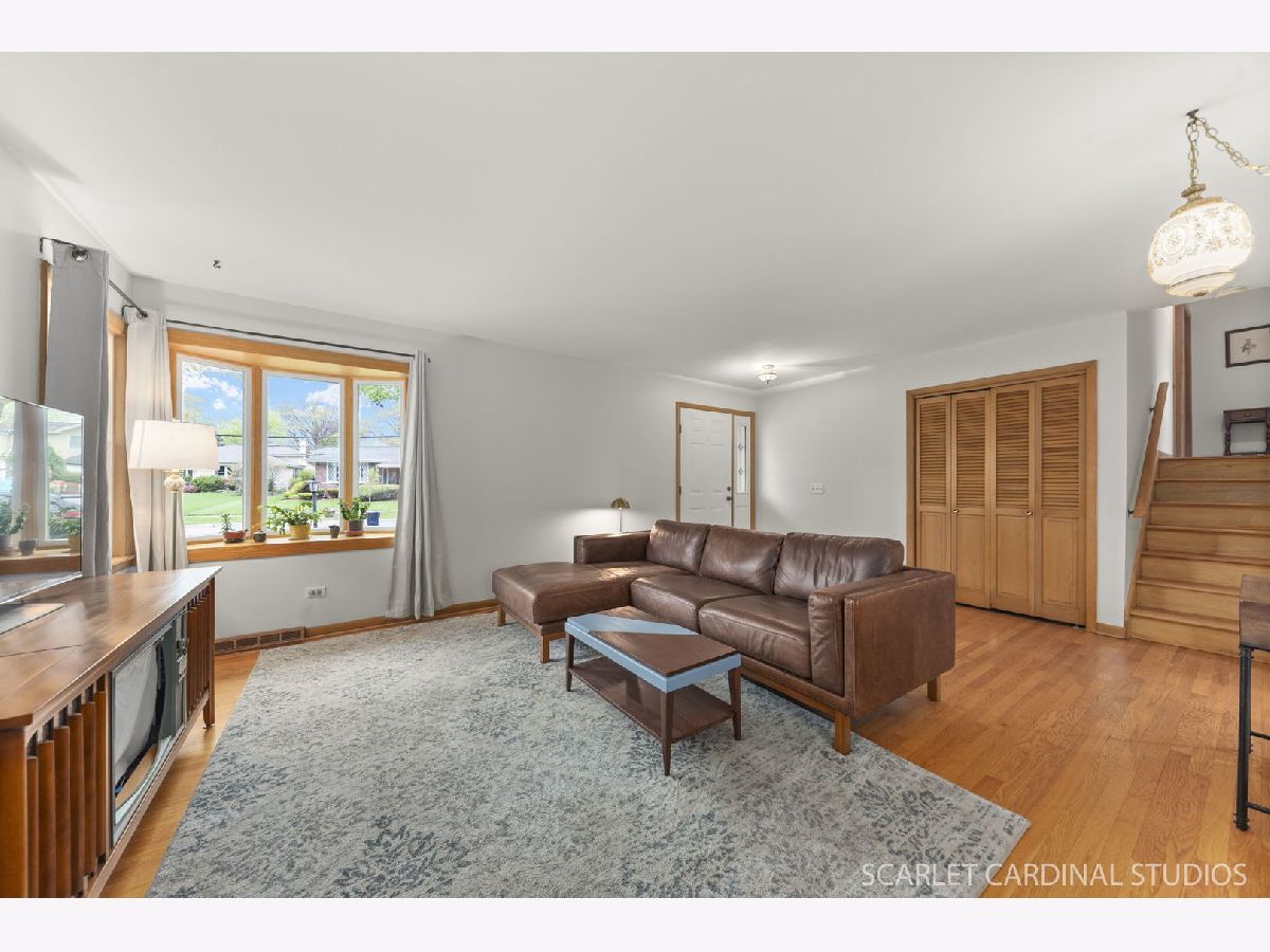 Lovely 3-bedroom, 2-bath split level in a beautiful cul-de-sac! You will love the spacious and open lay out! The sunny living room opens to the charming dining room. Bright kitchen offers all new stainless appliances. The second floor features three roomy bedrooms. Hardwood on the main and upper floor. Large main bath with double sink. Fabulous lower level family room, with new LVP flooring and anchored by the brick front fireplace. Full bath with walk-in shower. Entire home newly painted. Three season room currently being used as a home gym. 2025:Roof on house and garage. Improvements in last 5 Years: New LP Siding, Gutters, Windows in 3 Season Room, Brick paver patio, SS Appliance, 2 Comodes, Washer & Dryer, Garage Door, Drain tile & crawl space encapsulation, Attic Insulation and Attic Vents. Fabulous location, short walk to the Illinois Prairie Path and the Great Western Trail....don't miss it!