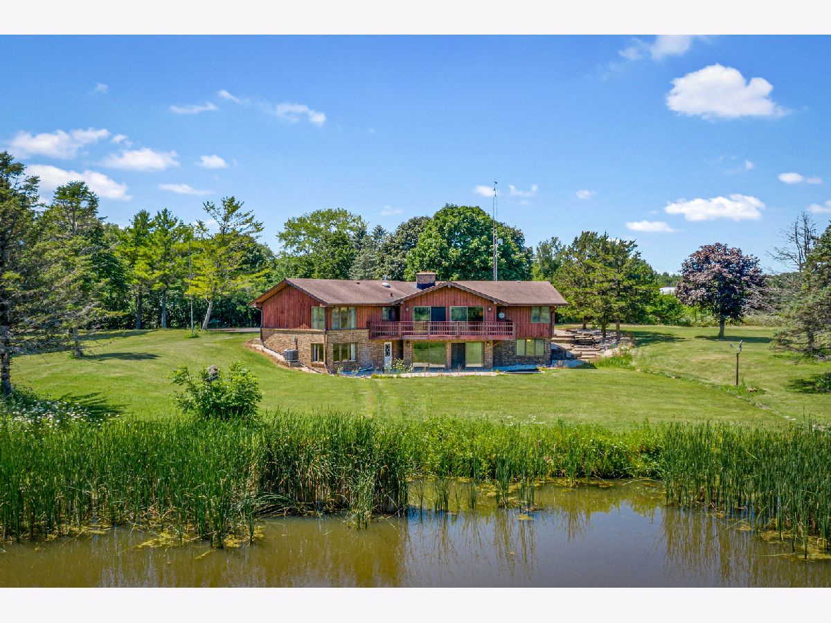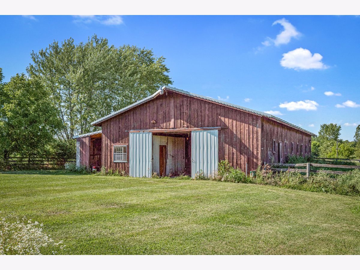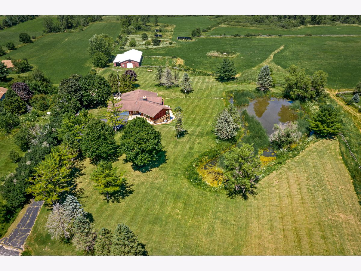 A chance to have your own private sanctuary that is just a short drive to the suburbs or city but feels worlds away. Conveniently located off I-90 and only 30 minutes from Schaumburg, 40 minutes from O'Hare and just over an hour to Chicago, this 34-acre property has endless possibilities. Use it as a country retreat and enjoy all that the grounds have to offer. The barn has water and 200-amp electrical service and is over 4,500 square feet. The large custom-built home measures 4,800 square feet including 2,463 square feet on the main floor with a modern floor plan and well thought out design plus an "in-law" suite in the lower level. The main floor features vaulted ceilings, large windows overlooking the vast grounds, wraparound deck, sizeable rooms that flow seamlessly, and spacious bedrooms that can easily accommodate king sized beds. Plus there are two brick fireplaces, a wood burning stove, newer granite and appliances in the kitchen, main floor laundry room, hardwood floors and many custom details throughout. The open and bright lower level has a one-bedroom "in-law" apartment with its own kitchen, dining and living rooms and large windows with a private walkout. The lower level is an estimated 2,377 square feet of additional living for extended family or rental income. There is 200-amp electrical service in the house, forced air furnace and AC, cooper piping and a water purification system. It also has an oversized 2.5 car garage that is extra deep for more storage. This incredible home offers so many possibilities. Come take a look at this is one of kind property and incredible value.
