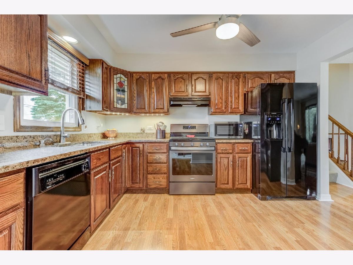 Don't miss this beautifully landscaped split-level home with fenced yard, situated in a wonderful Lombard neighborhood. The main level features a light and bright living room that opens to a spacious dining area with patio doors leading to the deck and swimming pool! The kitchen offers solid wood cabinetry, granite countertops, newer stove, SS faucet and ceiling fan plus there is room for a table too. The second level has 3 bedrooms all with generously sized closet space. The spacious upstairs bath features double sinks and access to primary bedroom. The main level features luxury vinyl flooring throughout. The lower level 18 x 19 family room boasts a gas log fireplace and full remodeled bathroom (2019) and direct entrance to a nice sized attached 2 car garage. Nice windows throughout the home. New roof June 2022, newer hot water tank, some rear fencing and garage door opener. This home has been lovingly cared for and is being sold "As Is".