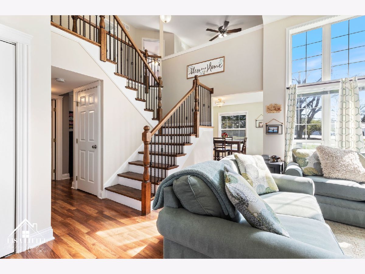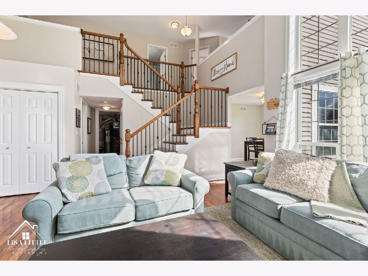 On your marks, get set...GO! From the soaring ceilings to the large windows to the custom staircase, this updated duplex is light, bright and sure to win the gold! Once you step inside, kick off your shoes, and fall in love with all there is to offer. The main level includes: neutral paint colors, wood laminate flooring, full-sized laundry room, powder bath, and a 2-story living room with cozy wood-burning fireplace. The open kitchen has plenty of counter space, a large pantry closet, and options for eating in, hosting gatherings in the formal dining room, or BBQing outside with patio doors out to the large concrete patio. After a long day of running the rat race, escape to the large primary bedroom with walk-in closet and spacious en-suite bathroom ~ double vanity and stand-up shower. Loft area can be used for anything you need! Treadmill space, home office, 2nd living area or, easily wall it off to make a 3rd bedroom. All less than 1 mile to charming downtown Oswego and minutes to everything along Route 34. You'll have easy access to a variety of shops, restaurants, and scenic trails, and Farmer's Market, ensuring there's always something exciting to explore. Prairie Point Park is just across the street - running/bike trails, village festivals, splash pad, and you'll have a front row seat to the Fourth of July fireworks. Association dues cover roof replacement, when needed. NEW: Furnace/AC (2017), Dishwasher (2019), Microwave and Stove (2020), Water Heater (2023), Upstairs Windows (2023). Lace up your favorite kicks and sprint towards homeownership! This one truly won't last.