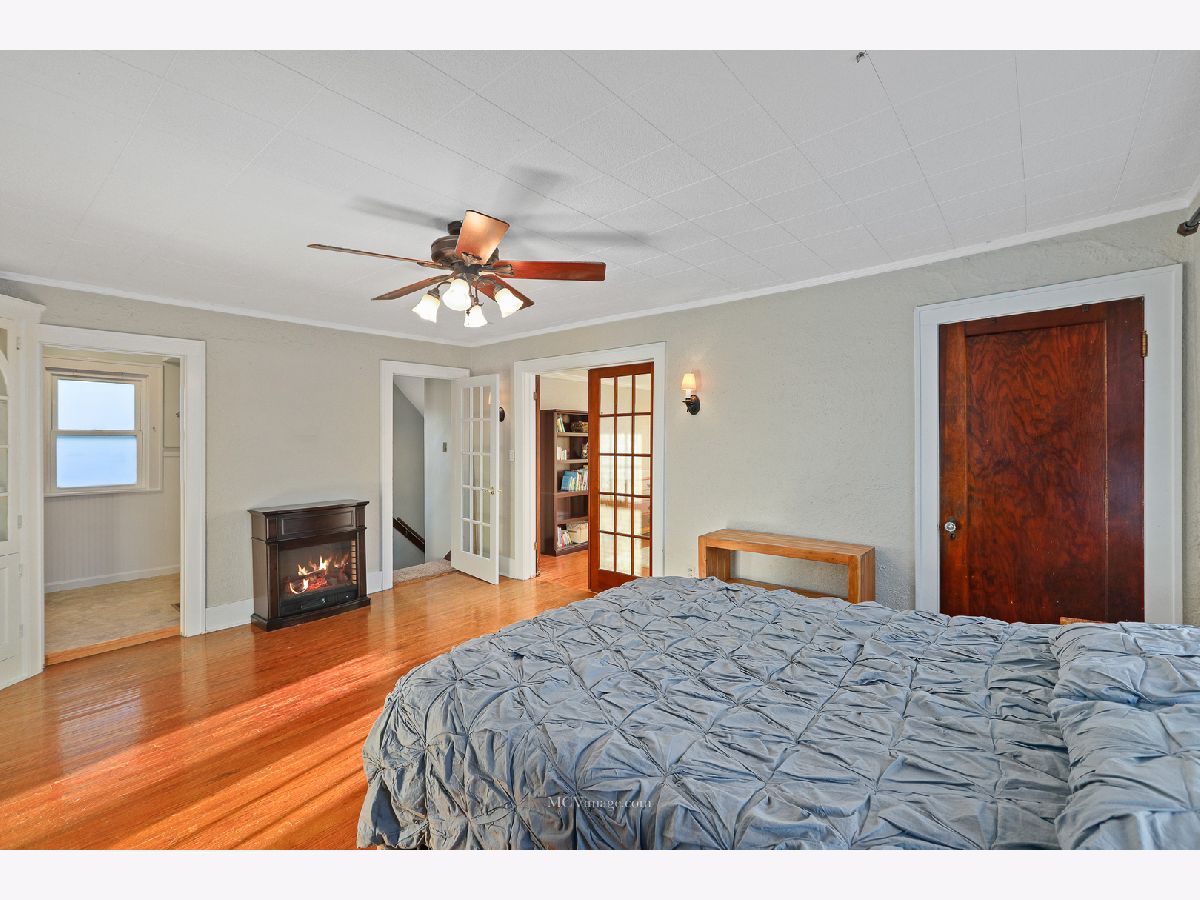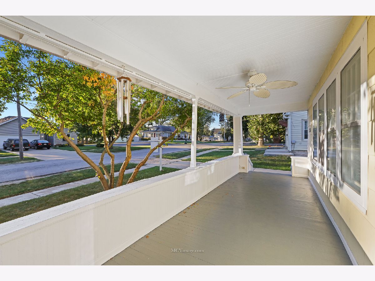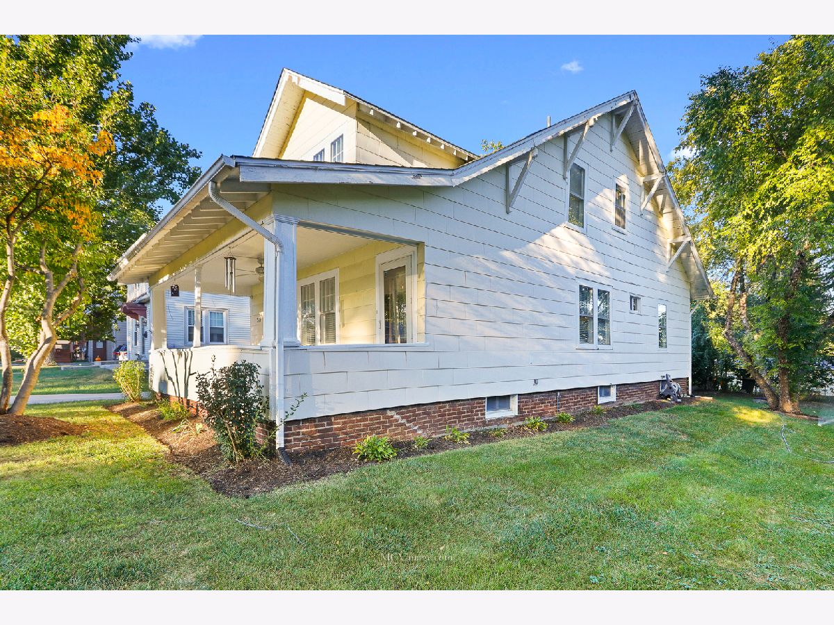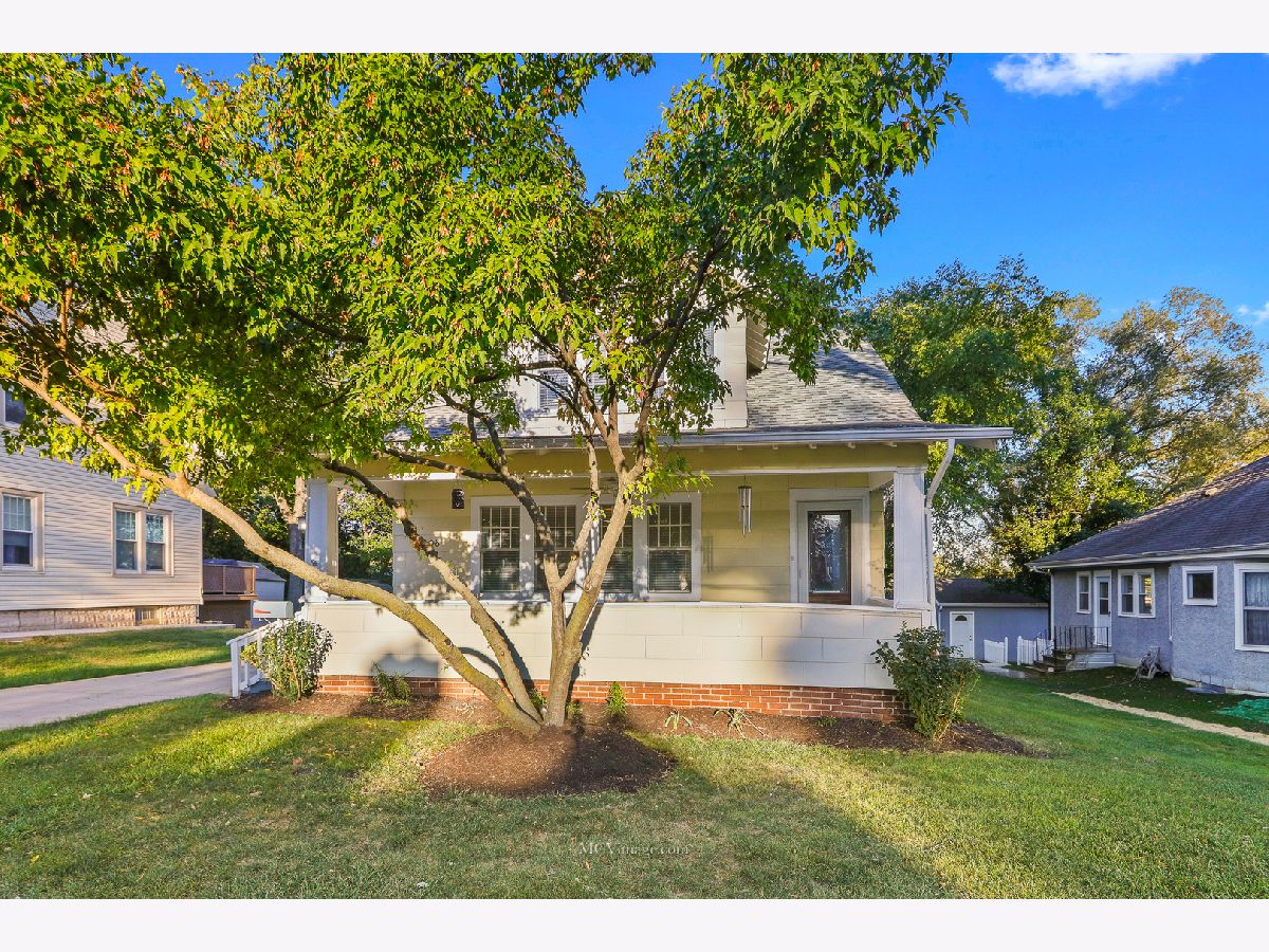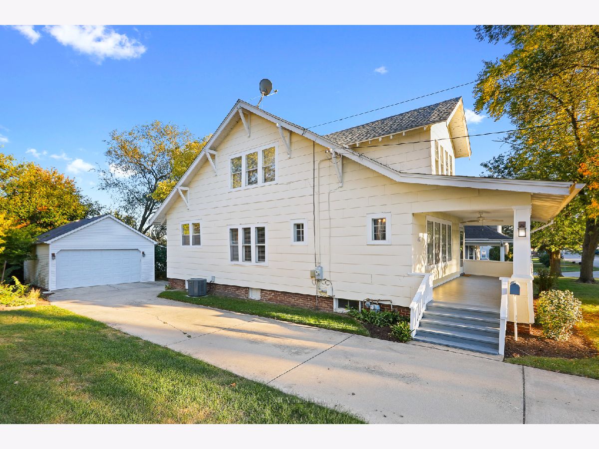 Many original features including glass door knobs, hardwood flooring in all bedrooms, and 2 sets of french doors. Lots of natural light with updated window treatments. Open sight line from kitchen to living room. Updated bathrooms. Additional updates include new roof (2013), hot water heater (2015), refinished bathtub (2015), kitchen sink (2015). Master bedroom with his and her walk-in closets, full master bath, and a HUGE laundry room and possible 4th bedroom on 2nd level. 2 Bedrooms and full bath on main level. Unfinished basement with shelving provides lots of storage. Oversized 2 car detached garage, perfect for a workshop. Front porch perfect for a summer evening! Within walking distance to Aurora University and Grocery.