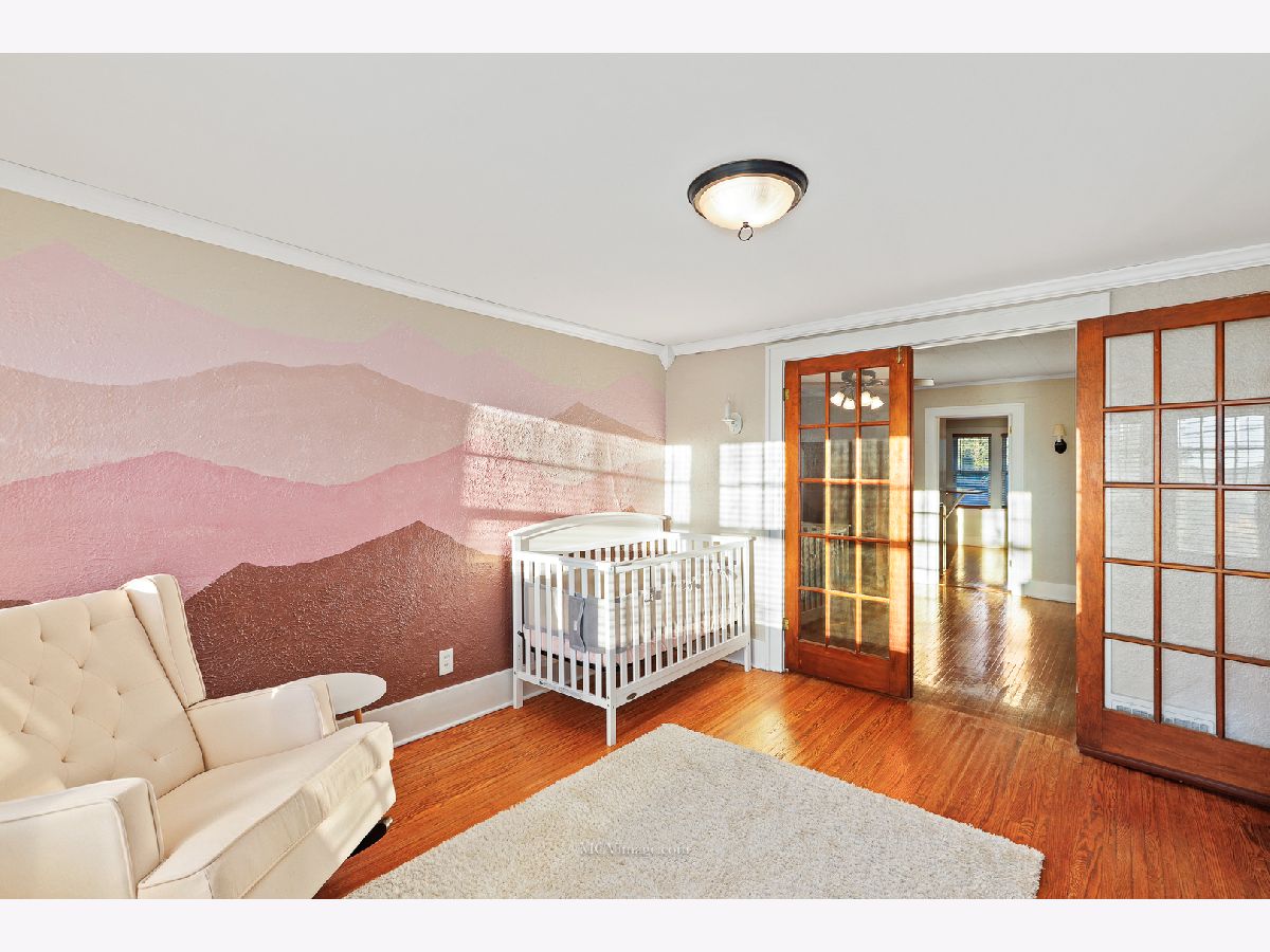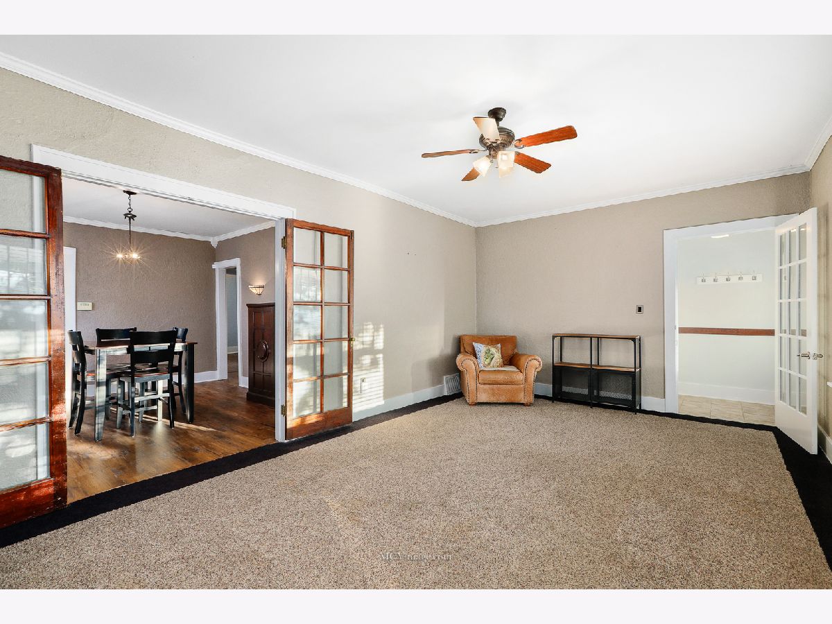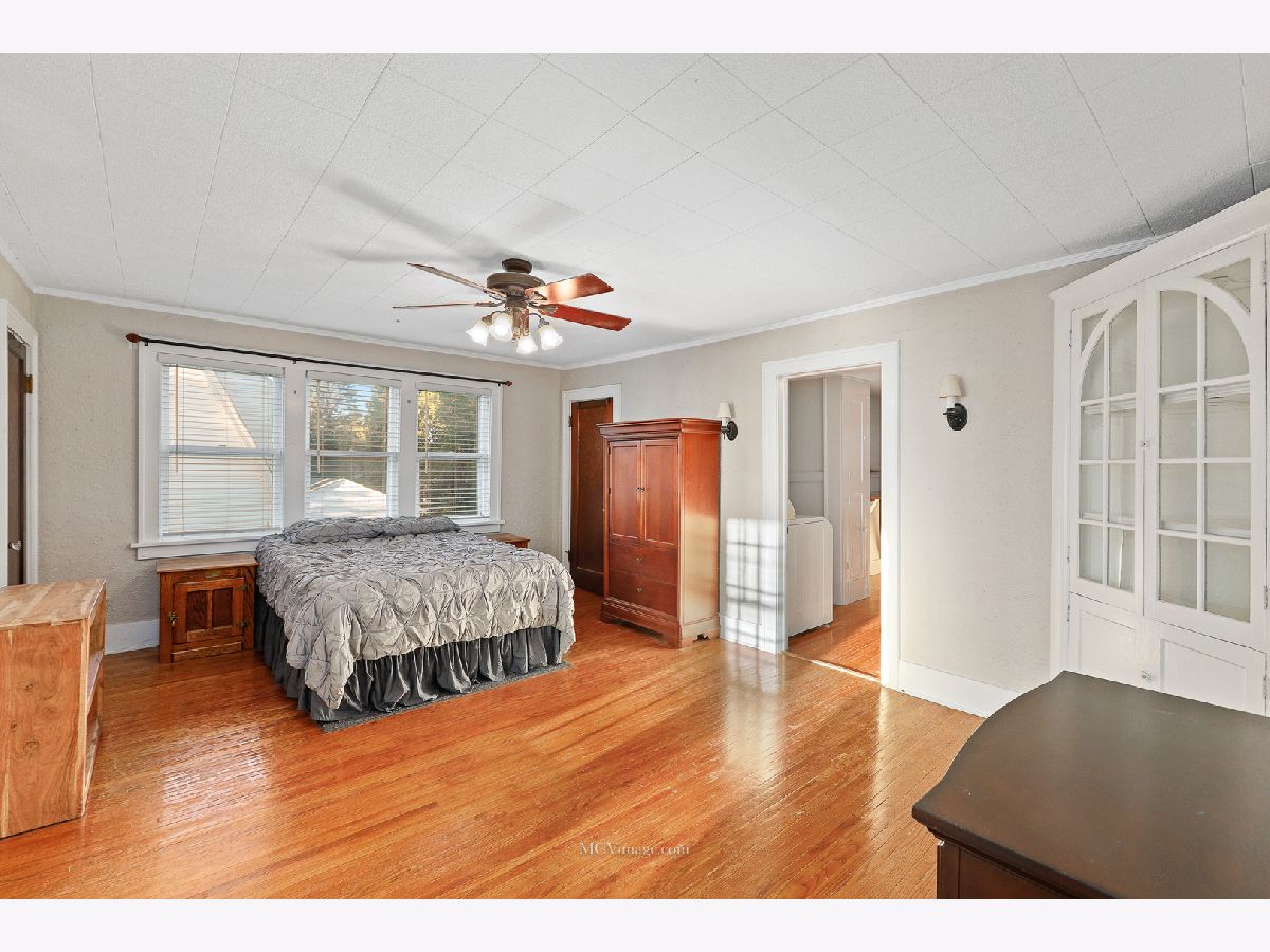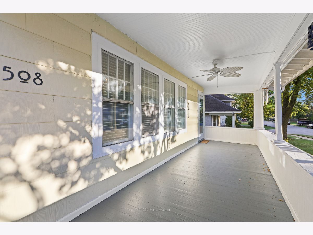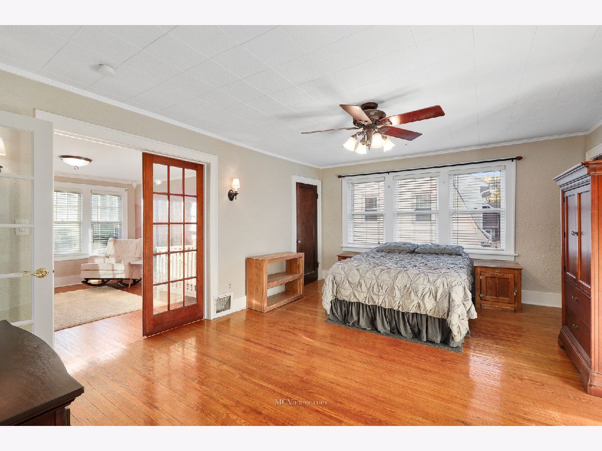 Many original features including glass door knobs, hardwood flooring in all bedrooms, and 2 sets of french doors. Lots of natural light with updated window treatments. Open sight line from kitchen to living room. Updated bathrooms. Additional updates include new roof (2013), hot water heater (2015), refinished bathtub (2015), kitchen sink (2015). Master bedroom with his and her walk-in closets, full master bath, and a HUGE laundry room and possible 4th bedroom on 2nd level. 2 Bedrooms and full bath on main level. Unfinished basement with shelving provides lots of storage. Oversized 2 car detached garage, perfect for a workshop. Front porch perfect for a summer evening! Within walking distance to Aurora University and Grocery.