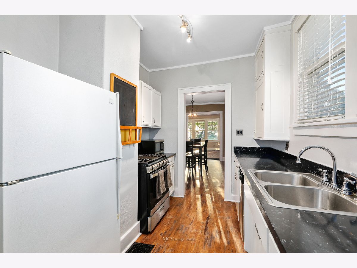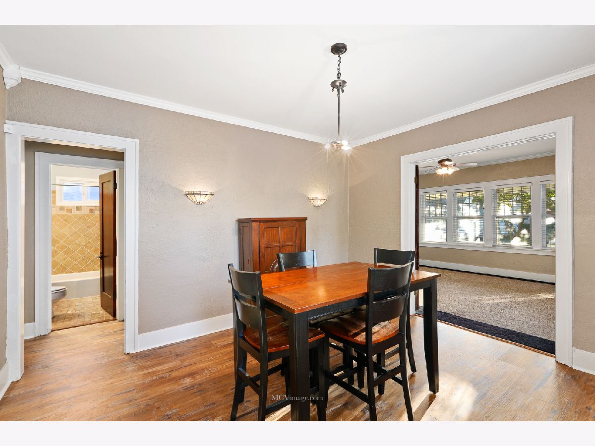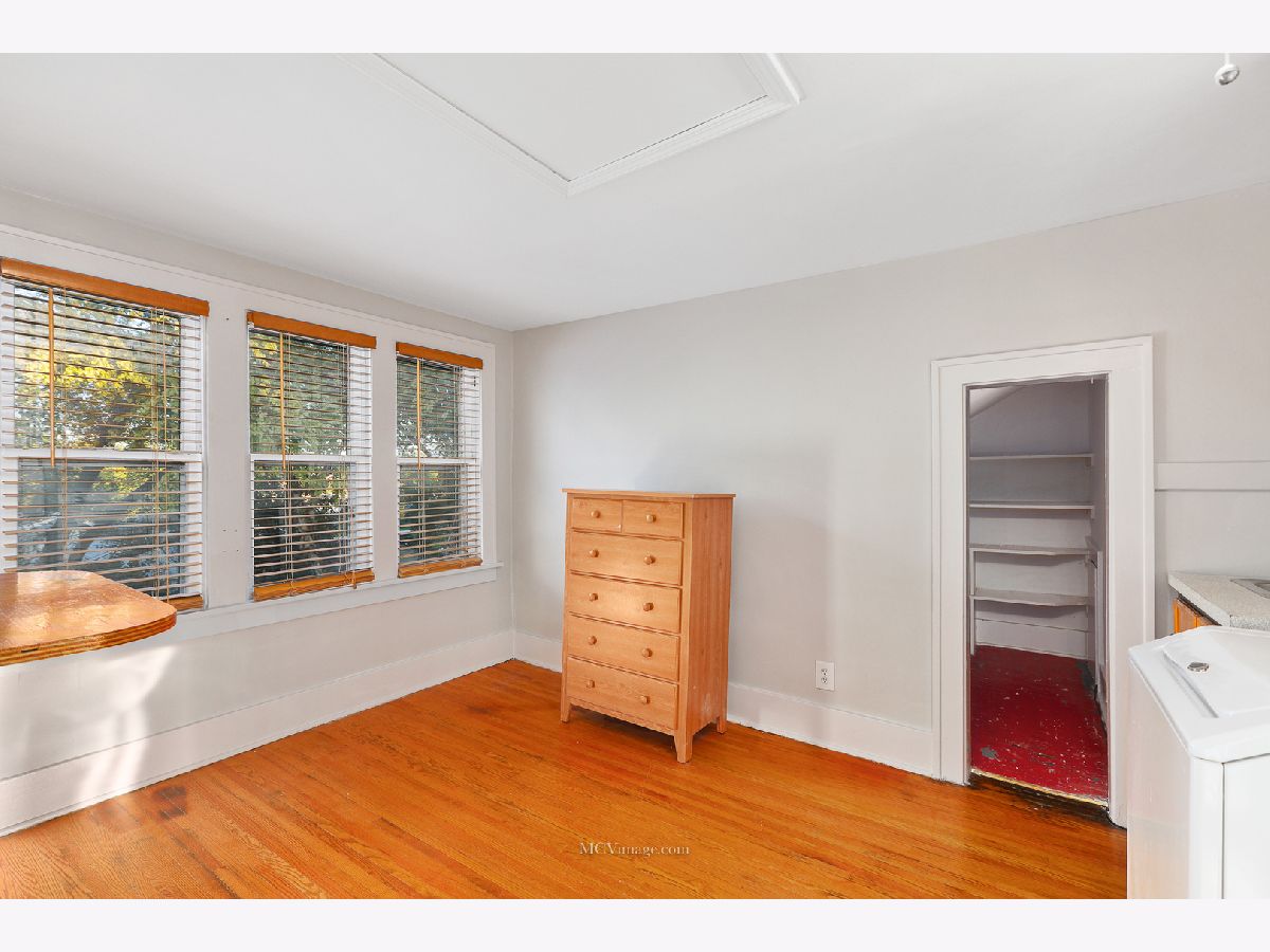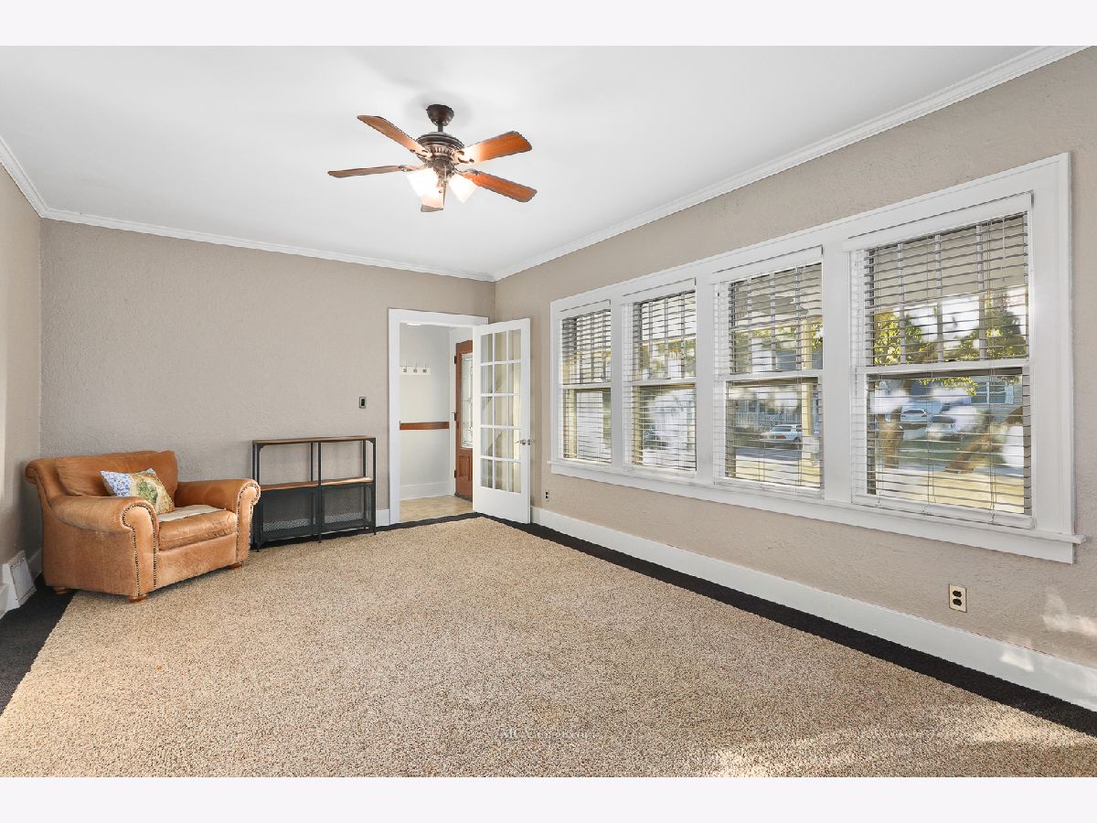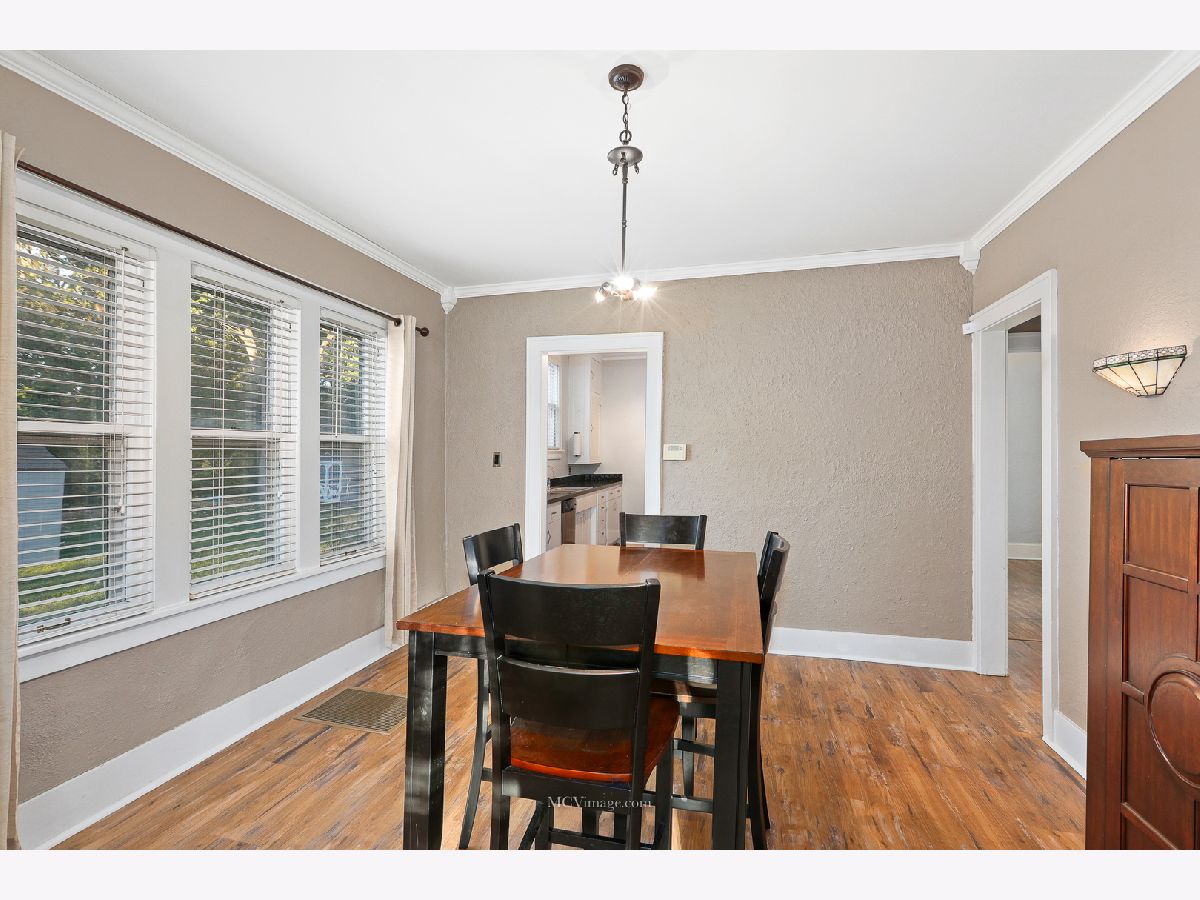 Many original features including glass door knobs, hardwood flooring in all bedrooms, and 2 sets of french doors. Lots of natural light with updated window treatments. Open sight line from kitchen to living room. Updated bathrooms. Additional updates include new roof (2013), hot water heater (2015), refinished bathtub (2015), kitchen sink (2015). Master bedroom with his and her walk-in closets, full master bath, and a HUGE laundry room and possible 4th bedroom on 2nd level. 2 Bedrooms and full bath on main level. Unfinished basement with shelving provides lots of storage. Oversized 2 car detached garage, perfect for a workshop. Front porch perfect for a summer evening! Within walking distance to Aurora University and Grocery.