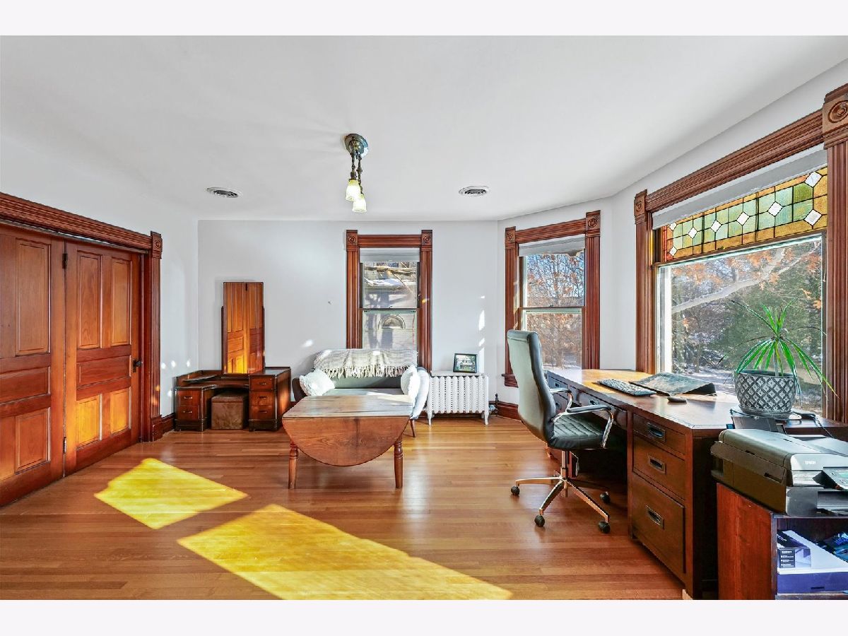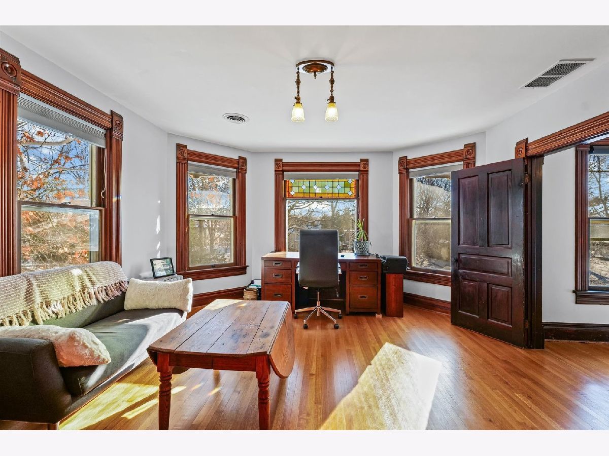 Nestled on a large lot, just seconds away from downtown Urbana, the University of Illinois, and Carle Hospital, this stunning Victorian home exudes charm and character. Featuring a welcoming wrap-around porch and beautiful original stained glass windows, this home is a true gem. With 6 bedrooms and 3 full baths (wth one of the bedrooms and full bath conveniently located on the main floor), this home offers ample space for family and guests. Enjoy the original moldings, exquisite woodwork, and hardwood floors throughout. The spacious rooms are enhanced by pocket doors, adding to the home's historic appeal. You will find pleasant surprises throughout, like the butler's pantry that has a fold-down table, perfect for added prep space or that the main floor has no "dead ends" where each room connects to the next. The unfinished walk-up attic offers additional storage or potential for expansion, while the basement presents endless possibilities with easy access via interior and exterior cellar steps. A huge deck overlooks the beautifully landscaped yard, complete with flower and vegetable beds, providing a tranquil outdoor retreat. A large detached garage accommodates 2 cars and includes a separate, heated workshop area, complete with a staircase leading to additional attic space. This home has been pre-inspected for your convenience, and radon mitigation is already in place, ensuring peace of mind for its new owner. Don't miss the opportunity to own this unique Victorian home that perfectly blends historical charm with modern conveniences!