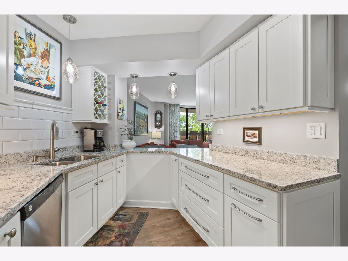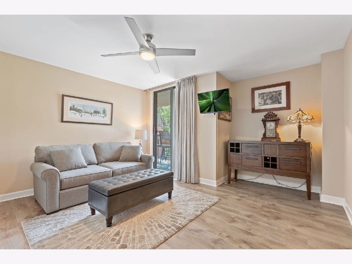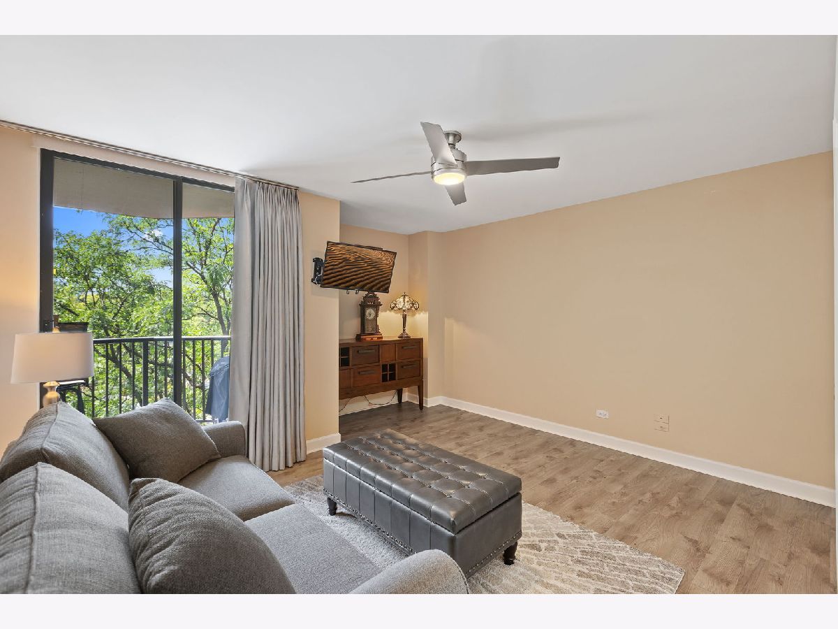 Resort-like living awaits in the preferred 509 Building at RiverPlace in Naperville. Nestled among hundreds of trees along the banks of the West Branch of the DuPage River and Netzley Quarry. Residents appreciate having the on-site office, community room with a free daily continental breakfast and 24-hour fitness center in the 509 Building. Even in the depths of winter, you're only steps (perhaps still in your slippers) away from all the benefits River Place has to offer. This two-bedroom, two-bathroom home offers approximately 1,244 square feet of living space. The unit was meticulously updated in 2019 including fresh paint, Luxury Vinyl Plank flooring throughout, two completely updated bathrooms and an updated kitchen with new and additional cabinetry, granite countertops and cozy breakfast bar illuminated with natural light and contemporary light fixtures. The spacious layout of the home allows for a formal dining area adjacent to a large living room. The living room features a wood-burning fireplace where you can curl up on the couch with a good book or glass of wine on a cold Chicago winter evening. When the weather is more agreeable, step out on your spacious patio five stores up amongst the treetops and enjoy a refreshing beverage of your choice. In the Fall watch the leaves turn colors at eye-level plus ample natural light to fill the rooms, giving the space an open and airy feel. The primary suite is large enough for a king-sized bed, nightstands and a dresser. There's abundant natural light when you pull back the custom and tasteful draperies and once again enjoy the view of the treetops. Most importantly, you also have the en-suite, exquisitely updated primary bath with a walk-in shower. And don't forget, the custom closet system in the primary bedroom walk-in closet makes for efficient storage of all your personal belongings. The second bedroom is slightly larger than the primary bedroom and would make a good office/den with a Murphy bed or sleeper sofa - or keep it a full-time bedroom. There's more than ample storage in the full wall closet with custom closet system. And the icing on the cake is the sliding door to the large outdoor balcony. The second bathroom is just around the corner and was also completely updated with a new luxury walk-in shower, tile and vanity. The laundry room provides a generous amount of space and storage, including a full-size newer washer and dryer. This is also where you'll find your new (Spring 2024) air conditioning unit for use in the summer months. Beyond the condo unit itself with its ample closet space, you have your own storage unit just around the corner from your unit on the very same floor. Now that all you have to do is move in and enjoy, it's time to explore the vibrant downtown Naperville area which is easy walking distance to attractions like The Naperville River Walk, Centennial Beach, Millennium Carillon, Naper Settlement and all the shops and restaurants in downtown Naperville. Enjoy an urban lifestyle in the suburbs. You're still conveniently located close to the BNSF Metra station for commuting to Chicago or if you prefer driving, I-88 and I-355 aren't far.