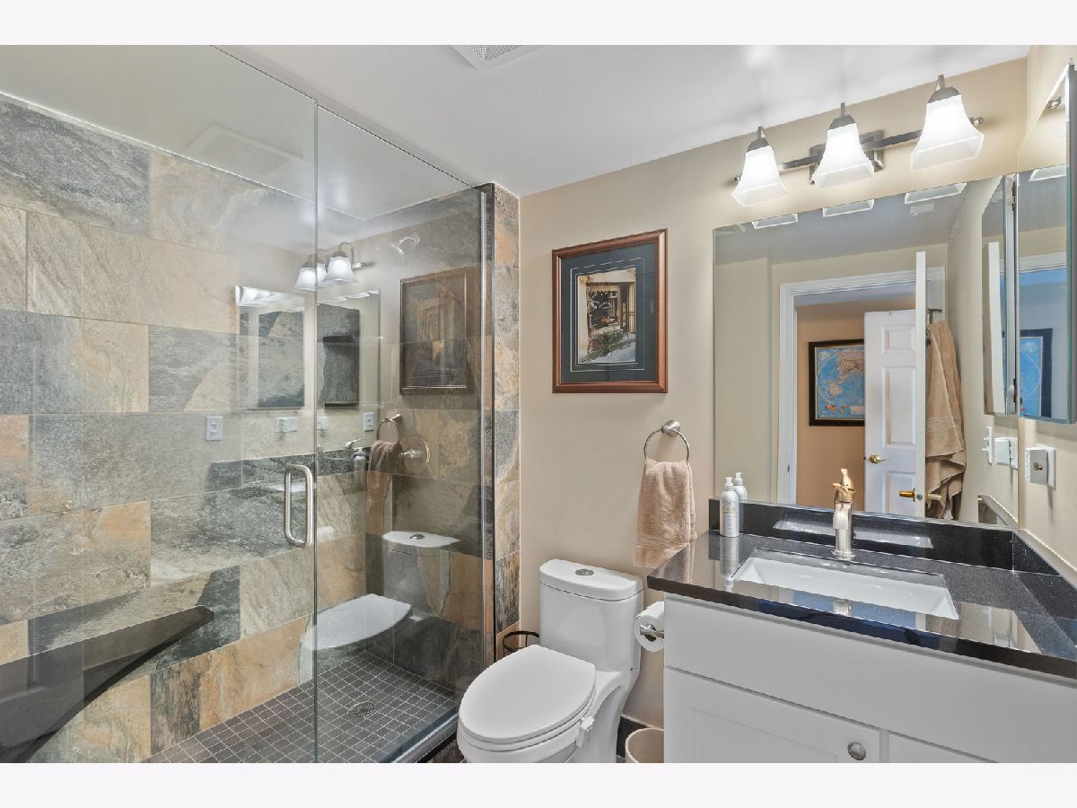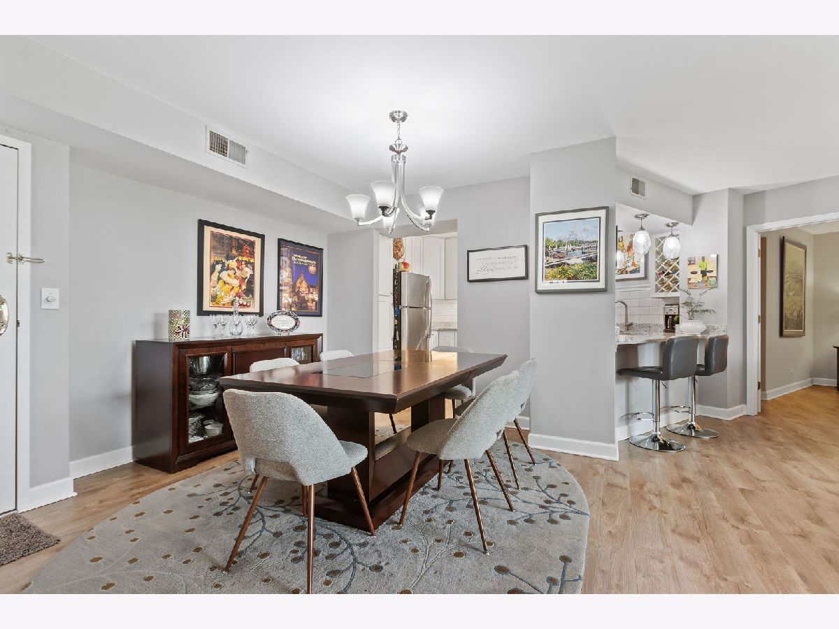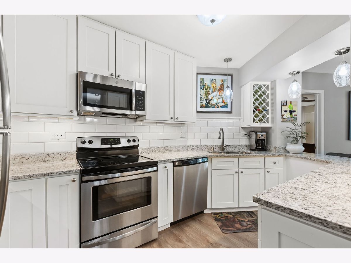 Resort-like living awaits in the preferred 509 Building at RiverPlace in Naperville. Nestled among hundreds of trees along the banks of the West Branch of the DuPage River and Netzley Quarry. Residents appreciate having the on-site office, community room with a free daily continental breakfast and 24-hour fitness center in the 509 Building. Even in the depths of winter, you're only steps (perhaps still in your slippers) away from all the benefits River Place has to offer. This two-bedroom, two-bathroom home offers approximately 1,244 square feet of living space. The unit was meticulously updated in 2019 including fresh paint, Luxury Vinyl Plank flooring throughout, two completely updated bathrooms and an updated kitchen with new and additional cabinetry, granite countertops and cozy breakfast bar illuminated with natural light and contemporary light fixtures. The spacious layout of the home allows for a formal dining area adjacent to a large living room. The living room features a wood-burning fireplace where you can curl up on the couch with a good book or glass of wine on a cold Chicago winter evening. When the weather is more agreeable, step out on your spacious patio five stores up amongst the treetops and enjoy a refreshing beverage of your choice. In the Fall watch the leaves turn colors at eye-level plus ample natural light to fill the rooms, giving the space an open and airy feel. The primary suite is large enough for a king-sized bed, nightstands and a dresser. There's abundant natural light when you pull back the custom and tasteful draperies and once again enjoy the view of the treetops. Most importantly, you also have the en-suite, exquisitely updated primary bath with a walk-in shower. And don't forget, the custom closet system in the primary bedroom walk-in closet makes for efficient storage of all your personal belongings. The second bedroom is slightly larger than the primary bedroom and would make a good office/den with a Murphy bed or sleeper sofa - or keep it a full-time bedroom. There's more than ample storage in the full wall closet with custom closet system. And the icing on the cake is the sliding door to the large outdoor balcony. The second bathroom is just around the corner and was also completely updated with a new luxury walk-in shower, tile and vanity. The laundry room provides a generous amount of space and storage, including a full-size newer washer and dryer. This is also where you'll find your new (Spring 2024) air conditioning unit for use in the summer months. Beyond the condo unit itself with its ample closet space, you have your own storage unit just around the corner from your unit on the very same floor. Now that all you have to do is move in and enjoy, it's time to explore the vibrant downtown Naperville area which is easy walking distance to attractions like The Naperville River Walk, Centennial Beach, Millennium Carillon, Naper Settlement and all the shops and restaurants in downtown Naperville. Enjoy an urban lifestyle in the suburbs. You're still conveniently located close to the BNSF Metra station for commuting to Chicago or if you prefer driving, I-88 and I-355 aren't far.