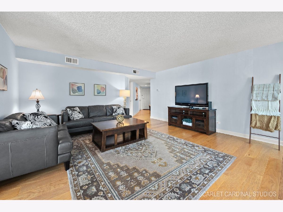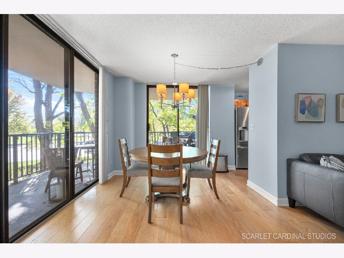 Don't miss this rare opportunity-this updated 2-bedroom, 2-bathroom end-unit condo comes with not one, but TWO separate garage spaces (#1 & #6) in a heated garage! Nestled in the coveted 509 Building at RiverPlace in Naperville, this 2nd-floor unit offers resort-style living just steps from the scenic Downtown Naperville Riverwalk. Inside, enjoy over 1,100 sq ft of thoughtfully designed living space featuring beautiful hardwood floors and cozy carpeted bedrooms. The completely updated bathrooms bring a modern touch, and the unique layout flows seamlessly from the family room to the dining area and kitchen, which offers abundant cabinet space. Oversized closets provide excellent storage throughout. Two sliding doors off the dining area lead to a private patio-perfect for grilling, entertaining, or relaxing with scenic views. Additional conveniences include in-unit laundry, a personal storage locker, and plenty of guest parking. Residents enjoy luxury amenities such as a 24-hour fitness center, a clubhouse with a full kitchen, complimentary daily continental breakfast, and on-site staff with 24-hour security. Assessments cover utilities and maintenance, ensuring easy living. The location is unbeatable-just a short walk to Downtown Naperville and close to the BNSF Metra station for commuters, with easy access to I-88 and I-355. This condo offers the perfect blend of luxury, convenience, and urban living right in the heart of the suburbs. All that's left to do is move in and enjoy! Schedule your private tour today!