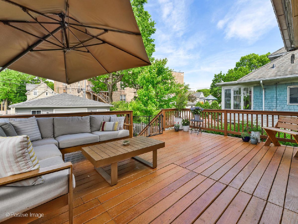 Nestled on a fabulous extra-large lot, this beautiful home perfectly blends vintage charm with lovely modern updates. Absolutely unbeatable outdoor space with expansive yard - room for play, gardening and entertaining plus a large deck right off the kitchen! Incredibly functional floor plan with spacious living room open to true dining room space. The coveted open floor plan allows for sunlight to pour in from all directions! Recent renovation in the custom chef's kitchen featuring tons of storage, quartz counters, farmhouse sink, eat-in breakfast bar and newer appliances. Powder room on this level, ideal for entertaining. Three spacious bedrooms upstairs with a fully renovated bathroom boasting designer light fixtures, stunning finishes and dual vanity. Recently redone lower-level space with additional family room, room for home office AND huge storage room! Large side-by-side laundry. Recently rebuilt oversized 2+ car garage. Easy walk to restaurants, parks, and transportation. This home is a true gem!