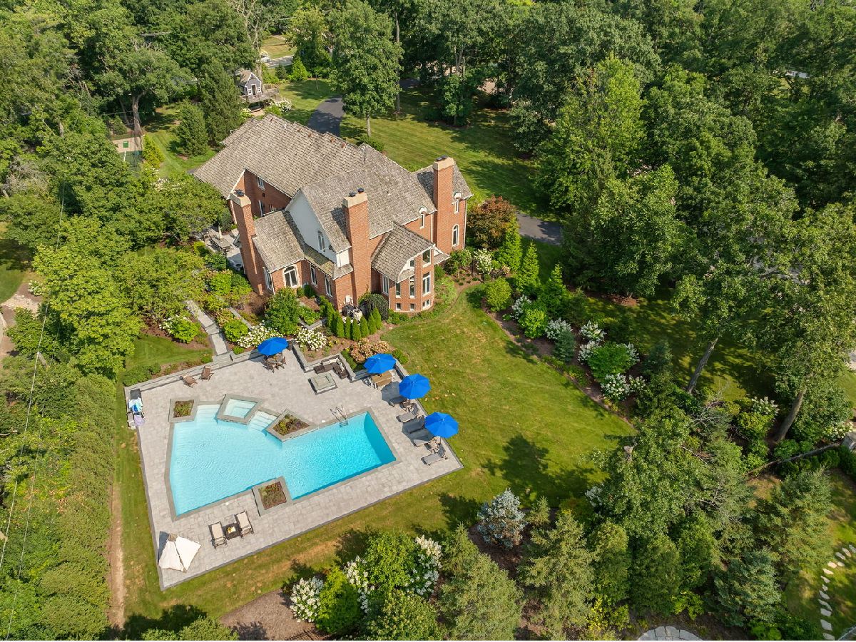 Nestled on 1.48 manicured acres along prestigious Broadsmoore Drive, this stately brick estate was extensively renovated and transformed inside and out, blending timeless architecture with modern luxury. A gracious circular drive and a grand two-story foyer introduce a residence reimagined as a contemporary expression of luxury living. An elegant, well-conceived floor plan spans nearly 5,900 square feet, encompassing five bedrooms on the second floor and six-and-a-half baths. Thoughtfully designed for both everyday living and grand entertaining, the home achieves effortless flow between formal and informal spaces-and from indoors to out. Natural light and views of the backyard stream through expansive windows and doors. Soaring 10-foot ceilings, five fireplaces, and exceptional craftsmanship define the interiors. In recent years, the residence has been completely transformed with updated mechanicals and a refined transitional aesthetic, including a showpiece kitchen renovation, redesigned baths, and a transformed outdoor oasis with renovated pool and incredible grounds. Traditional millwork, crown molding, paneled walls, bespoke niches, and arched doorways honor the home's Georgian Revival architecture, now thoughtfully recast through a contemporary lens-preserving its character while bringing it gracefully into the present. The kitchen-reinvented to echo the home's timeless ambiance and outfitted with a Sub-Zero refrigerator, Dacor, and Bosch appliances, farmhouse sink, brass accents, open shelving, a large center island, and hidden additional pantry storage-opens to a breakfast room. The adjacent family room, anchored by a whitewashed brick fireplace and a new wet bar, creates a seamless flow for entertaining. Formal dining and living rooms enjoy views of the front lawn. French doors lead to a wood-paneled library with built-ins, a fireplace, and wet bar overlooking the pool. A bonus private sunroom is filled with natural light and scenic views, offering a flexible space for relaxation or work. Upstairs, a loft space flows to the primary suite behind double doors, where soaring ceilings, fireplace, dual walk-in closets, and a large marble bath await. A separate bedroom wing comprises four additional bedrooms, including two with an ensuite and two sharing a Jack-and-Jill bath. The largest suite has a private bath and sitting area that connects to the back staircase-ideal for an au pair, guest, or live-in staff. The updated English basement doubles as a versatile entertaining level with a recreation and gaming area, full bath, second kitchen, and an impressive new gym-spacious enough to rival any commercial fitness studio. Beyond, professionally designed landscaping provides the backdrop for a private resort-style setting primed for outdoor entertaining featuring a resurfaced and replumbed pool with new decking, wading area, and spa, surrounded by terraces and outdoor gas firepit. A custom treehouse and batting cage round out the outdoor amenities, creating a private playground for all ages. Every inch of this estate reflects quality, care, and livability-a rare blend of timeless craftsmanship and modern luxury in one of the North Shore's most sought-after enclaves.