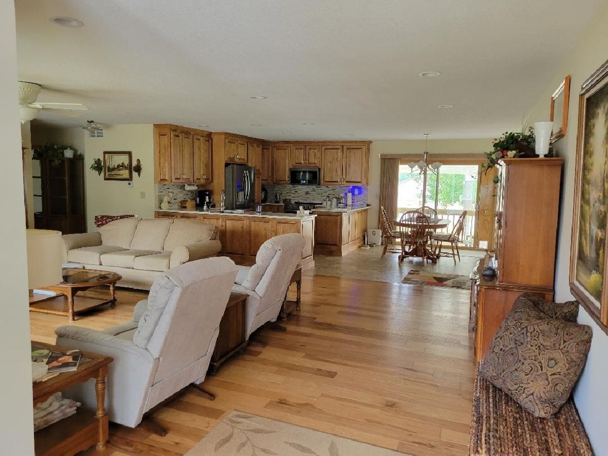 Like a new Home!! Sellers have gone all out restoring this ranch-style home. Beautiful Scraped hardwood flooring, solid wood interior doors, cedar lined closet, and Pocket doors too! Open floor plan has spacious living area with a bay window, dining area and large kitchen with high quality Amish Cabinetry, and Quartz countertops. Plenty of storage too. Main bath includes Tiled stand-up shower with new cabinetry and double sink. New furnace, ceilings, walls, tankless hot water heater, sprayed insulation, windows, electrical and all new appliances. Beautiful sliding doors lead to a large 22 X 40 covered patio that provides a fantastic space for outdoor family gatherings and cookouts. Finished 2car garage has built in storage. Interstate access nearby. 10 X 16 storage shed included!!