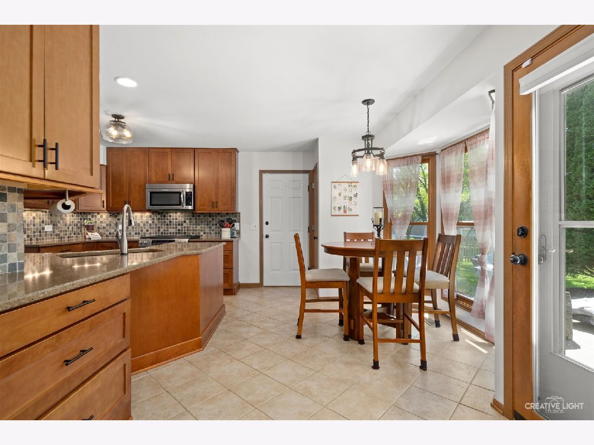 Here is the home you have been looking for in popular Pine Creek! With over 2,500 square feet including the full basement there is room for everyone! Natural light fills this home with eastern and western exposure. Enjoy relaxing on your front porch. Upon entering the 2 story foyer you will find the perfect place for an office on the right with new light fixture and to the left is the dining room with hardwood floor. For easy dinner parties the updated kitchen with stainless steel appliances is adjacent. Granite counters and tons of cabinet space along with room for a table with full view of the yard. The open floor plan flows right into the family room with hardwood floor and bay window. You will also find the access to the 2 1/2 car garage with EV outlet and pull downs stairs to the attic storage and a freshly painted powder room on the main floor. Upstairs is the primary suite with hardwood floor, full bath with dual sinks, fresh paint and a walk-in closet. Two more nice sized bedrooms with a full bath that was fully updated in 2022 and the washer and dryer complete this floor. The full basement has a newly finished recreation room (2022) and an unfinished section that is perfect for storage or a work room. There is also a place to move the washer and dryer too if you prefer. The fenced in yard has a patio where you can watch sunsets while dining al fresco. The location is great with district 129 schools, nearby park with playground, no HOA, minutes to the Fox River, retail and dining, and easy access to I88. Welcome home!