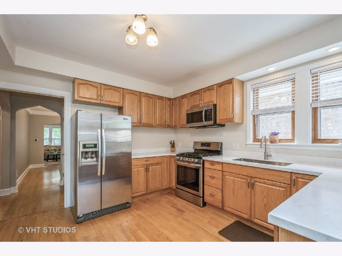 Lovely Jefferson Park "English T" in Move In Condition! This Property offers, 4 bedrooms, 3 baths - Bath on Each Level - 1st floor bath with Jacuzzi Tub. Living Room with new, beautiful, custom built, gas log fireplace. Separate Formal Dining Room, 2 Bedrooms on Main Level, 2 Upstairs. Updated kitchen with Solid Surface Counters, SS appliances, farm sink. Hardwood floors on main level. Inviting back porch overlooks perennial garden. Spacious, Lower Level Family Room. Newer SS Washer and Dryer. Antiflood System. Perfect blend of character and charm with today's amenities. New back yard privacy fence. 2 Car Garage. Conveniently located, minutes to X-Way, Metra, CTA Transportation Hub. Great Place to Come Home!!