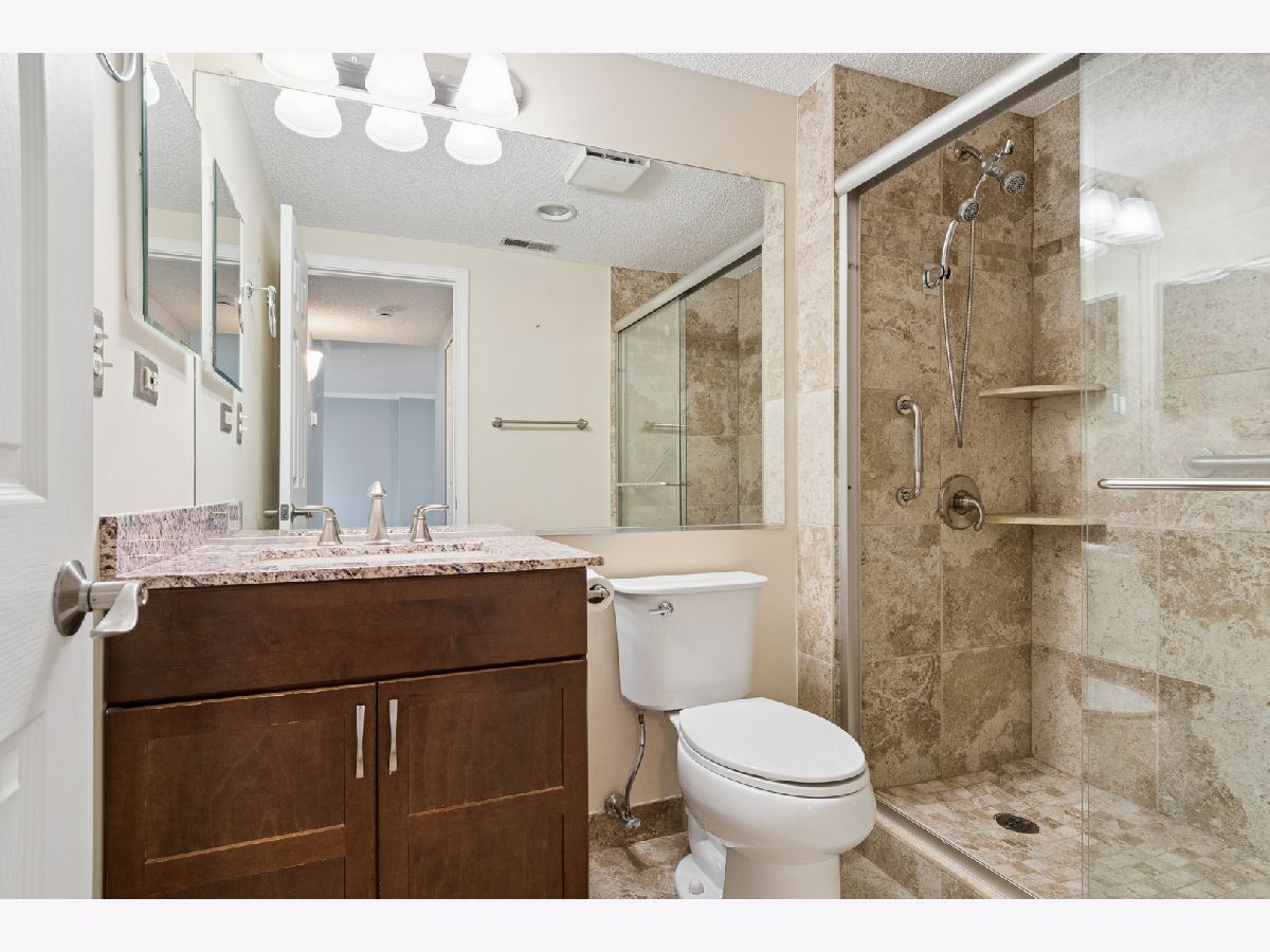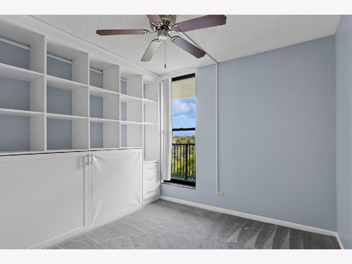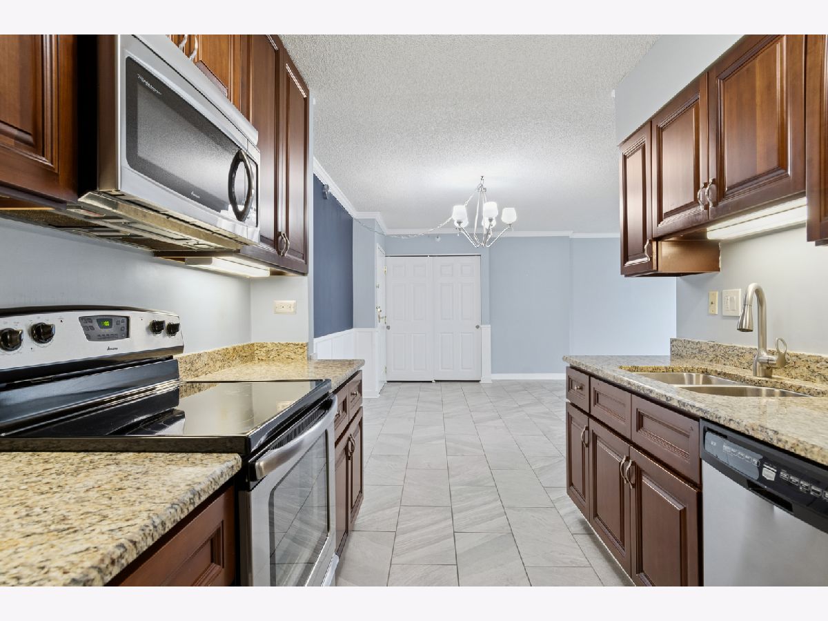 Come and live by the side of the river where your river view from the peaceful fifth floor balcony says "Welcome back, you can relax now, you're at home in RiverPlace." This complex is the hidden and still affordable gem of Downtown Naperville, located at the end of the Riverwalk's Southbank. The efficient H floor plan offers spacious rooms along with ample closet and storage space. The remodeled kitchen features dark cherry cabinetry and granite counters with all stainless steel appliances and a ceramic tile floor extending into the dining room and foyer. The dining room features wood wainscot trim, crown moulding and wide base trim. There is crown moulding in the living room and hall. The remodeled bath has matching cherry cabinetry, a granite counter top and a walk-in shower with integrated shelving and multi-feature shower head with hand-held. Wake up to a sunrise view of Downtown Naperville and the river from the spacious primary bedroom. The secondary bedroom has a new thermo-pane window, integral screen + new blinds. ADDED PLUS: it features a BUILT-IN TWIN SIZED MURPHY BED and wall of book shelves allowing it to function as both a bedroom and an office as needed. The closet has an organizer system with handy drawers and shelves. There is also a two door hall linen closet. The in-unit laundry features a newer full sized washer and dryer. The A/C and air handler were replaced in 2020 and feature the ambient kit which allows an air-conditioning override during heating season for your year round comfort. There are also ceiling fans in the living room and each bedroom. Your lockable 30"X46"X90" storage cage is on the same floor. Just move in and enjoy the carefree RiverPlace lifestyle. Monthly HOA ASSESSMENT INCLUDES EVERYTHING: ELECTRIC, WATER, HEATING, AIR CONDITIONING, CABLE TV + INTERNET, 24 HOUR FITNESS CENTER, CONCIERGE PACKAGE DELIVERY, DAILY CONTINENTAL BREAKFAST, PAVILION PARTY ROOM WITH DECK + FULL KITCHEN. Live in Downtown Naperville where it's like the Riverwalk, Centennial Beach, Rotary Hill, Riverwalk Cafe and the Carillon are in your backyard. "There's no place like RiverPlace."