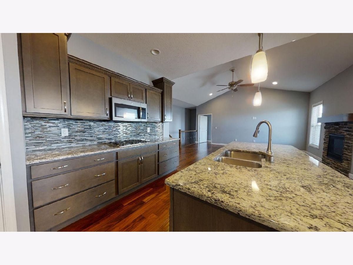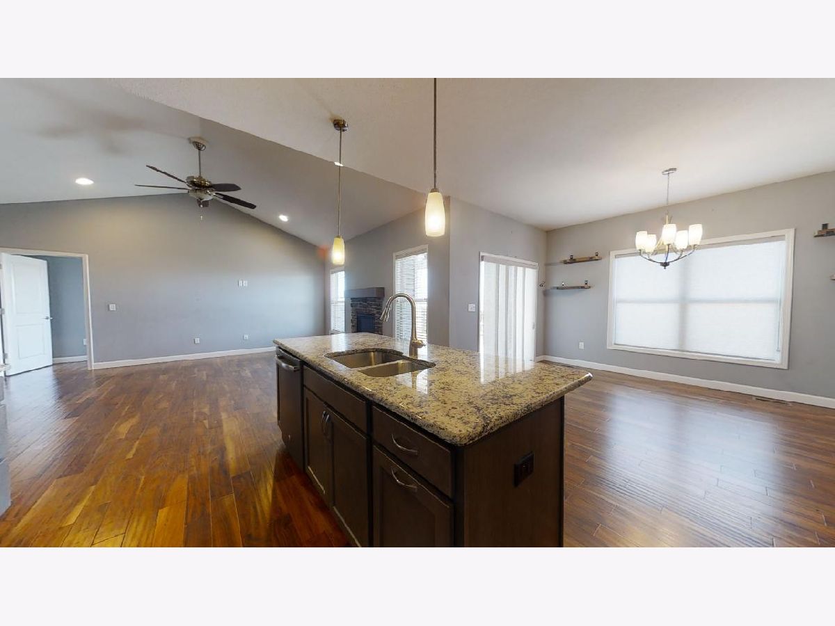 Welcome home! You will fall in love with this stunning ranch style home in the Liberty on the Lake subdivision! The crisp exterior reflects the stylish interior, which offers top notch finishings. Once inside, warm cherry hardwood flooring flows from the entry way to the heart of the home. The living room with cathedral ceilings and a cozy stone fireplace comfortably opens into a modern kitchen and dining room combo. You will love to entertain in the modern kitchen with stylish wood cabinets, a large corner pantry, gleaming granite counters, stainless steel appliances, and modern tile backsplash. Eat at the large kitchen island with breakfast bar or in the cozy dining room situated just off the kitchen. The master suite will become your private getaway, featuring trey ceilings, a stunning en suite with tiled walk-in shower, and an impressive walk-in closet. Two additional bedrooms, one with a walk-in closet, surround a second full bath, which is accentuated by stylish tile floors and tub surround. The large laundry room adds another convenience. Unwind and entertain in the large partially finished basement with plush carpet flooring, a stylish wet bar, full bathroom, and 4th bedroom. The unfinished portion offers built-in shelving, giving you tons of extra storage space. Want more? Enjoy summer sunsets outside on the covered back patio overlooking the roomy fenced-in backyard. Put this one on your list to see today!