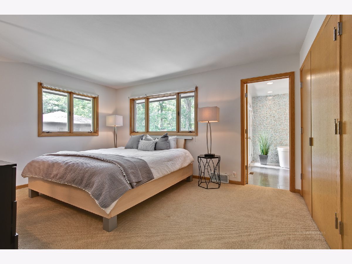 Architect's own mid-century home on a beautiful private corner lot in desirable Whisper Oaks! Sundrenched rooms enjoy private wooded views. 4 inch White Oak hardwood floors, 3 fireplaces, stylish master bath, open kitchen, family room overlooking pool & yard. Finished basement. Walking distance to Cherokee school and park. Extra separate detached garage could be finished as office, artist studio or poolhouse! Quick closing possible. 2004- replaced hollow core doors to solid- replaced flooring- master bathroom & hall bath redone, new millwork 2014-roof -fence- carpeting 2016- AC