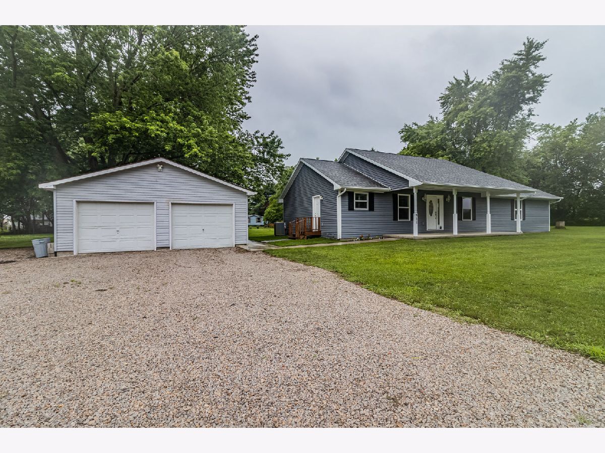 Newly constructed home built at the edge of Mansfield with either a quick 20 minute drive via interstate to Champaign or 30 minute drive via interstate to Bloomington, situated an over one half acre parcel featuring three bedrooms including a master suite with spacious walk-in closet, double vanity and built-in linen, an additional sparkling full bath, an office with beautiful hardwood flooring with a closet (that could be the fourth bedroom), lovely quality cabinet-filled kitchen with all appliances staying, center island, pull out double garbage, double tray utensil drawer, soft close drawers and cabinet doors, and a laundry room that houses the 98% efficient furnace and water heater, additional storage, pull down attic access with added insulation. There is a detached oversized two-car garage and a very spacious (24' x 10') covered deck overlooking the serene, peaceful, and private backyard. Additional features: underground downspout system, 4' deep crawlspace with 3" of gravel and heavy vapor barrier, lighting, and a dehumidifier. Impeccably clean and ready to move in.
