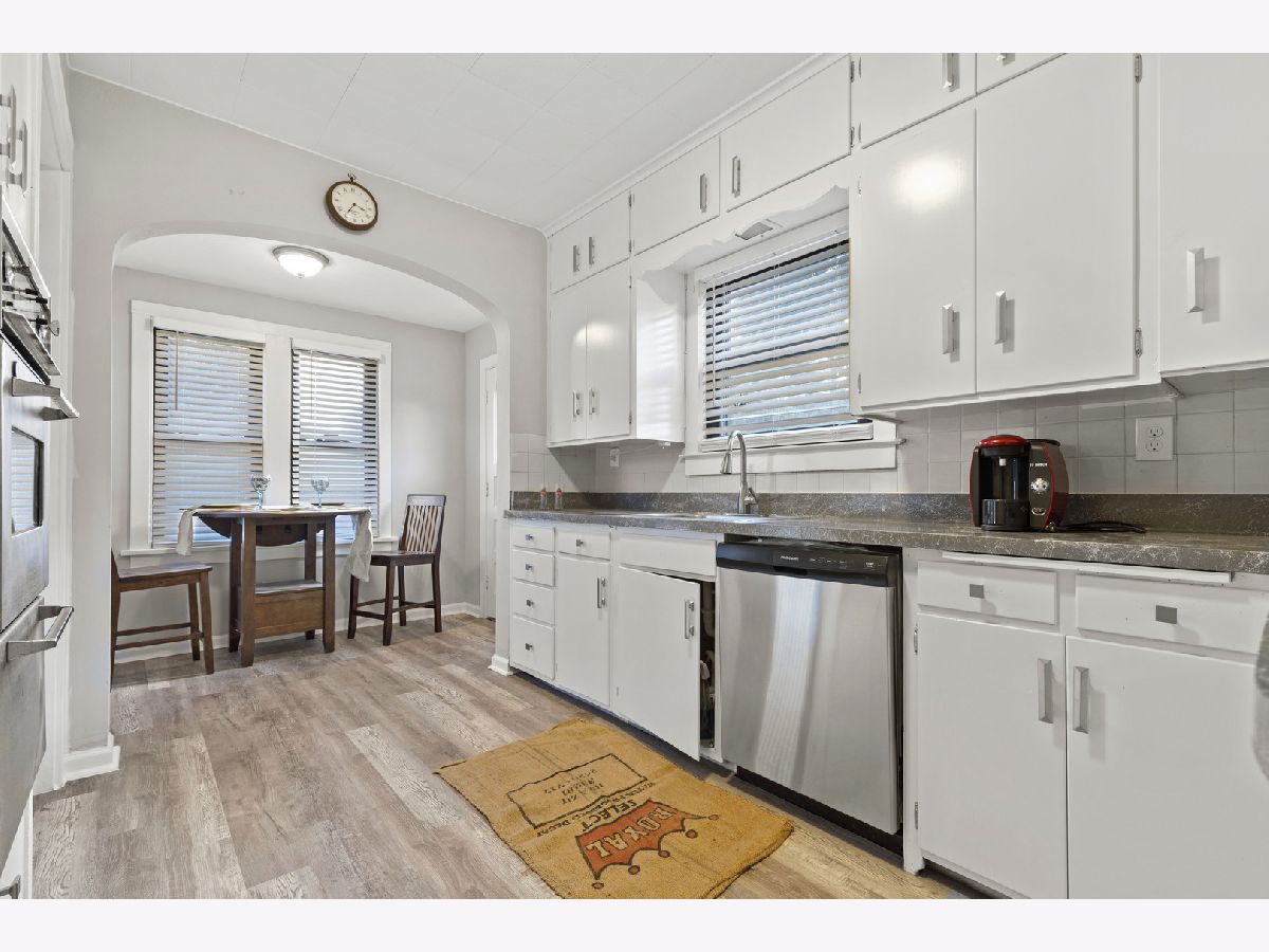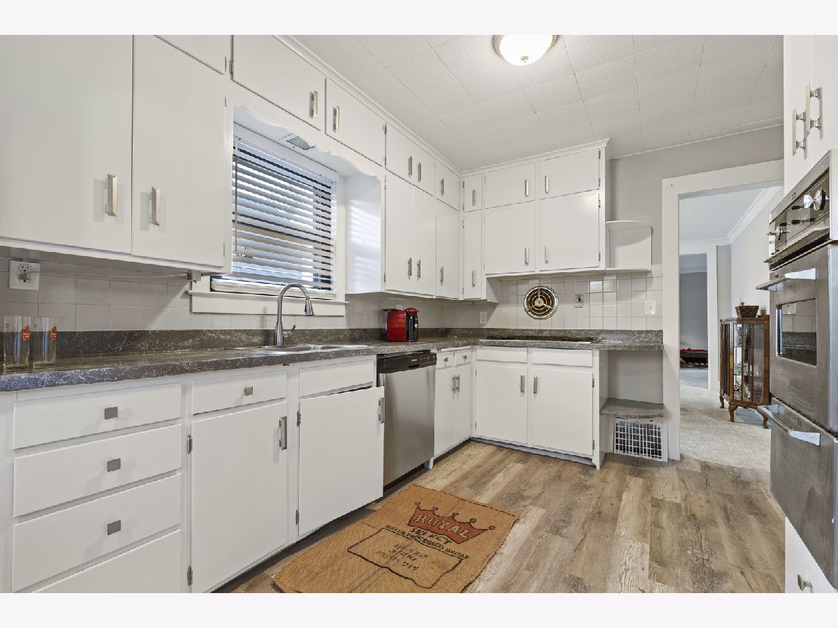 Beautifully remodeled bungalow with 4 bedrooms, 2.5 bathrooms and 2 car garage! Cozy front porch is the perfect place to sit and relax. Spacious living room with brick fireplace, built-ins and abundant natural light. Charming kitchen with white cabinets, new hardware, new vinyl flooring, tile backsplash and breakfast nook. Separate dining area. Brand new flooring throughout the whole home! Freshly painted with neutral colors and white trim. Two bedrooms are on the main floor. Updated bathrooms with new vanity, flooring and tile surround. Upstairs are two bedrooms and half bathroom. Plenty of closet space in this home. Finished rec room in basement and full bathroom with vinyl flooring. Brand new roof! Spacious 2 car garage with brand new asphalt driveway. Great location walking distance to downtown Belvidere.