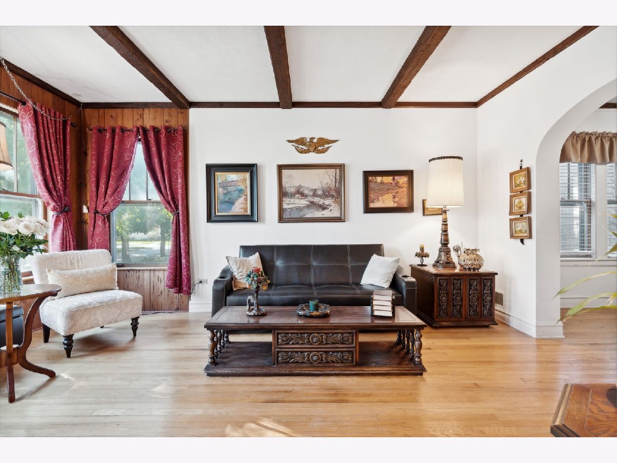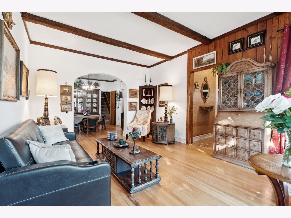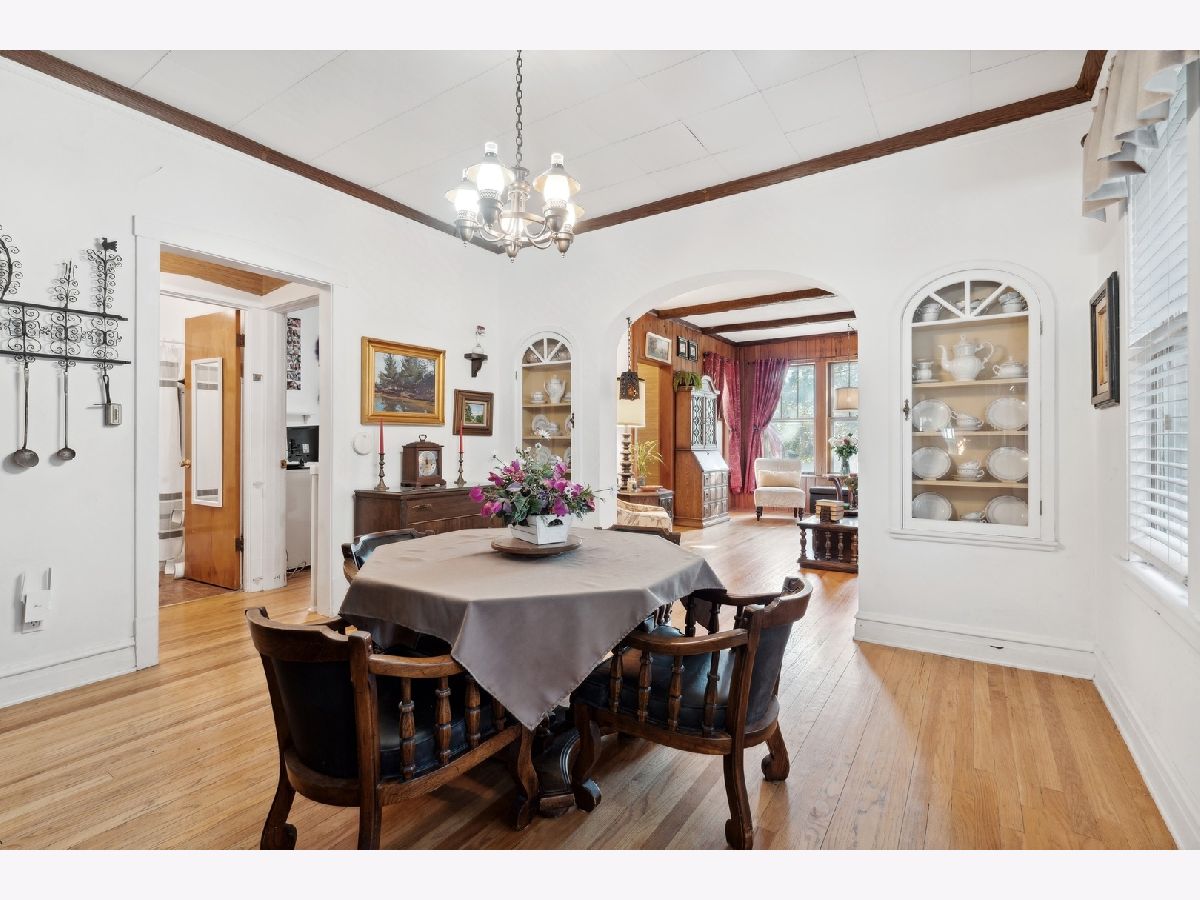Chicago brick bungalow on a 30 wide lot in the hot Jefferson Park area on a picture perfect tree-lined street! This home exudes charm with its vintage trim and features throughout including hardwood floors, high ceilings, and elegant archways and wood paneled walls. The main floor features a formal dining room, spacious living room, family room, eat-in kitchen along with 2 bedrooms and updated bathroom. Desirable layout includes family room with seamless access to the pleasant enclosed porch leading to you large back yard with pool. The upstairs level features a large bedroom and en-suite full bath, plentiful closet space with an extra bonus room which is currently used as an office. Lower level offers generous finished rec room with kitchenette - perfect for gatherings. Convenient location is close to all public transit, highway access, and only 15 minutes away from O'Hare and downtown.