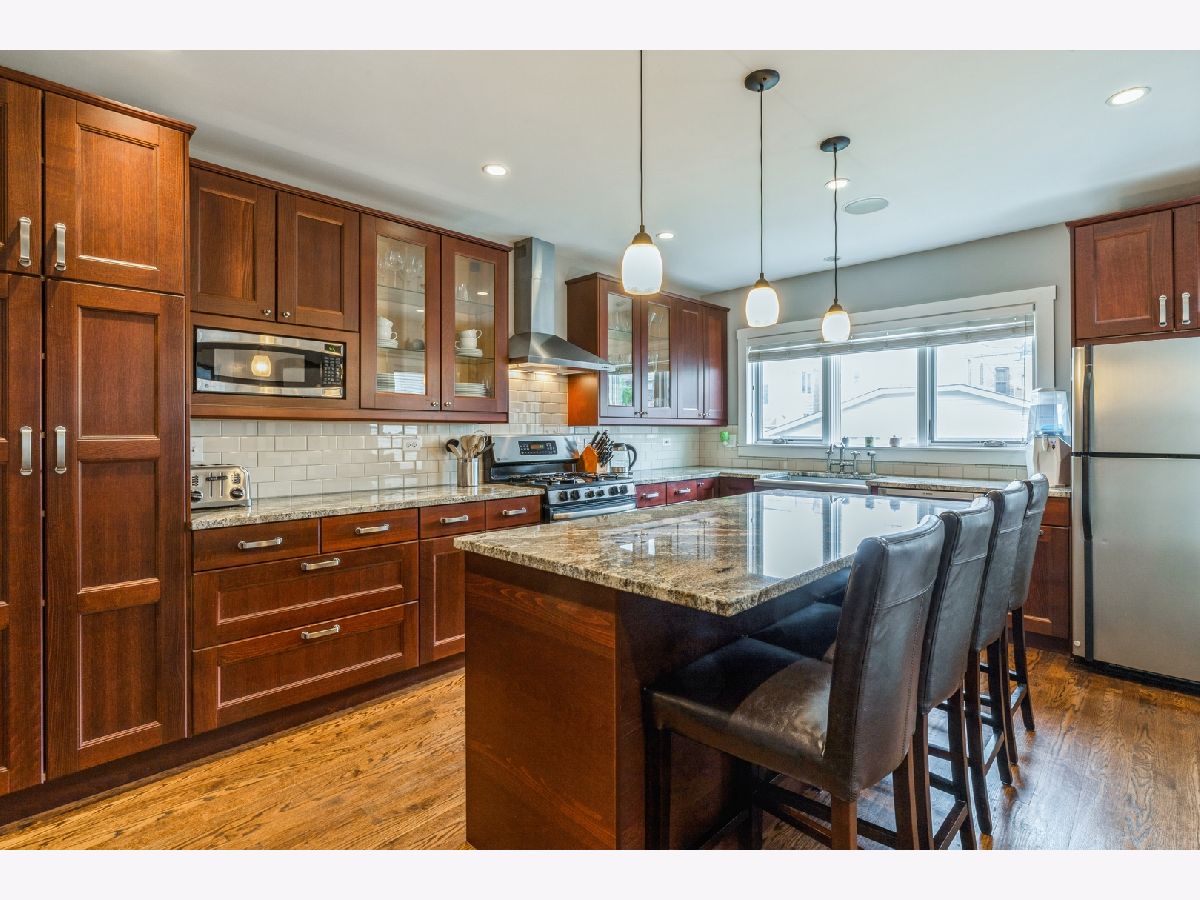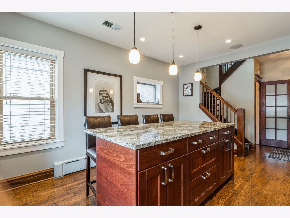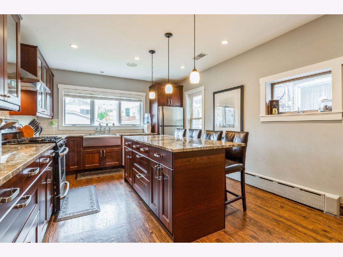 Stunning Brick Bungalow in Jefferson Park. This one shows even better in person !!!! Great Kitchen remodeled in 2013 features Cherry cabinets, granite counters, subway tile backsplash, hood, Stainless appliances, huge island/ breakfast bar & plenty of windows for natural light. Main floor also boasts plenty of natural wood work throughout, 2 bedrooms (one is currently used as an office), cozy living room, Spacious dining room & full bath. Open staircase, off of kitchen leads to 2nd level which includes : 2 bedrooms, primary BR has walk in closet, 2nd full bath, & linen closet. Basement was remodeled in 2016 ; New apoxy type flooring, 3rd bathroom, drywall, LED recessed lighting, & reconfigured laundry area. Basement electric was rewired and plumbing updated to copper. More updates include : Tear off roof on house and garage in 2017, new facia on windows & under roof edge in 2017,Side staircase remodeled in 2018, New Air condition 2019, & new gangway fence in 2017. Meticulously maintained backyard with organic garden beds. Garage was Rebuilt/updated along with concrete floor. This is truly a must see !!!!!!!!!